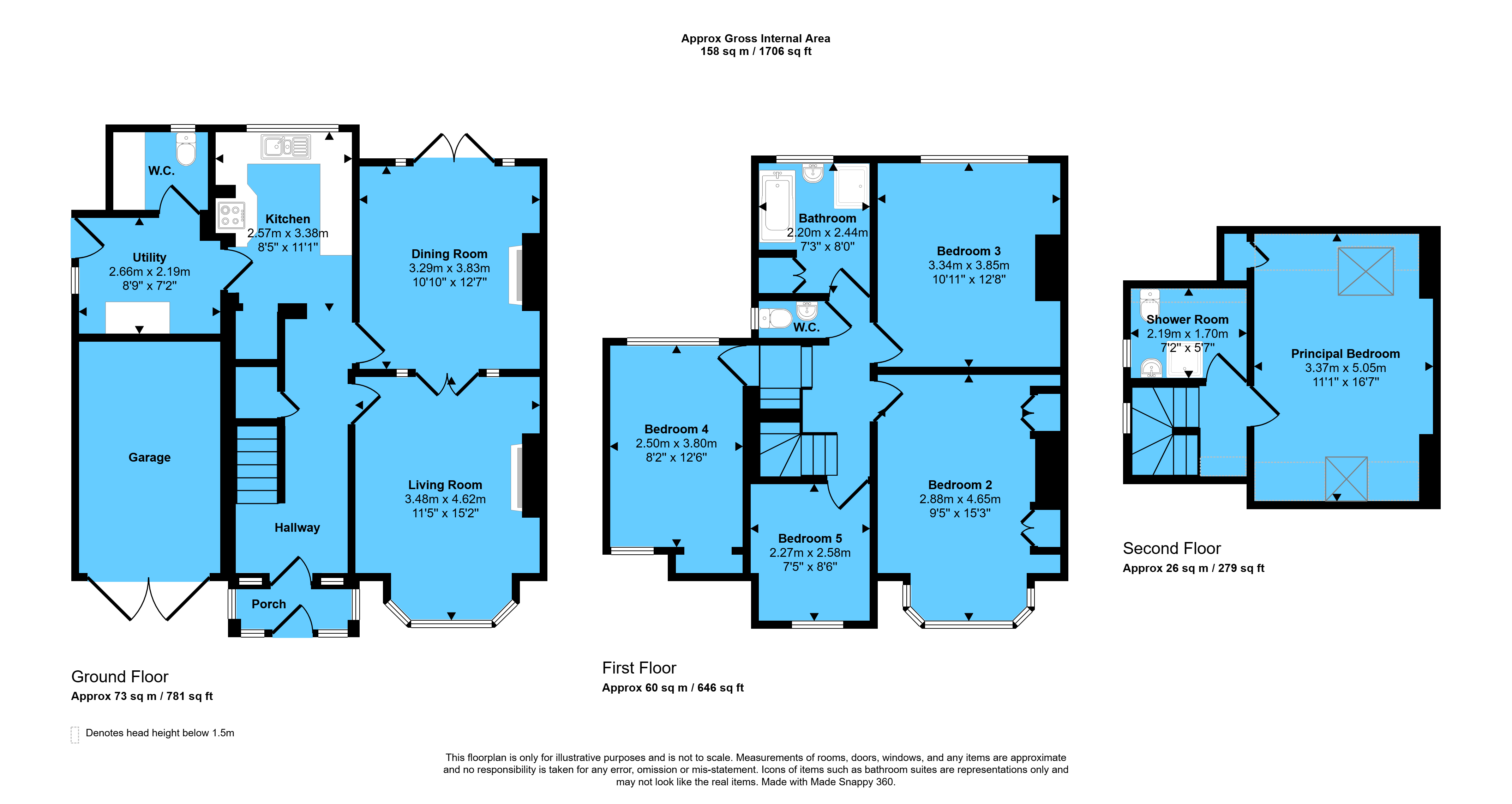 The first floor comprises four generously sized bedrooms, each offering ample space and flexibility for family members or guests. These bedrooms are serviced by a contemporary family bathroom and a separate toilet, ensuring comfort and privacy for all. Ascending to the second floor, you will find an impressive large double bedroom with its own shower room, perfect as a luxurious principal suite or a private retreat for older children or guests.