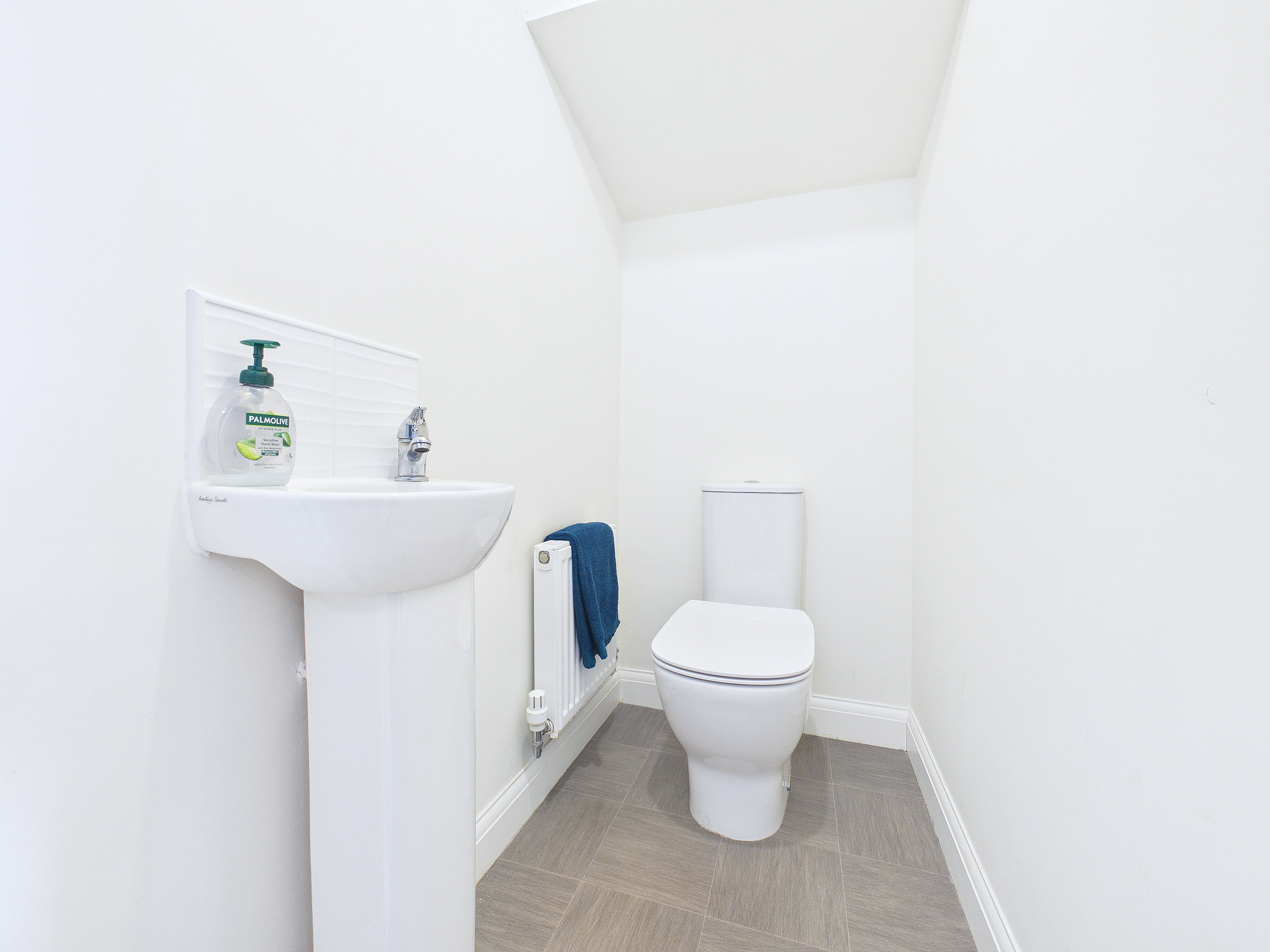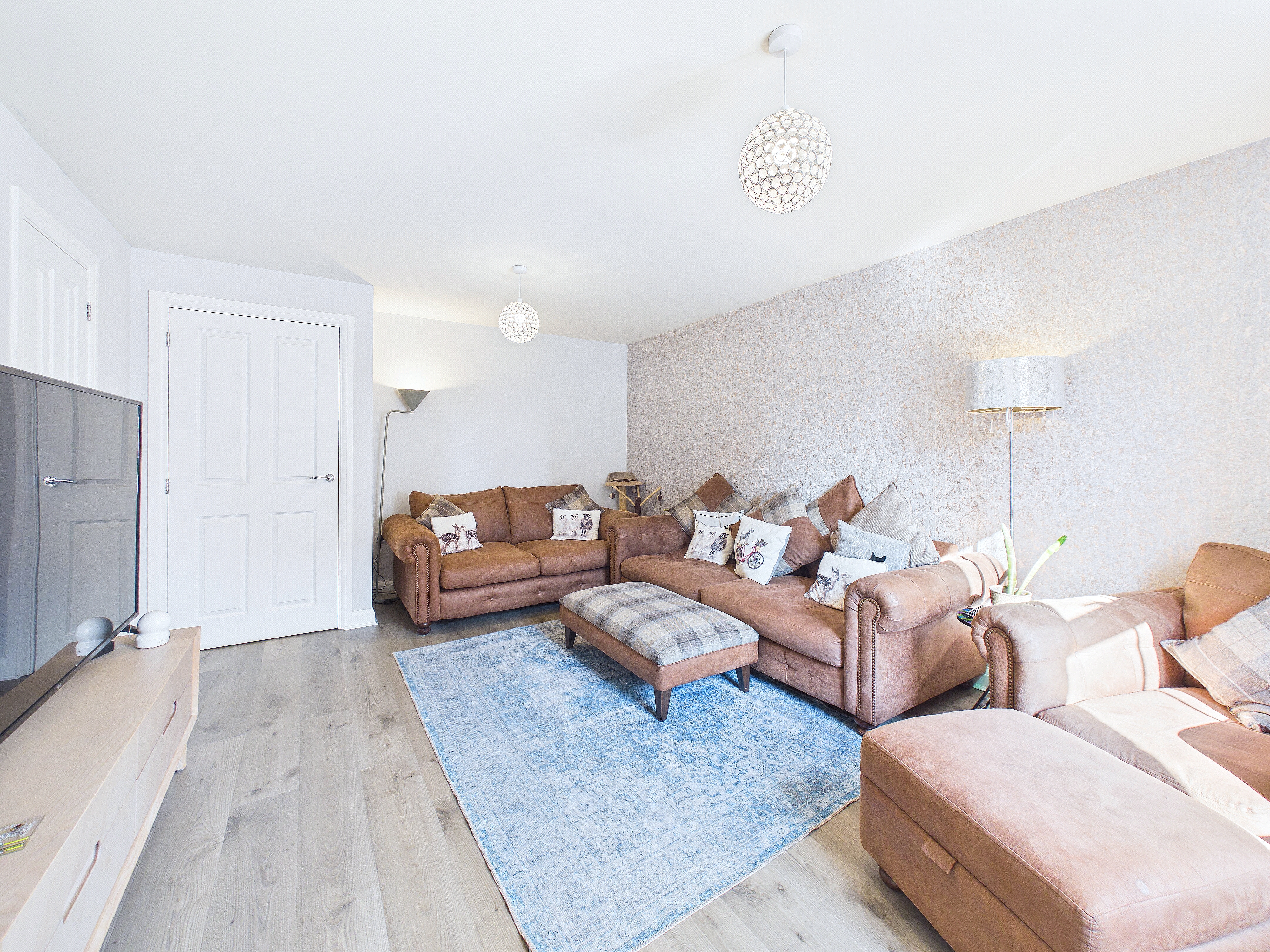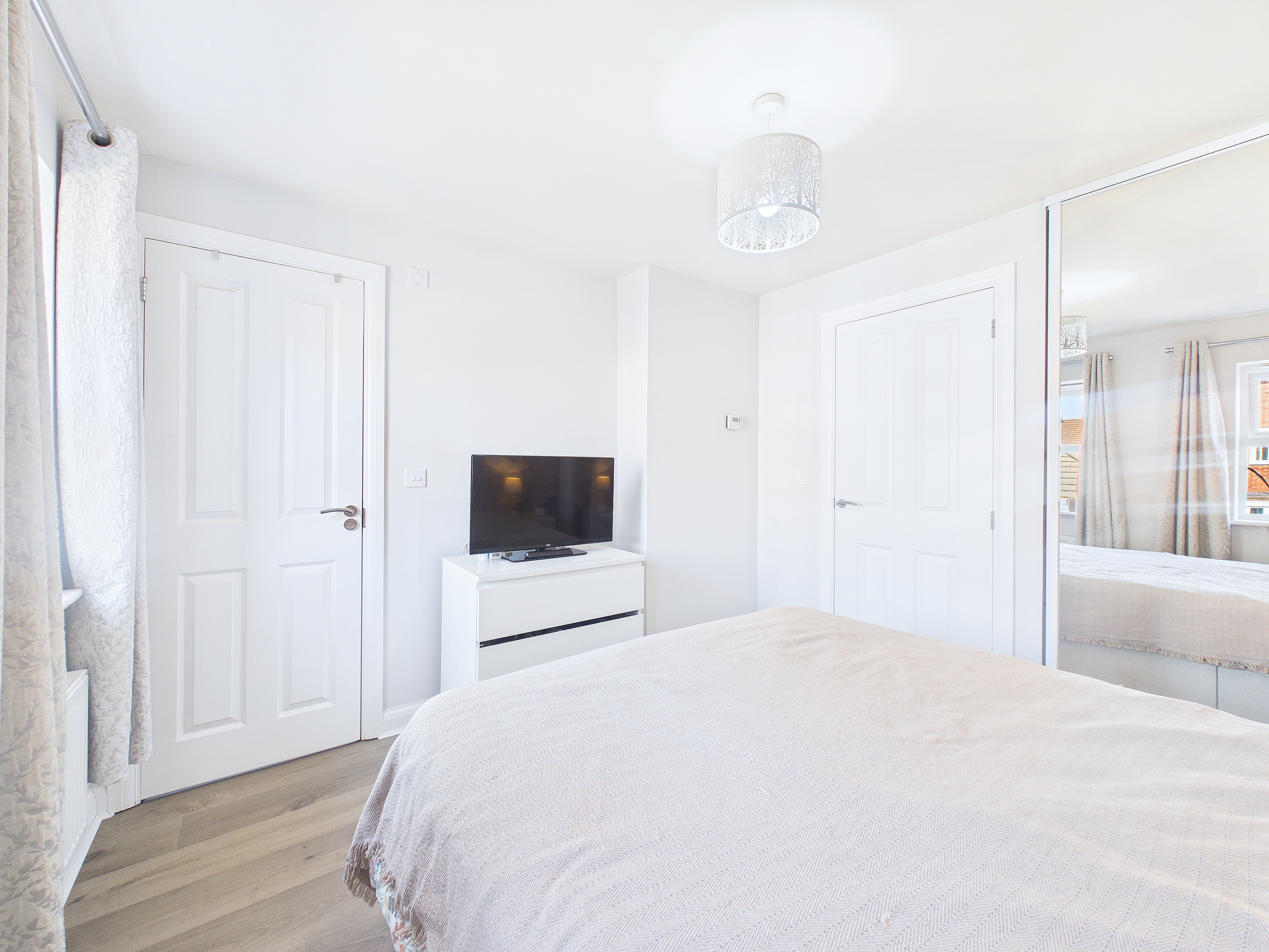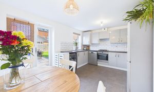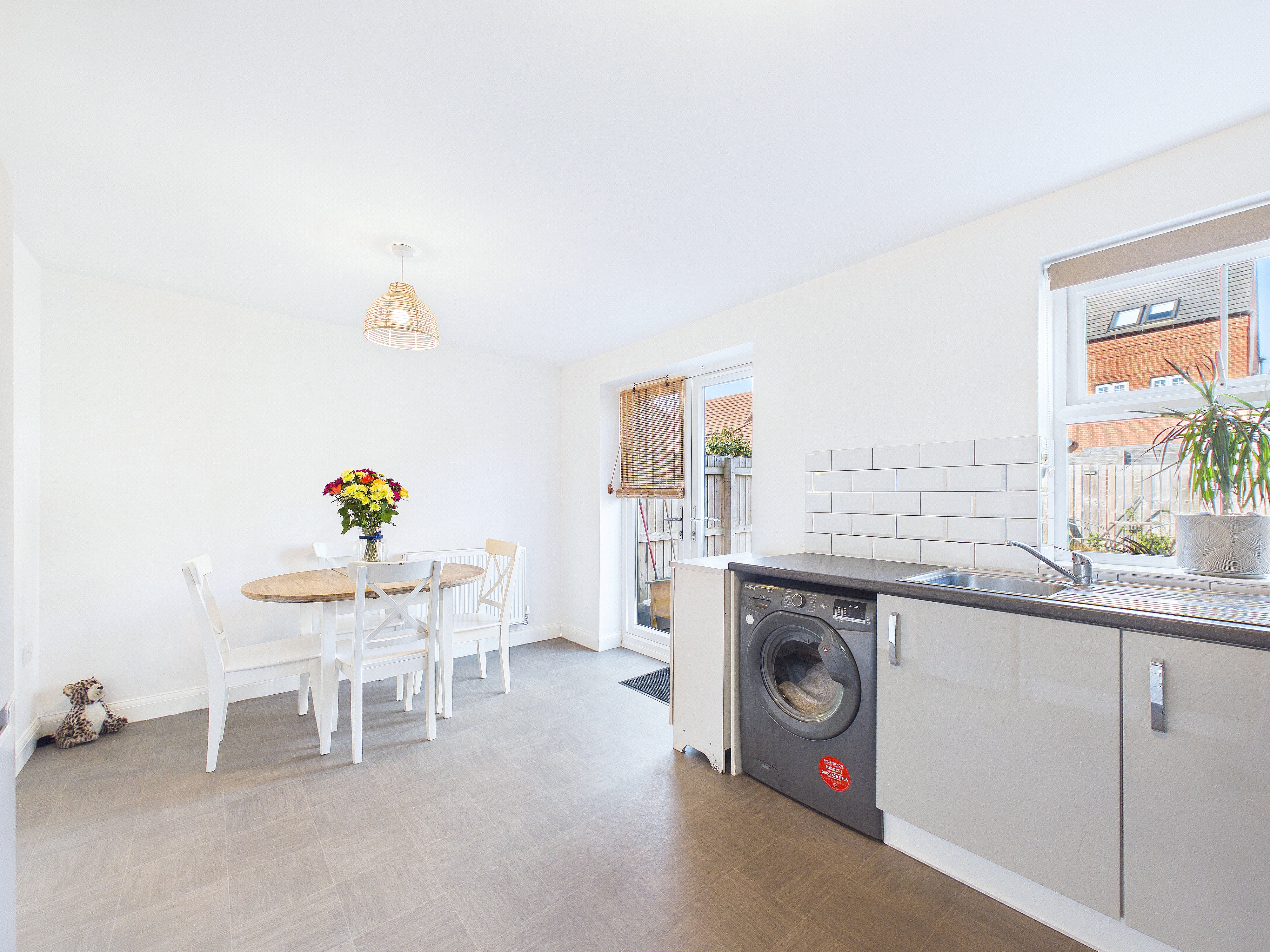 On the ground floor, the property features a welcoming entrance hall leading to a generously sized living room and a downstairs WC. There is also a spacious open plan kitchen/diner complete with French patio doors leading out to the rear garden. The kitchen is fitted with a matching range of base and wall units, an integrated hob and oven with space provided for a washing machine, dishwasher and fridge freezer. There is also built-in under stairs storage (accessed via the living room).