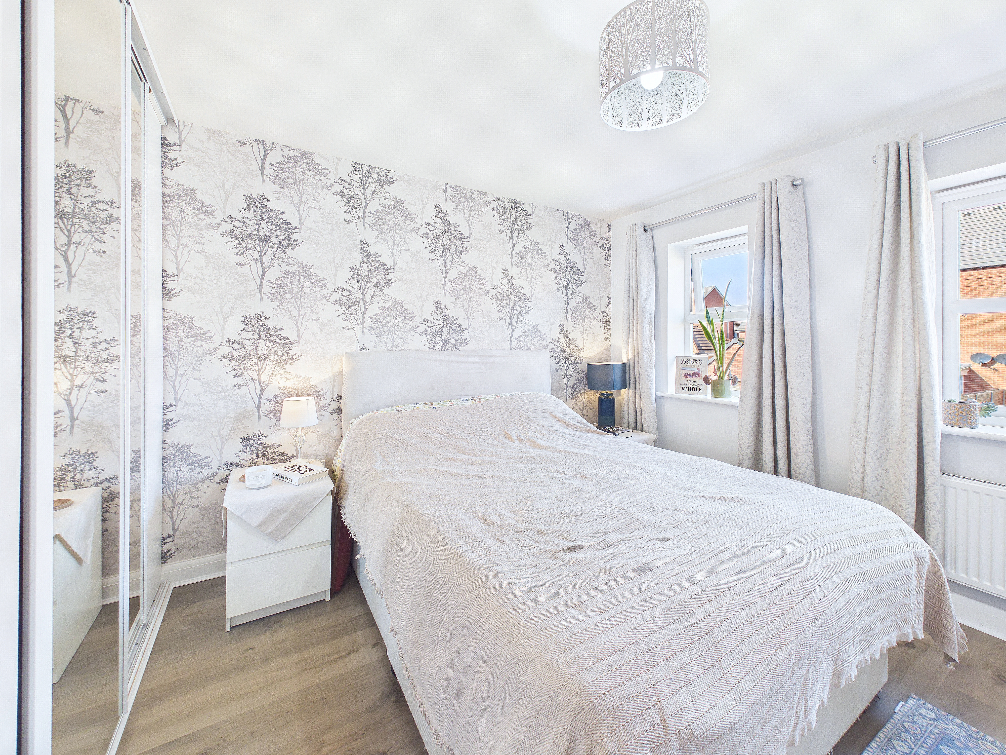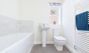 Upstairs, the property comprises of three bedrooms, including a main bedroom with an en-suite bathroom, a landing (with built-in storage and access to the partially boarded loft) and a family bathroom. There is also the additional benefit of fitted wardrobes in the main bedroom.