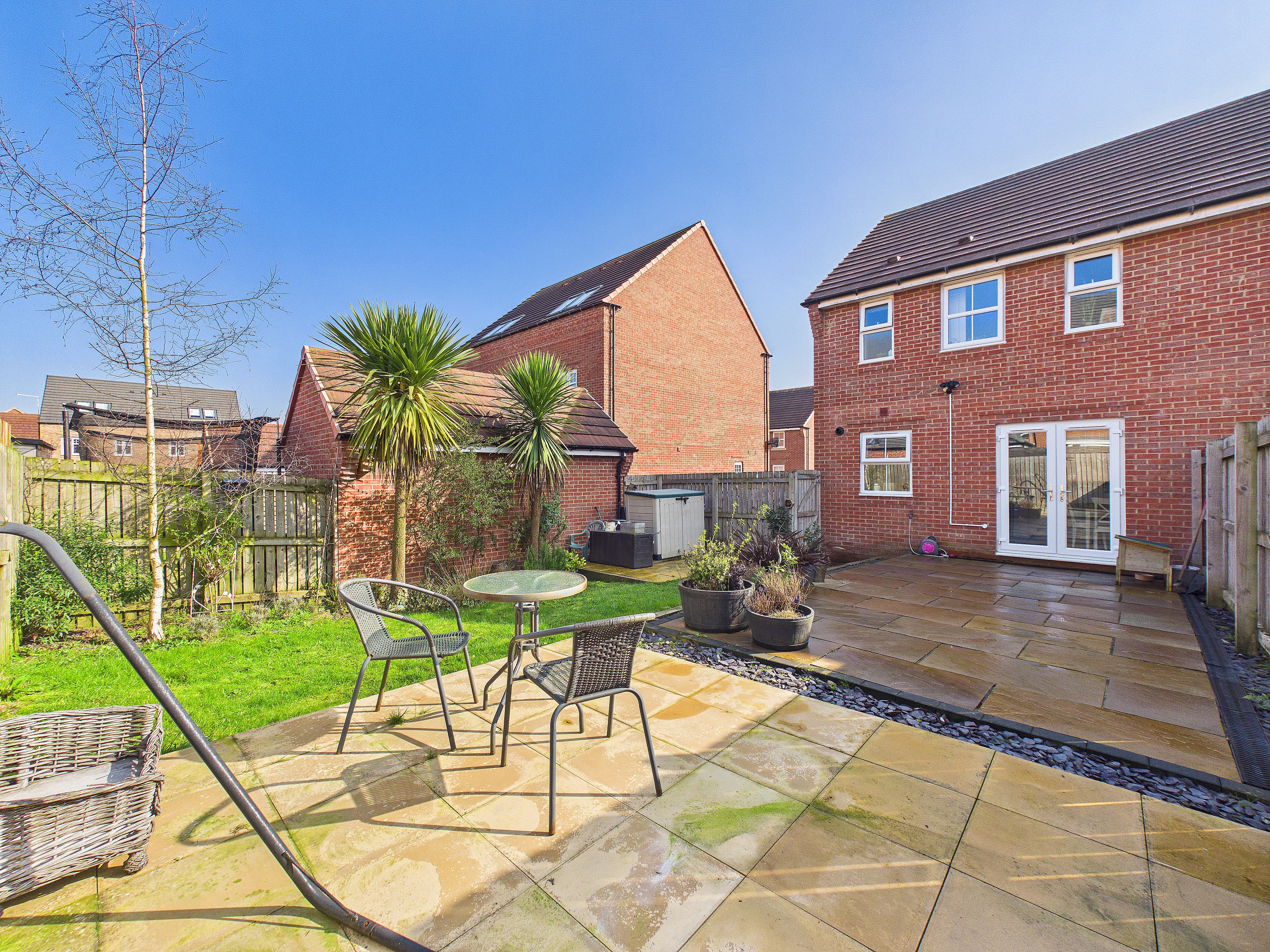 Externally, there is a generous enclosed rear garden that has been landscaped with Indian sandstone paving, lawn, shrubs, and 2 bases for a shed or/and summer house making it the ideal space perfect for relaxing or entertaining. To the side, a private driveway provides off street parking for two vehicles and benefits from an EV charger.