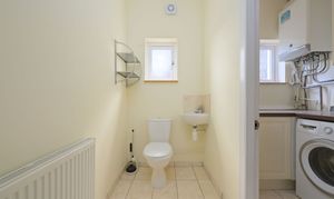 On the ground floor, there is a bright and spacious lounge with French doors leading out to the rear garden, along with a second lounge/family room ideal for flexible living or entertaining. The newly fitted kitchen comes complete with integrated appliances including a gas hob, electric oven and dishwasher, along with space for a freestanding fridge freezer. A convenient ground floor WC with adjoining utility room adds further practicality.