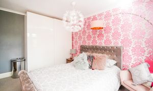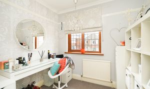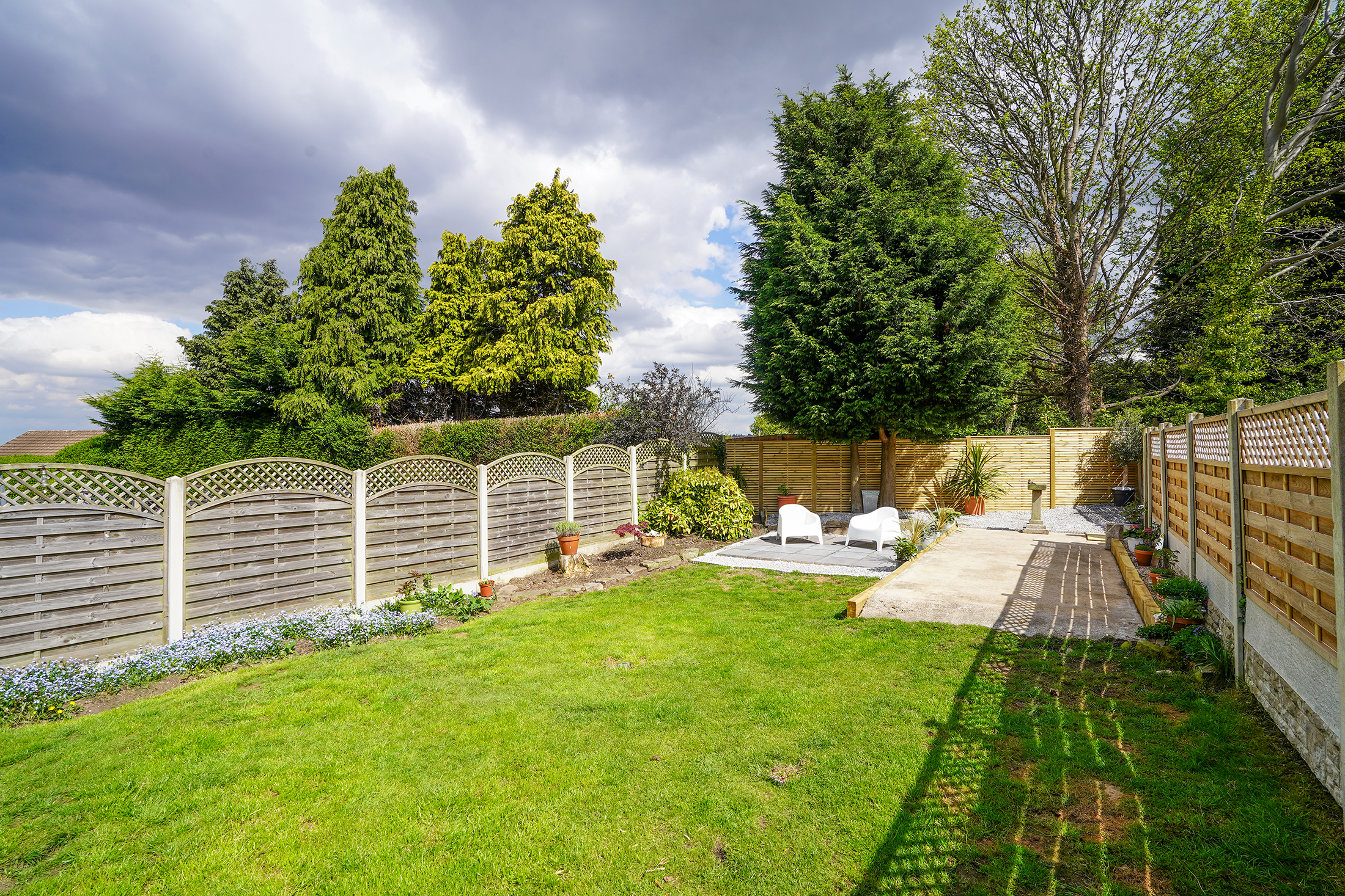 To the rear is a fantastic landscaped garden, perfect for those with children. A generous lawn area, composite decked terrace and mature trees combine to create an excellent space for relaxation. There is a block-paved driveway that can accommodate 2-3 vehicles and an EV charging point.