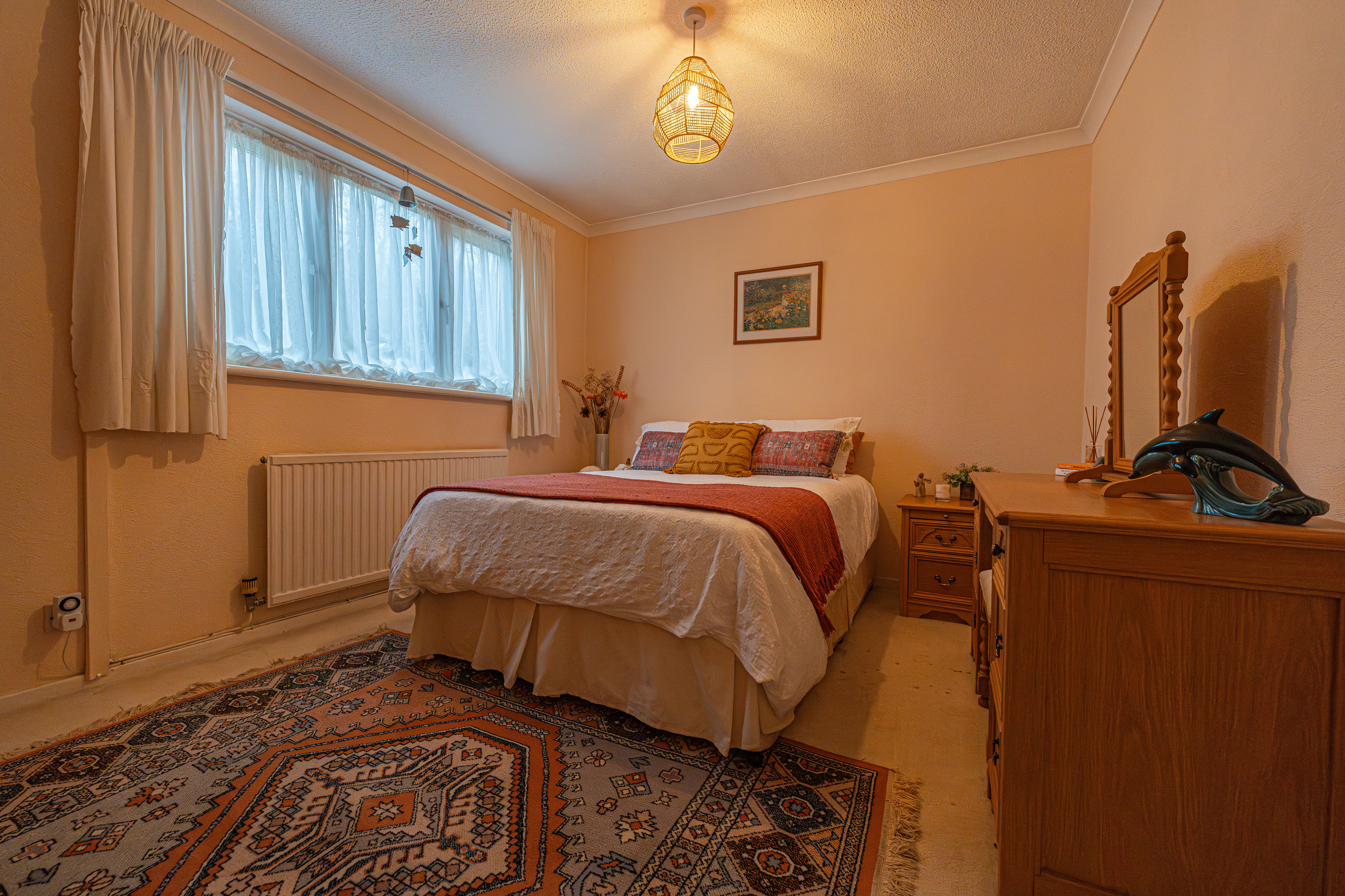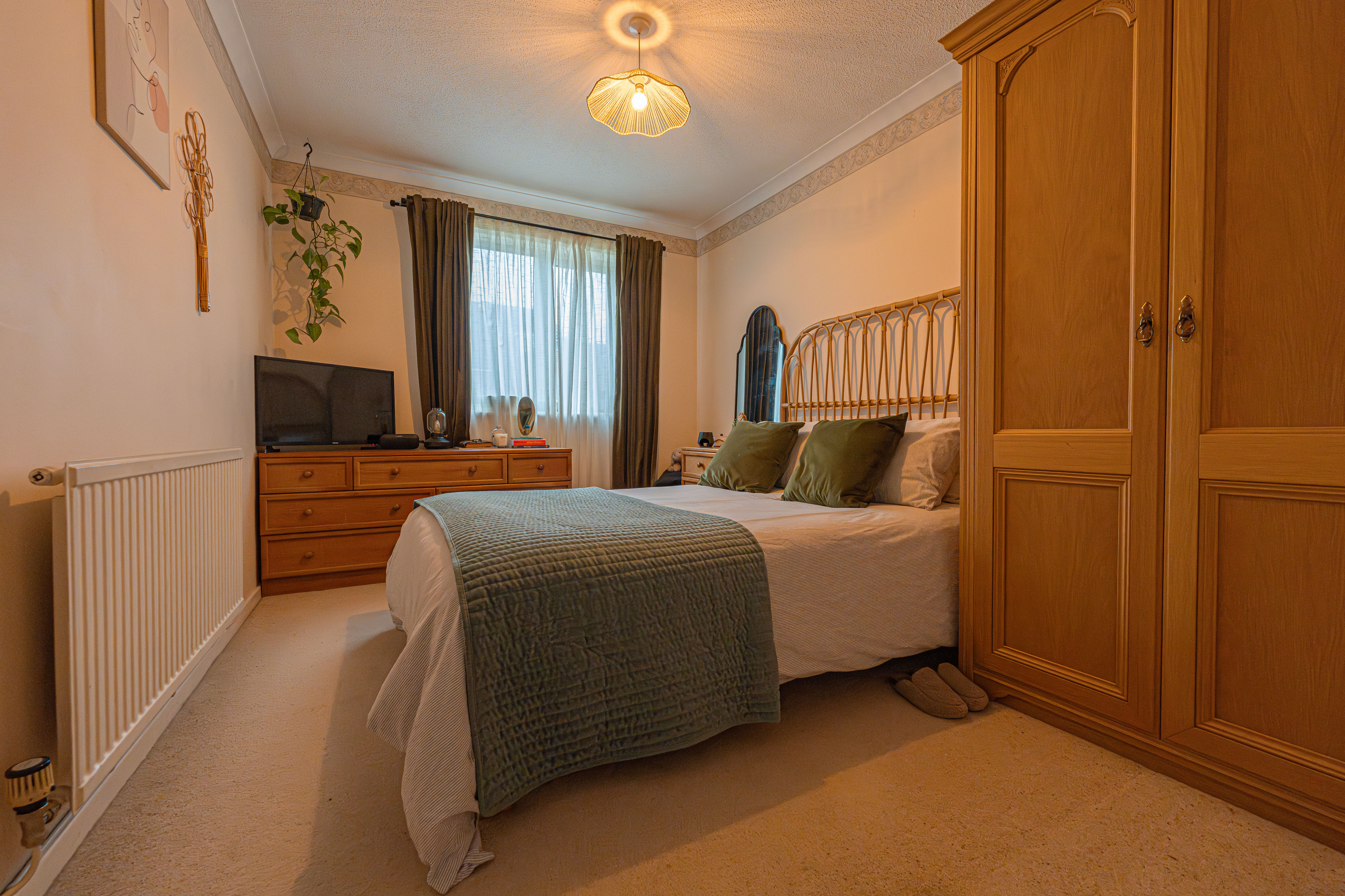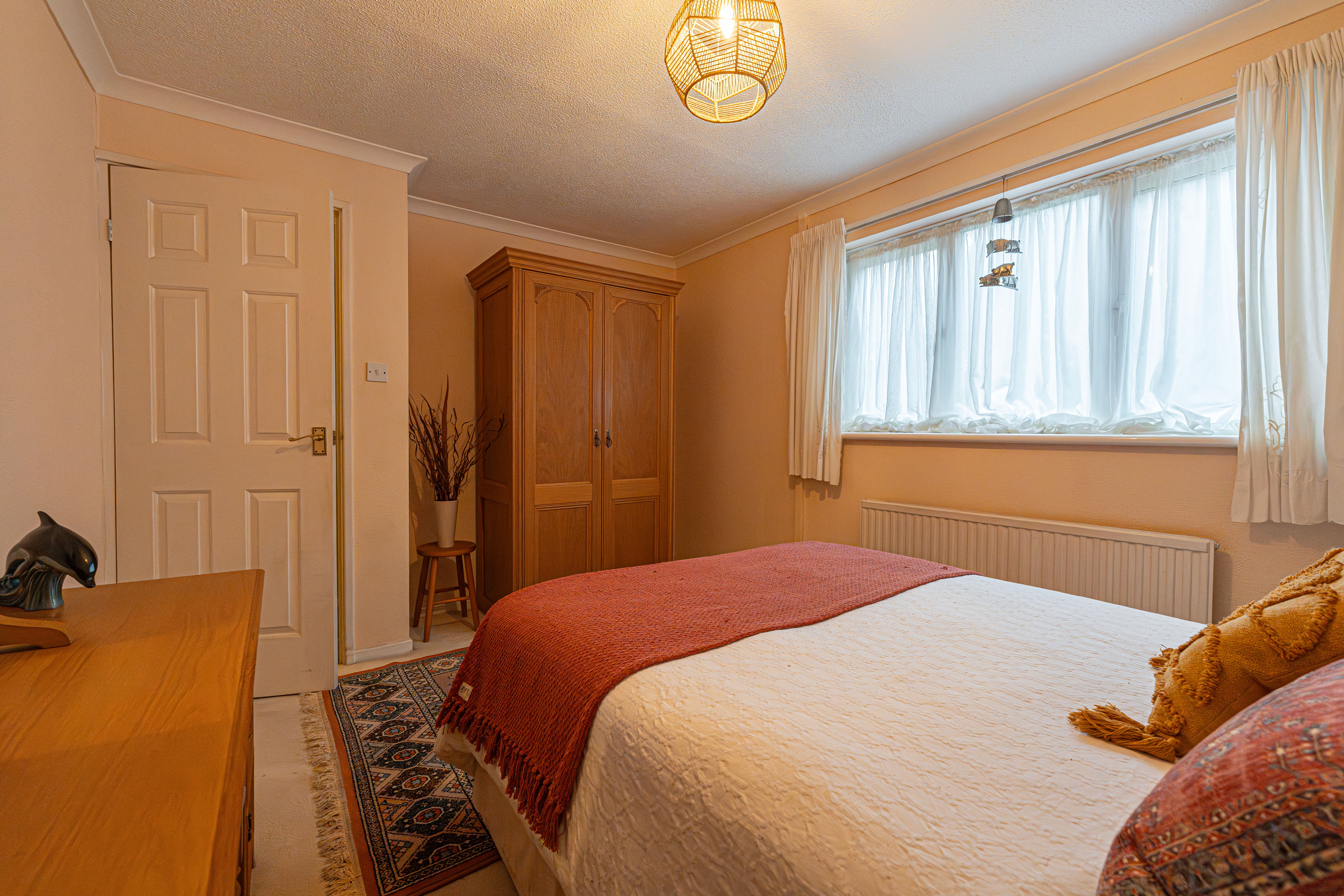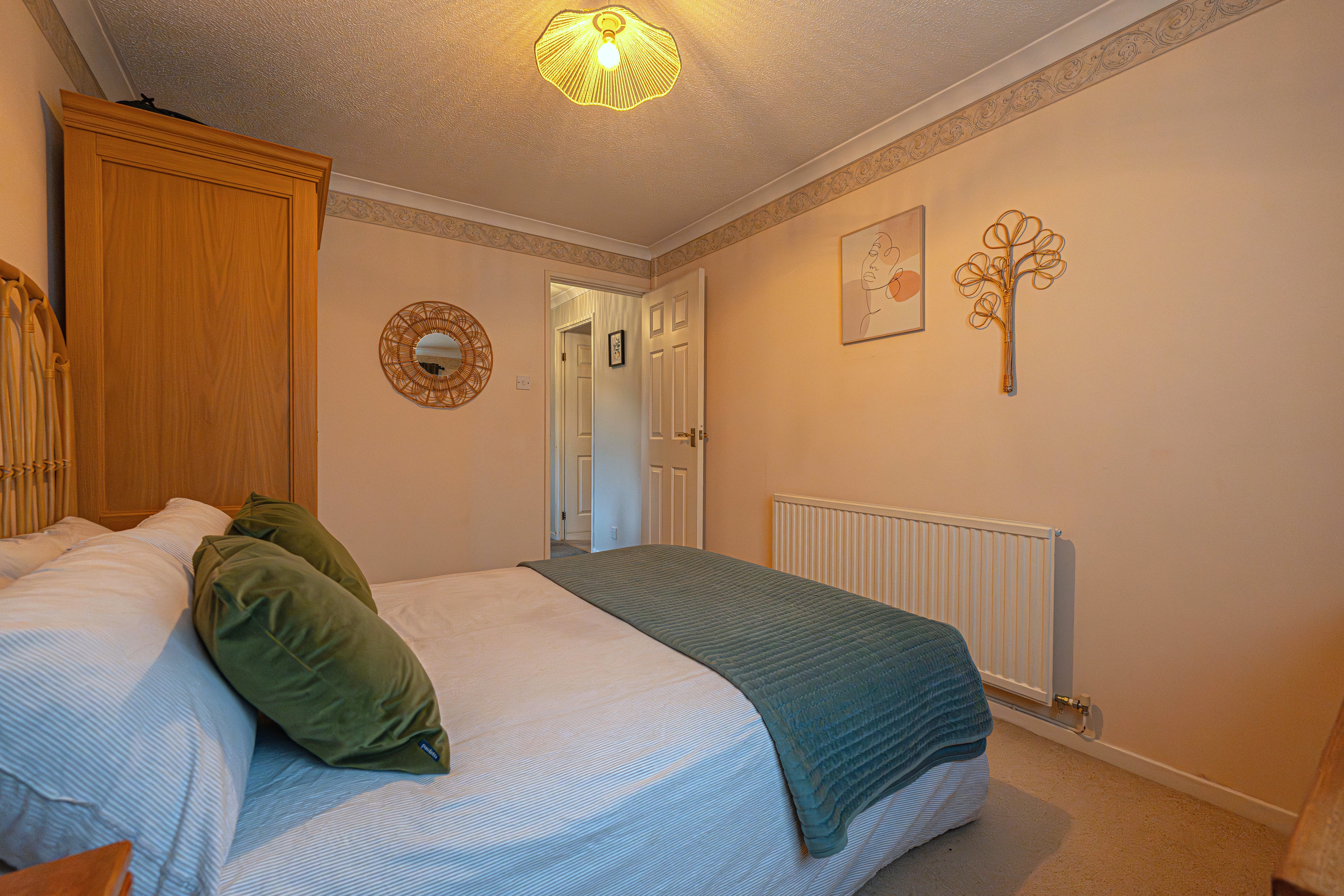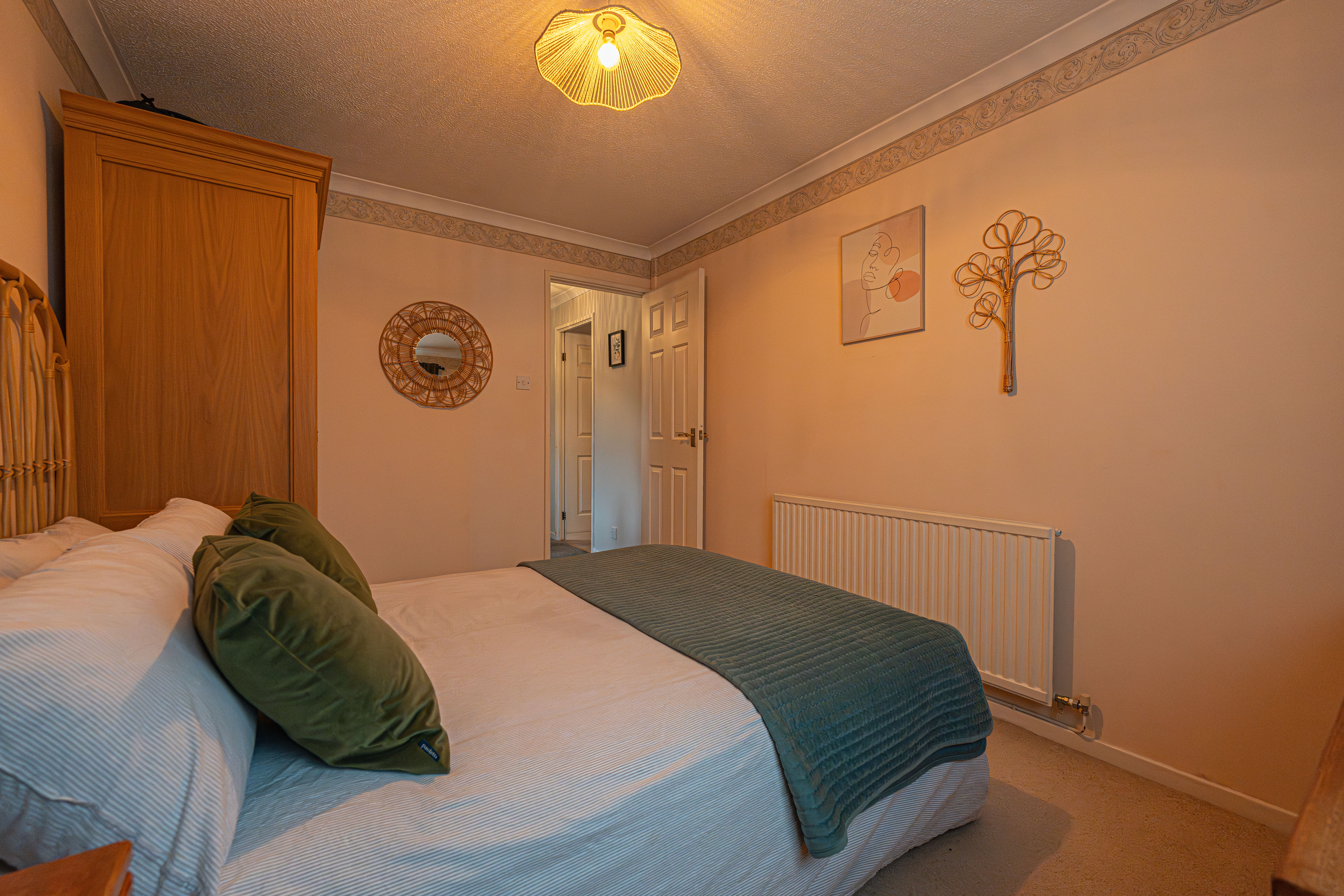Across the bungalow we have three bedrooms - two of which are well proportioned doubles while the third is a comfortable single, which is reinforced with a fitted wardrobe and staged as a versatile space that is ideal for practical uses like a home office or dressing room. Another fitted cupboard can be found from the hallway.