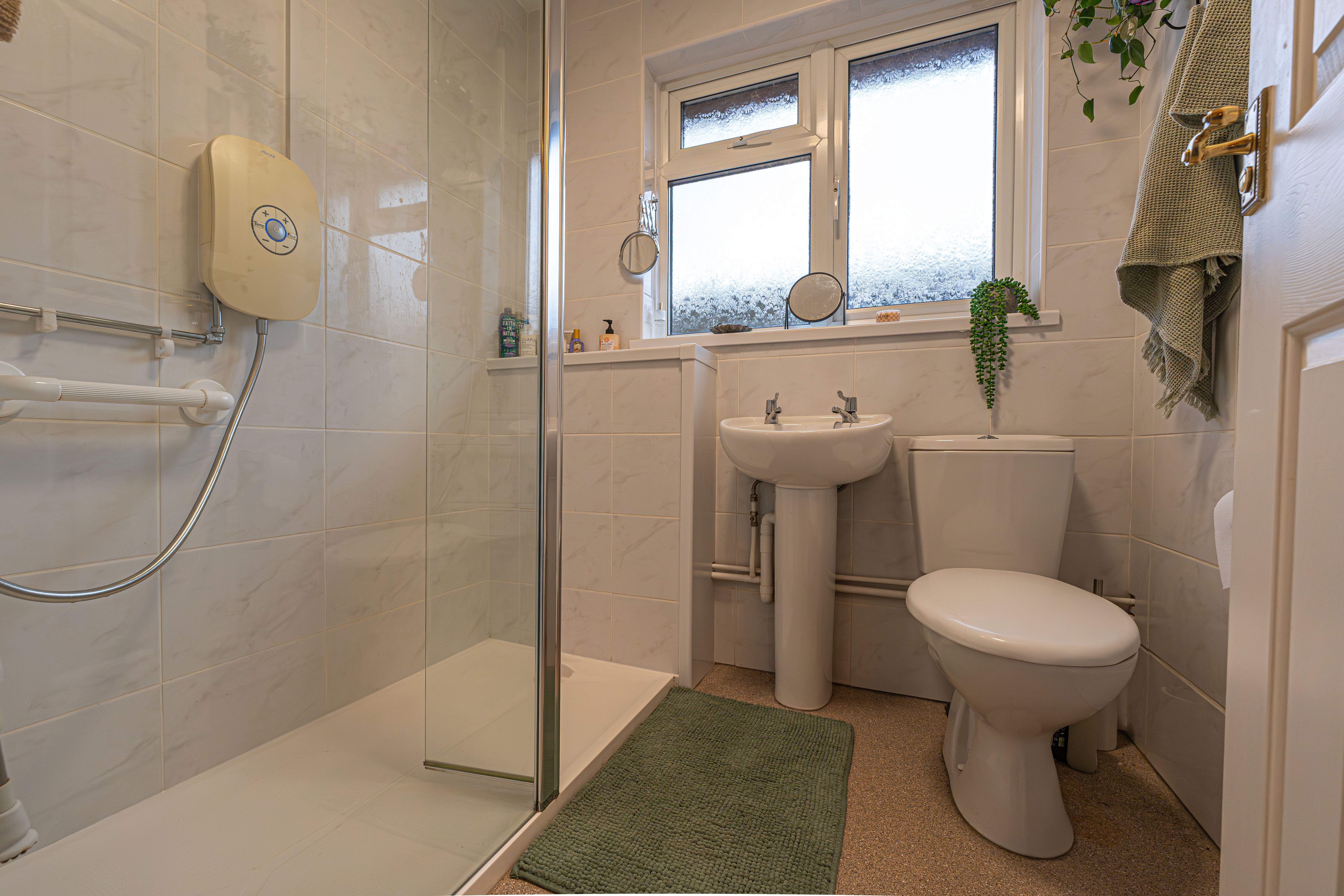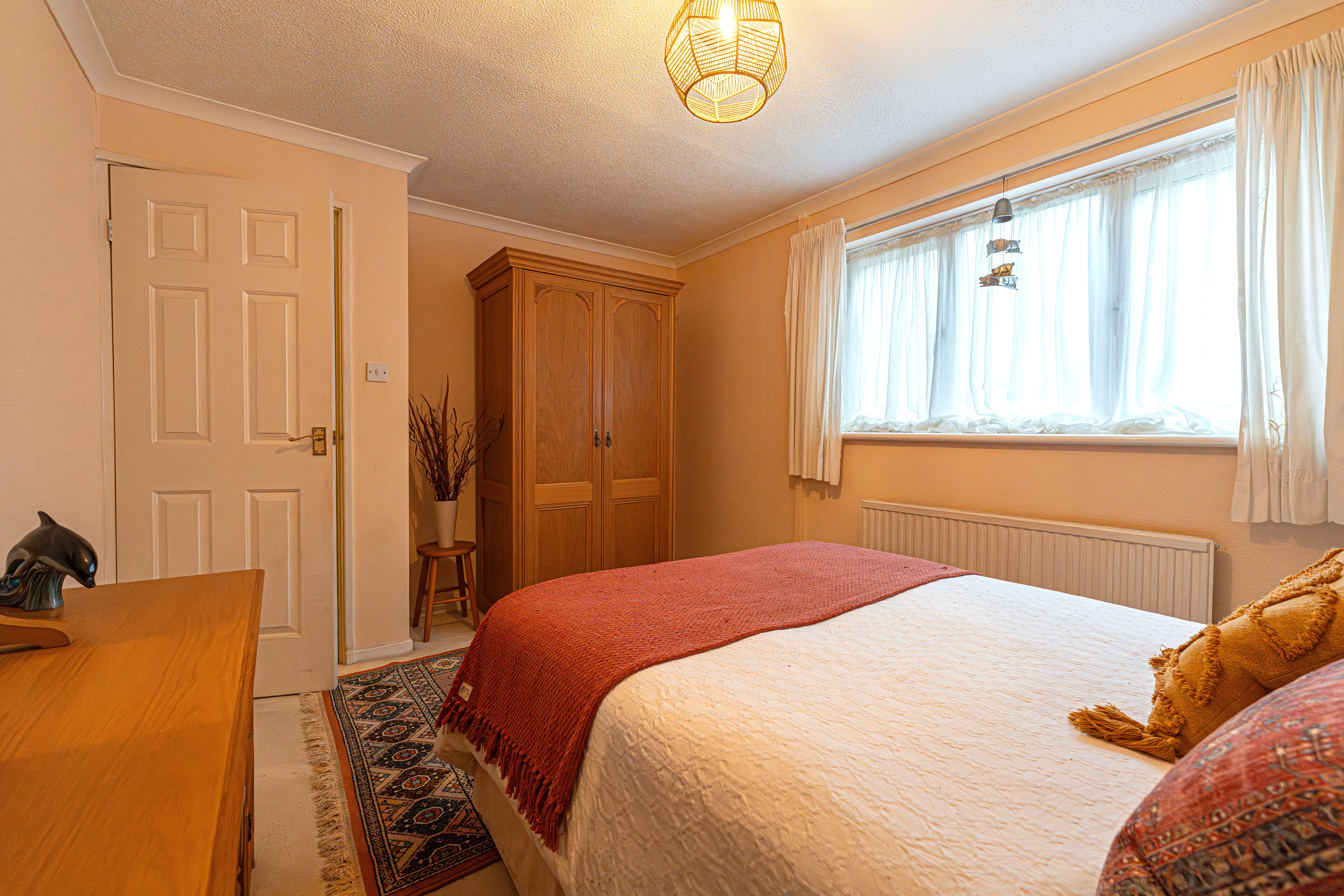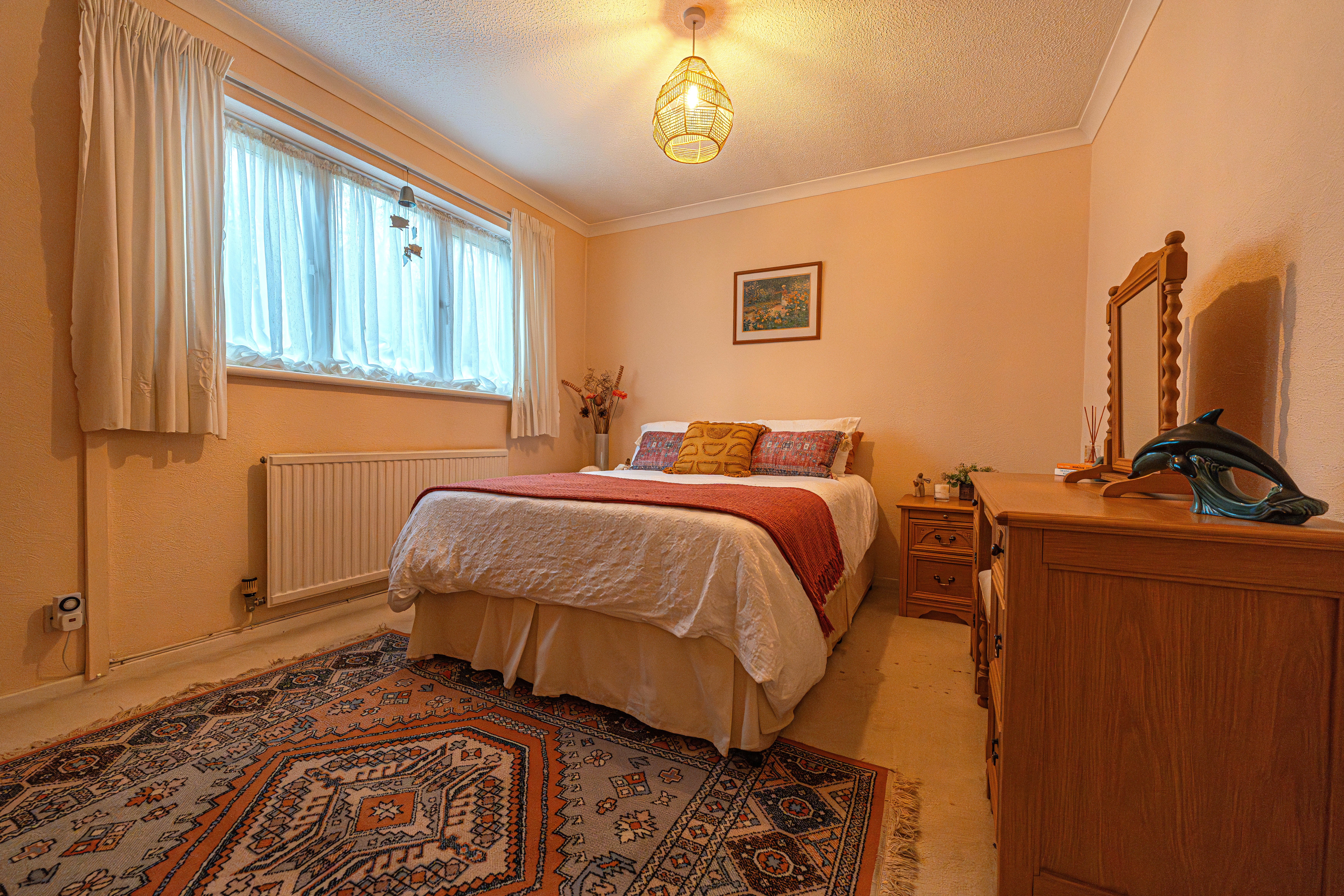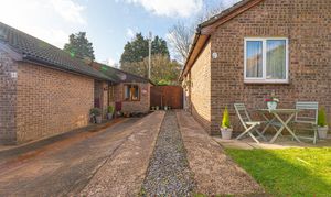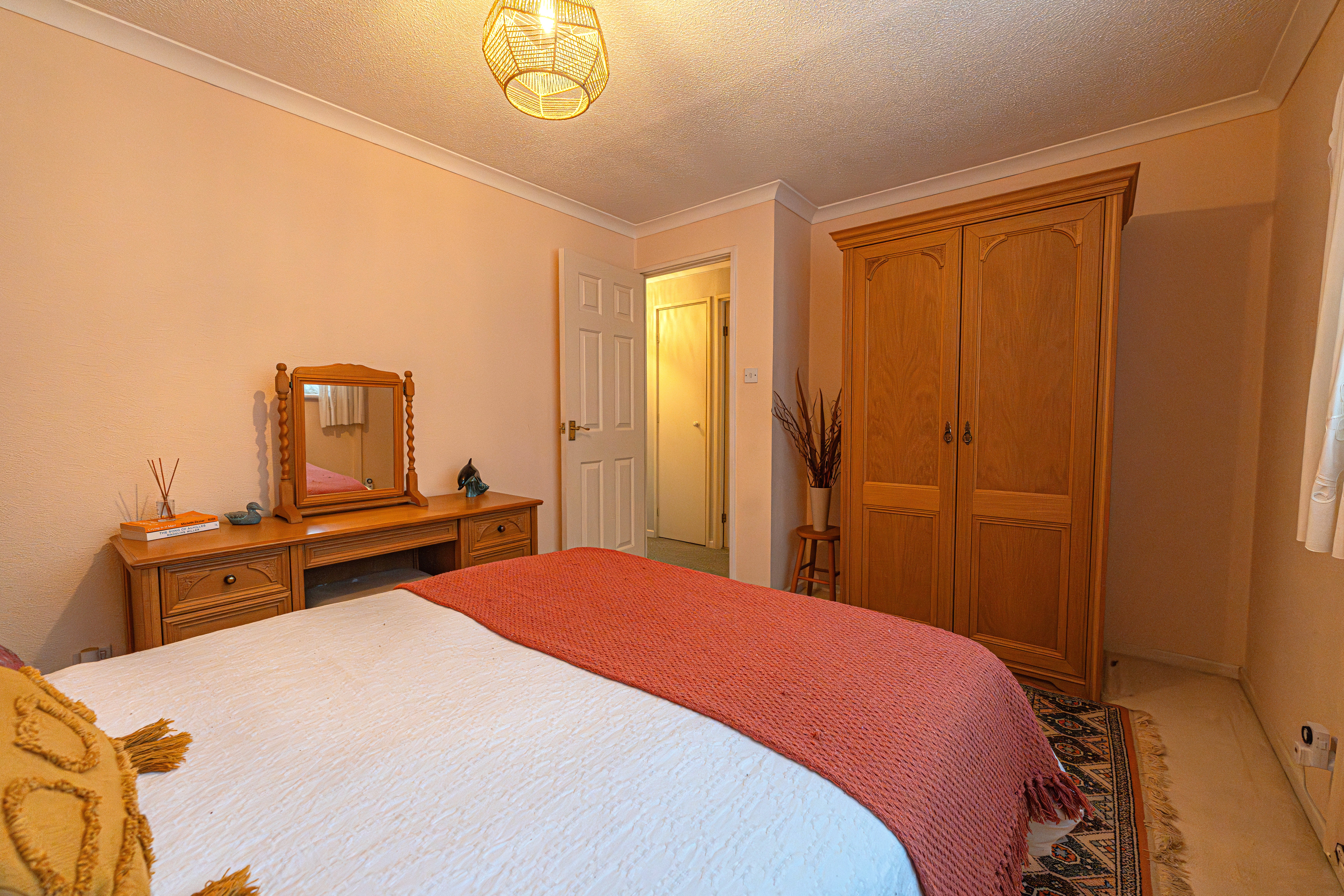 Across the bungalow we have three bedrooms - two of which are well proportioned doubles while the third is a comfortable single, which is reinforced with a fitted wardrobe and staged as a versatile space that is ideal for practical uses like a home office or dressing room. Another fitted cupboard can be found from the hallway.