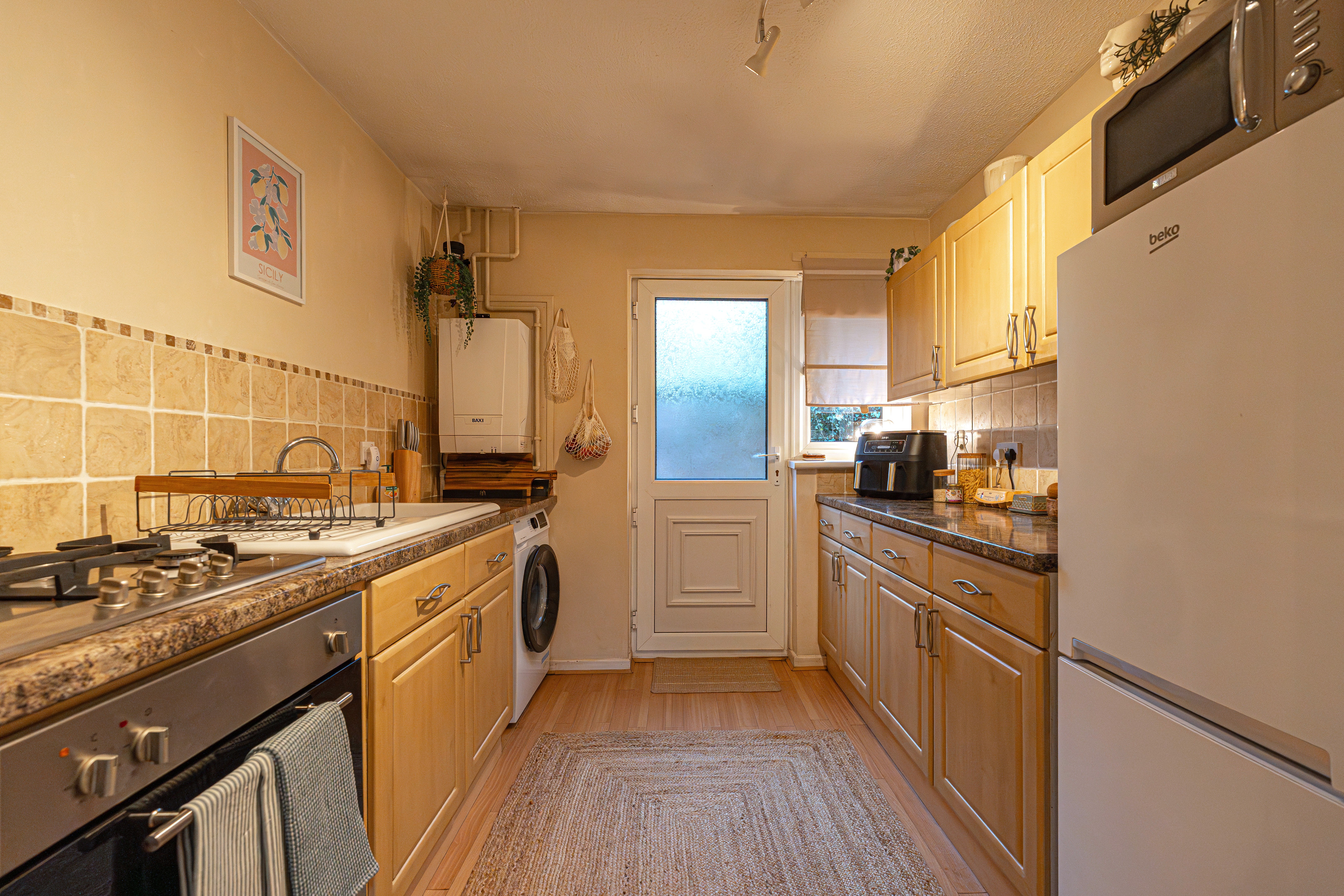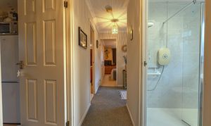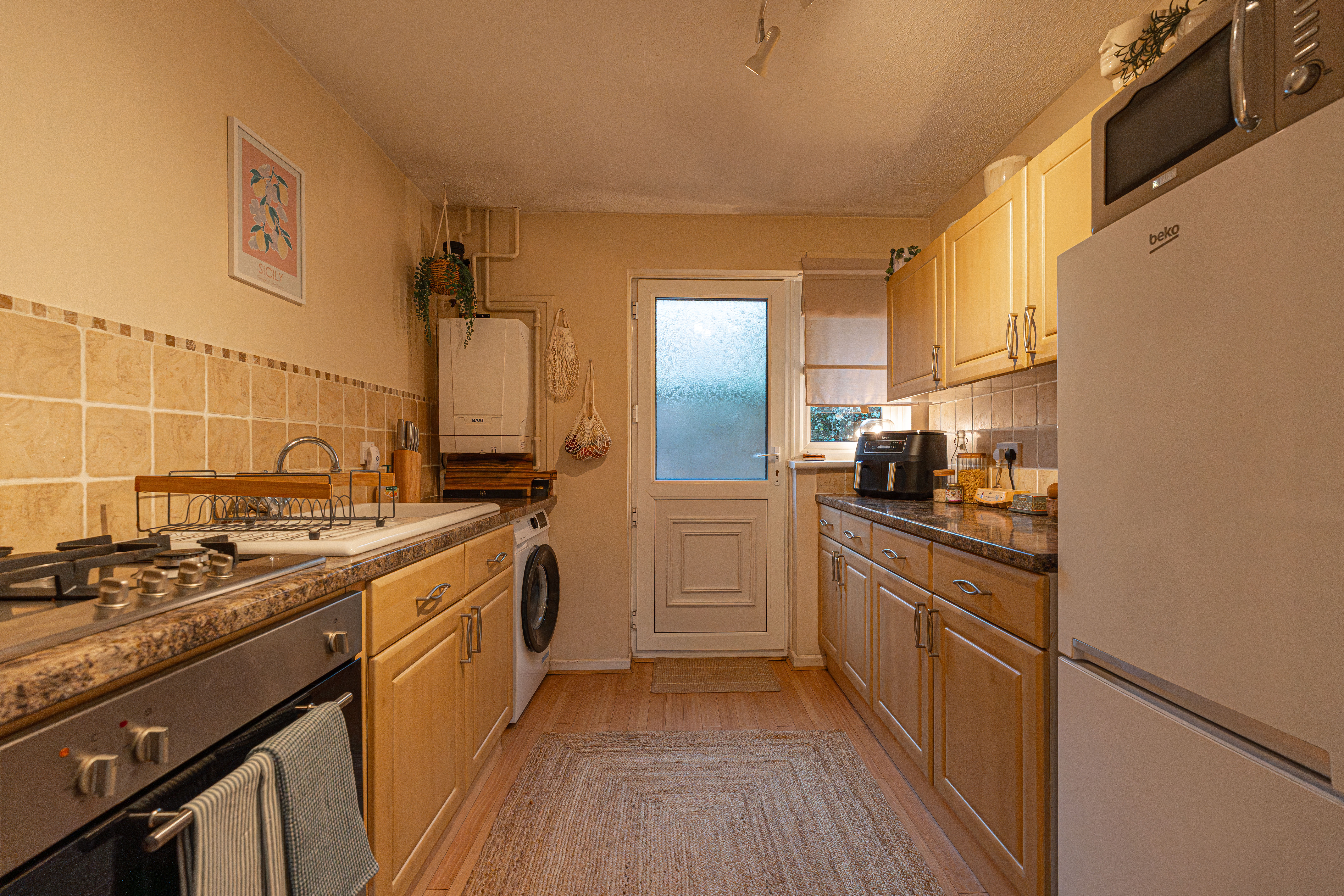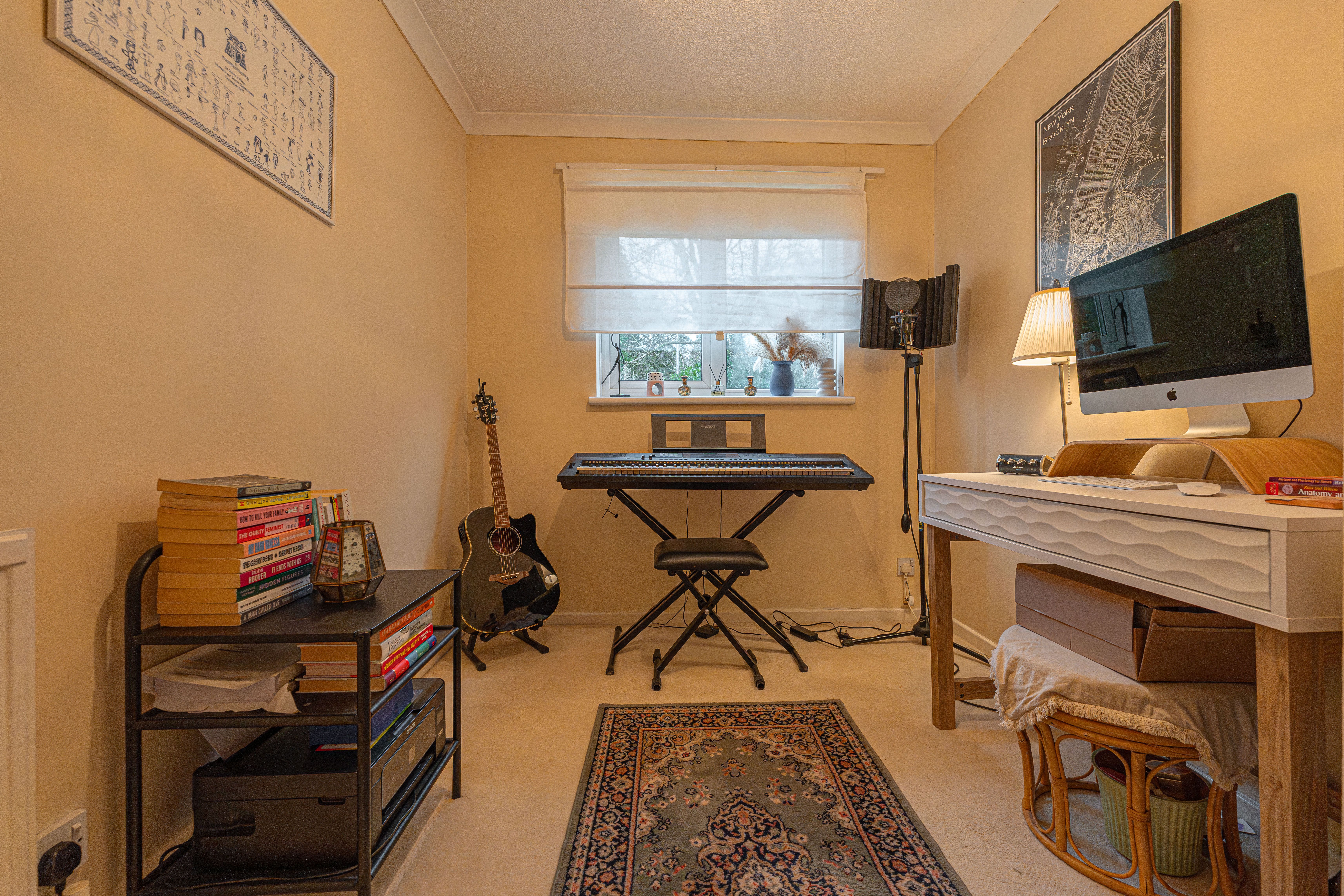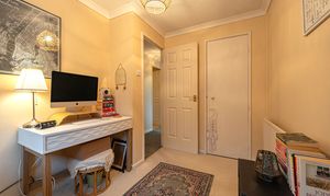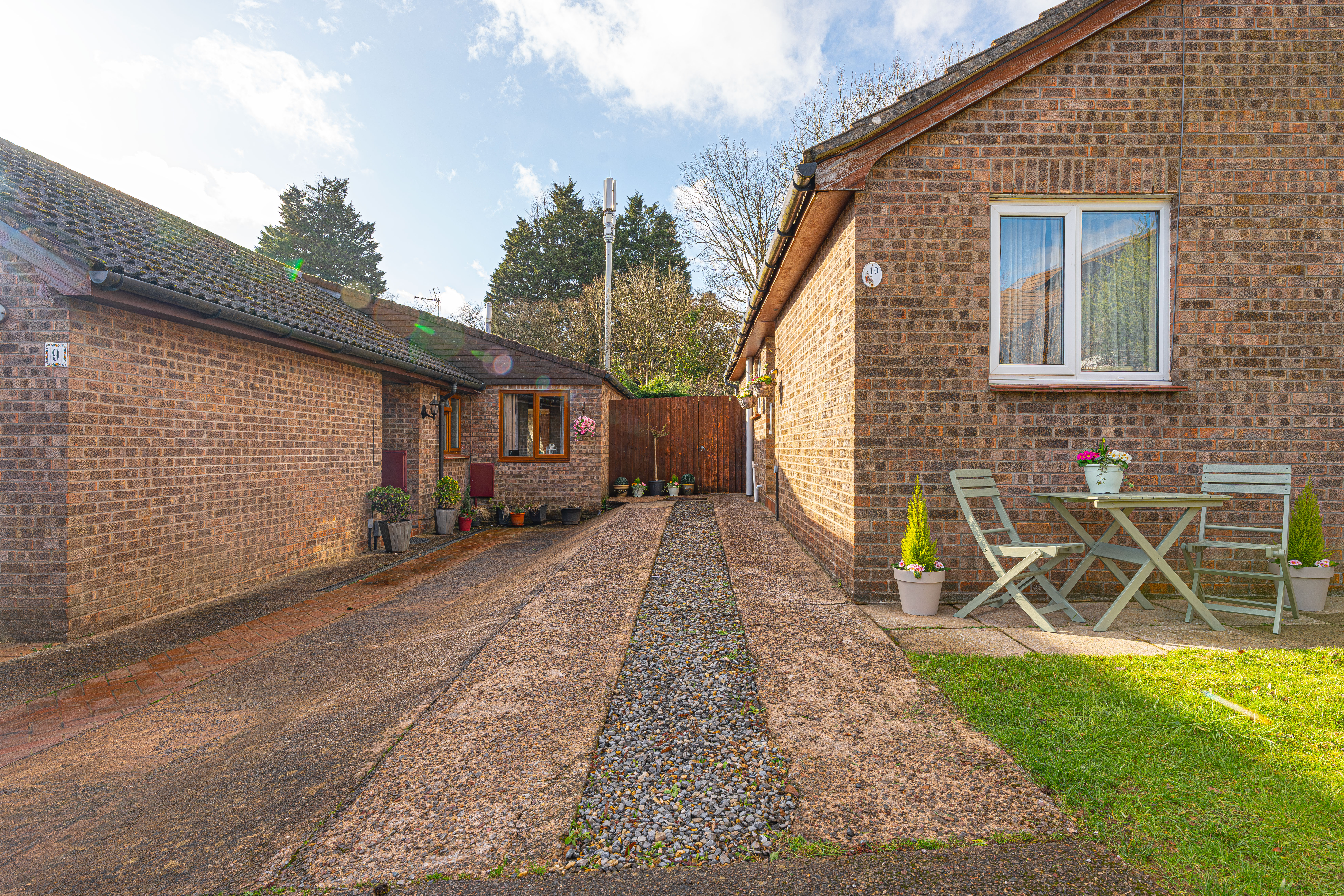 Across the bungalow we have three bedrooms - two of which are well proportioned doubles while the third is a comfortable single, which is reinforced with a fitted wardrobe and staged as a versatile space that is ideal for practical uses like a home office or dressing room. Another fitted cupboard can be found from the hallway.