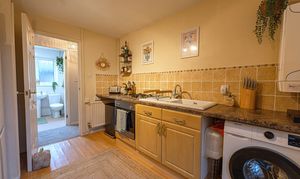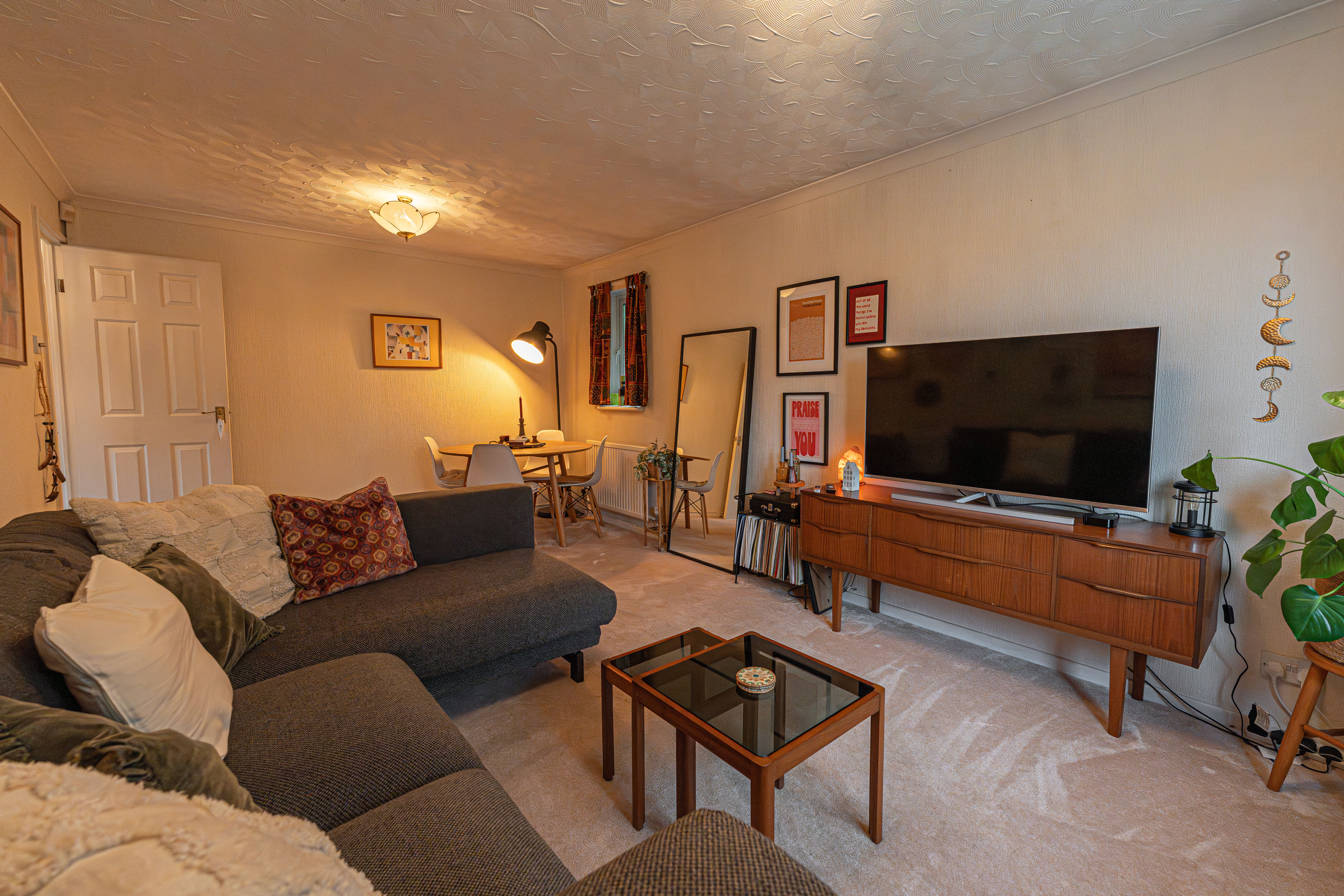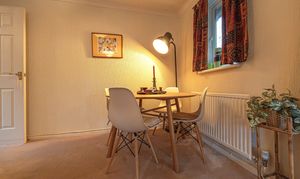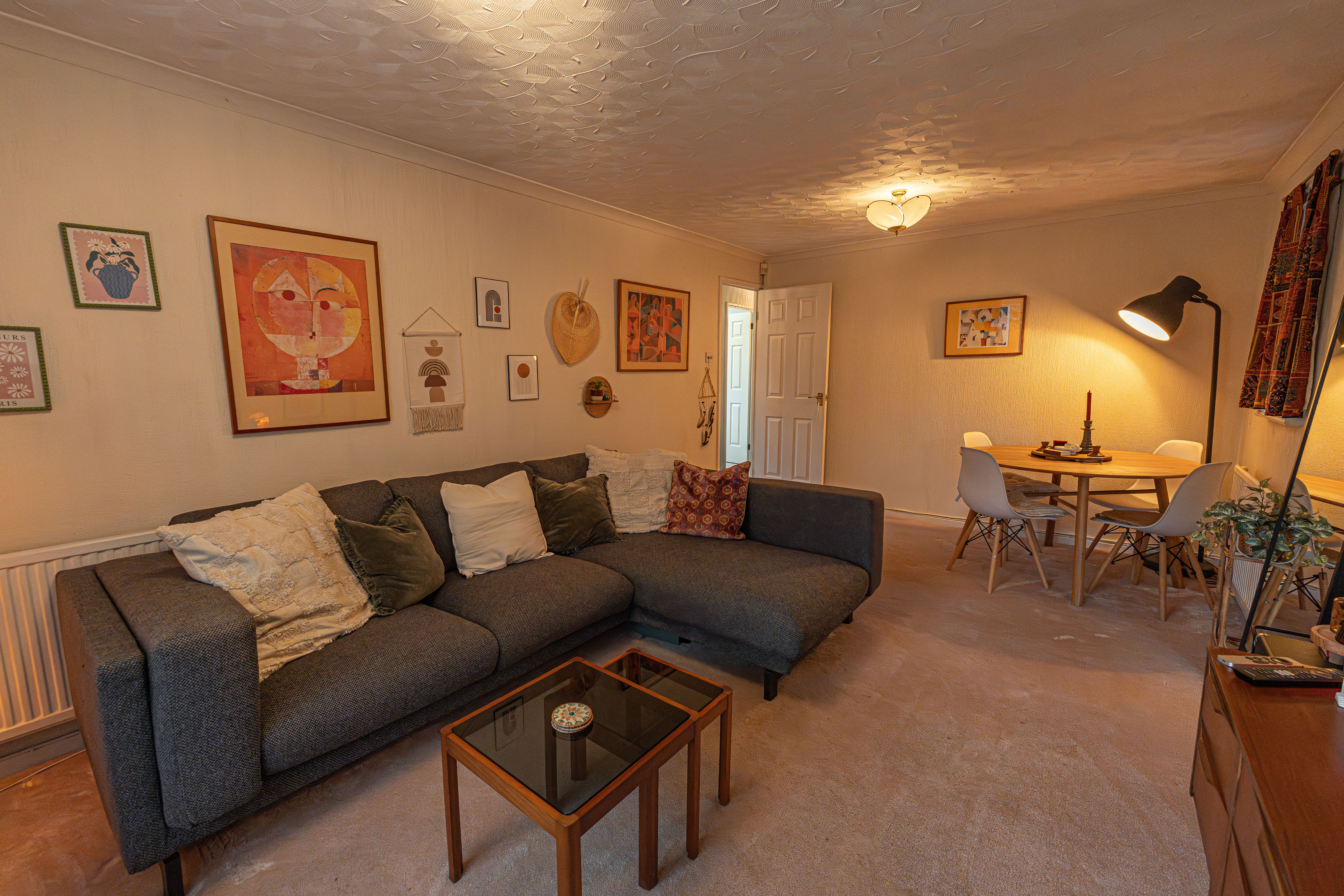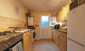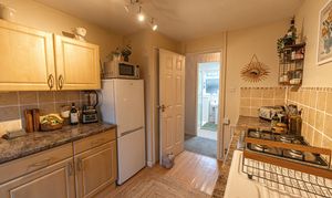 This well presented bungalow welcomes us in with an impressive reception room, which boasts a large open space for both the living and dining area, allowing for flexible furniture arrangements. The room is also well lit thanks to a large bay-front window, creating a warm and bright space that is ideal for relaxing, dining and entertaining guests. The galley-style kitchen features plenty of storage options with a fitted cupboard and numerous fittings, as well as offering space for numerous appliances to join the fitted oven and hob. Opposite the kitchen we can also find a modern style bathroom with a toilet and walk-in-shower.