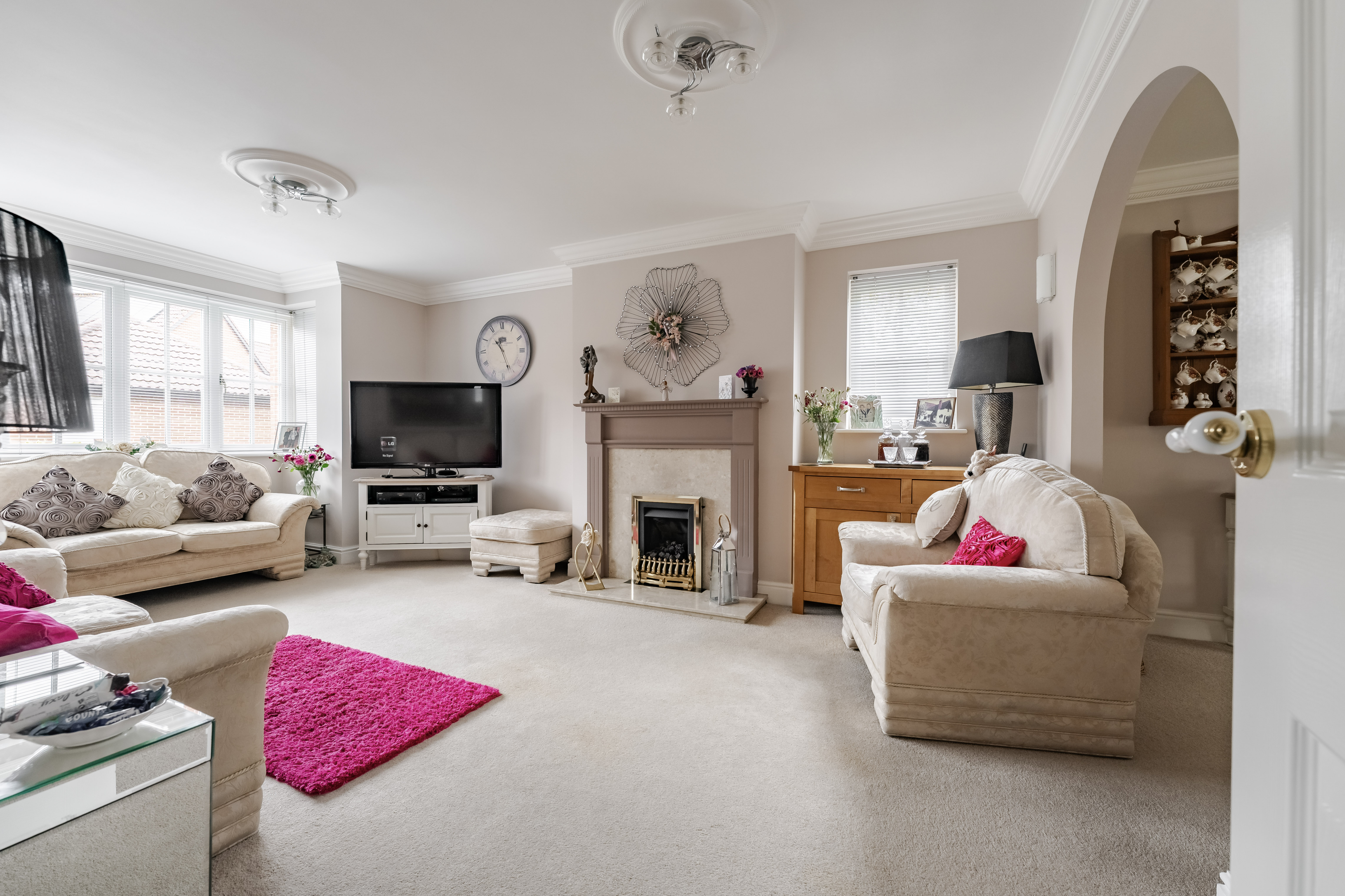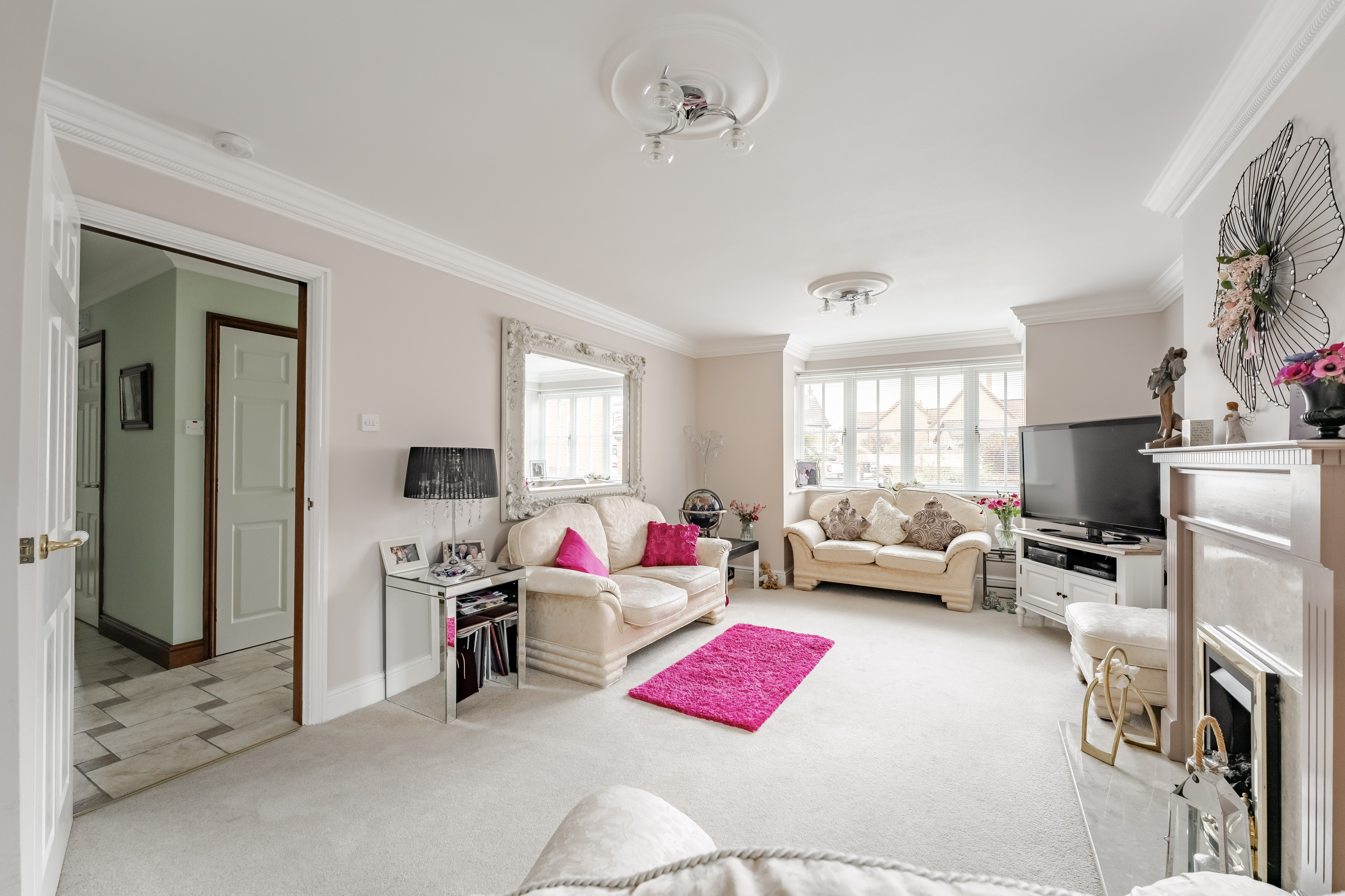 - Generous sitting room with bay window and central gas fireplace