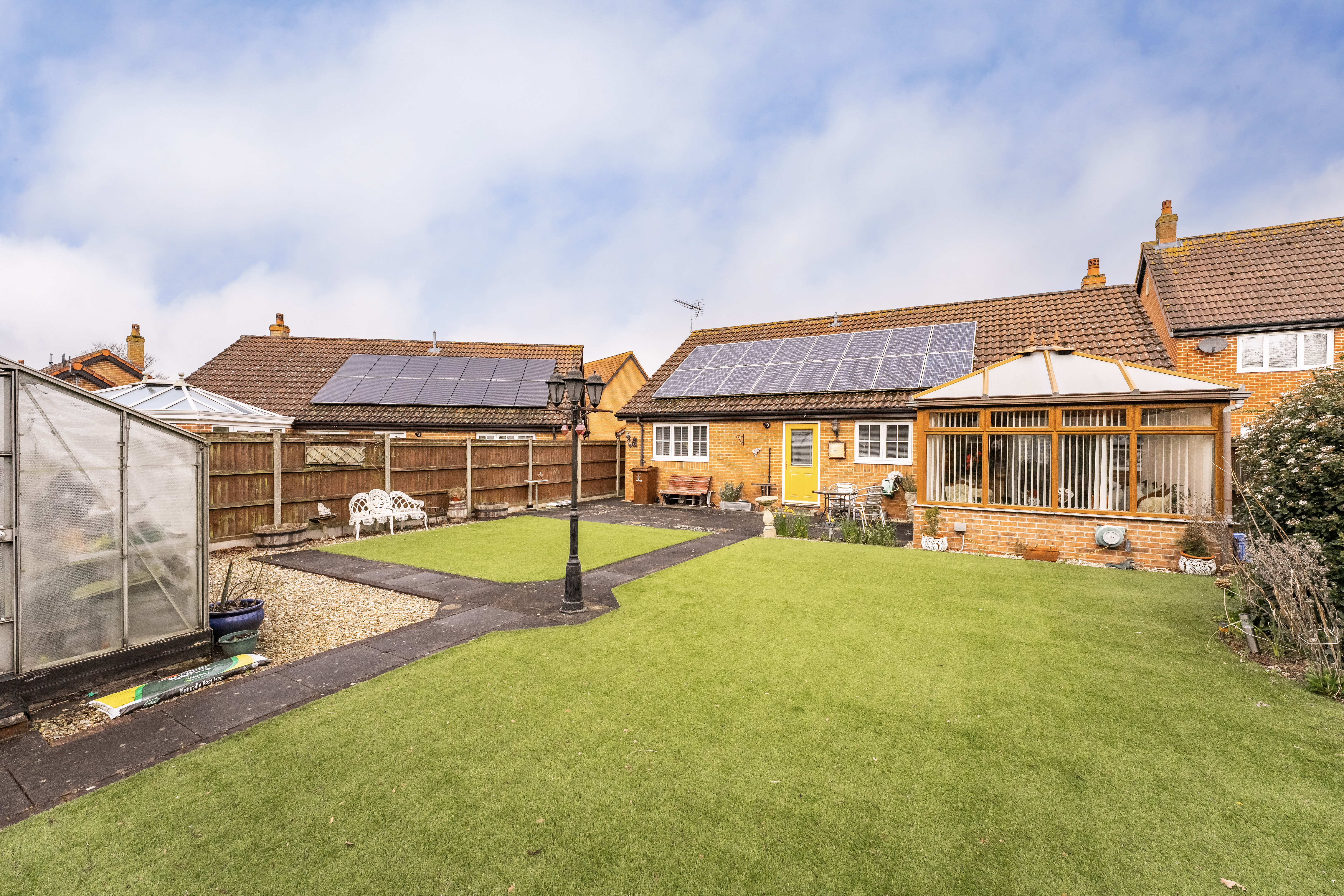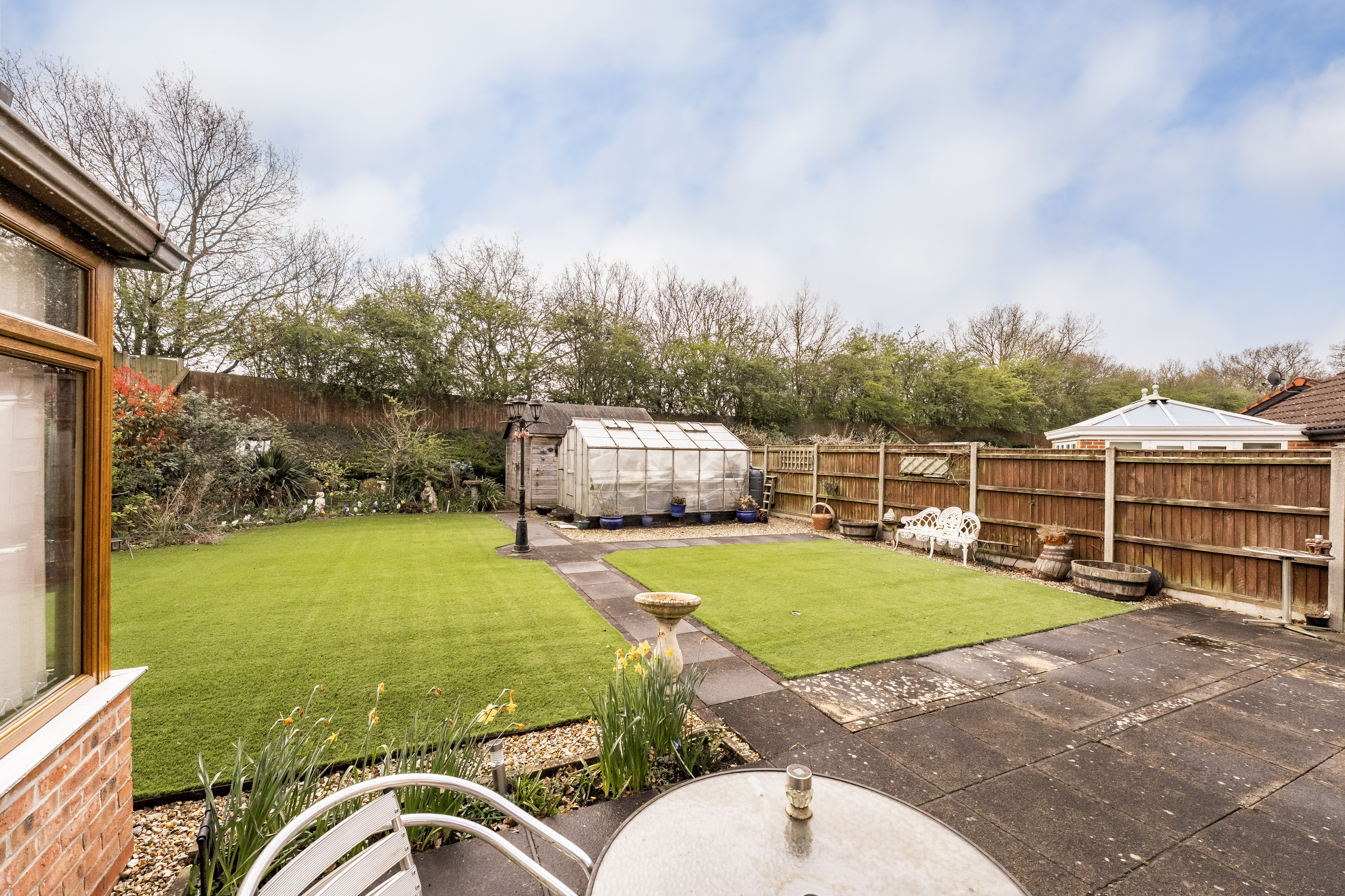 - Fully enclosed rear garden with low maintenance astroturf and patio seating area
