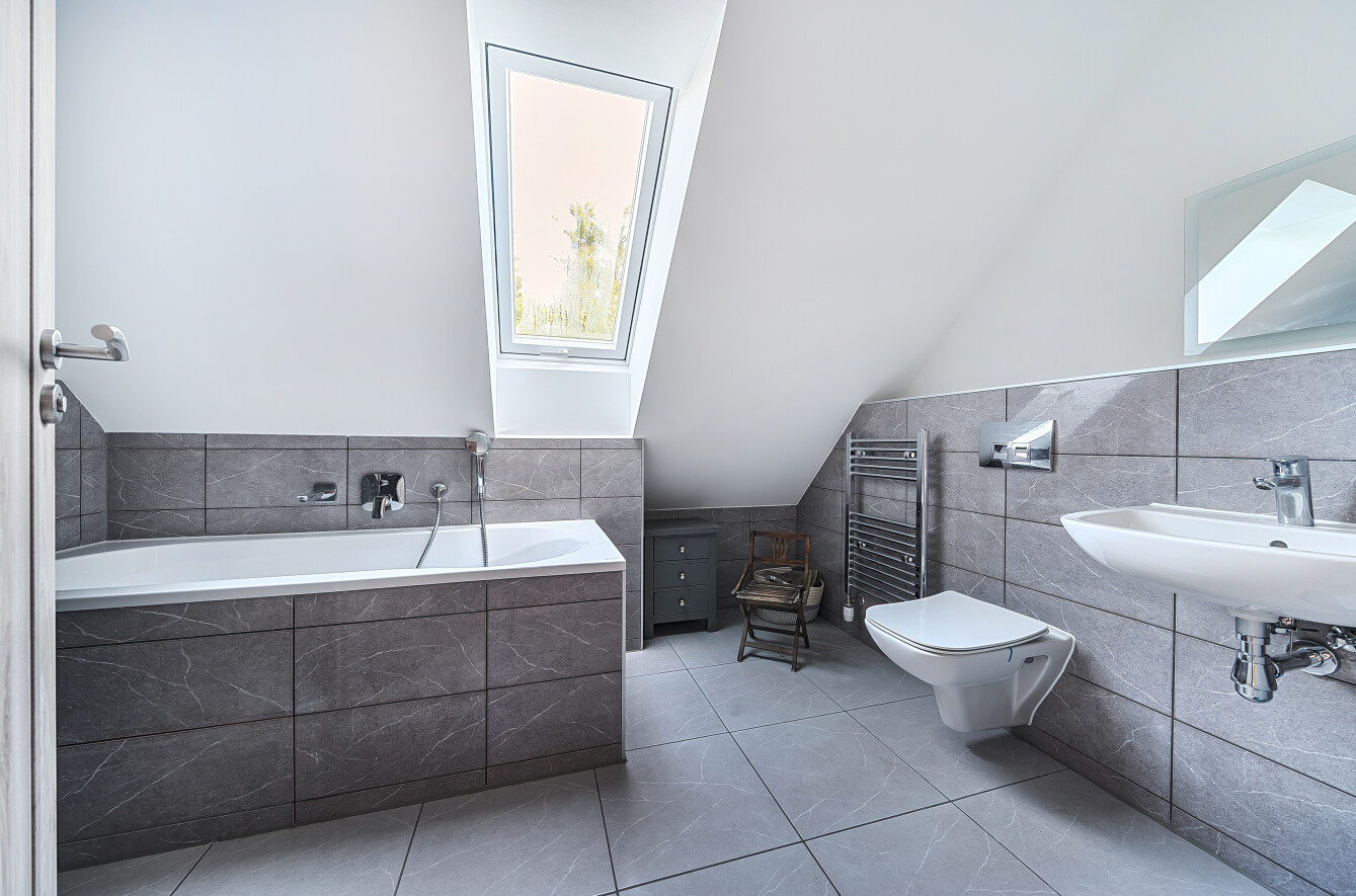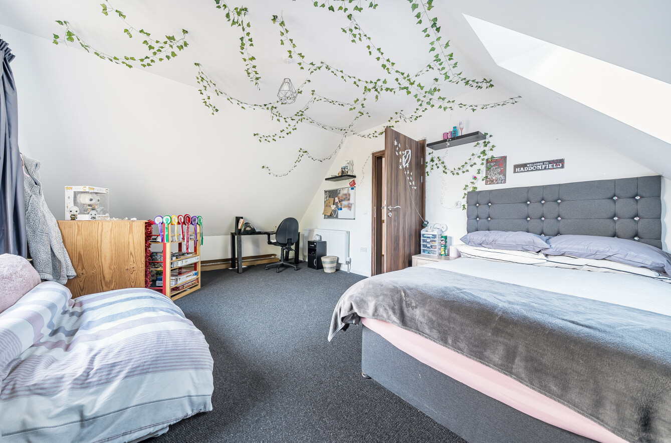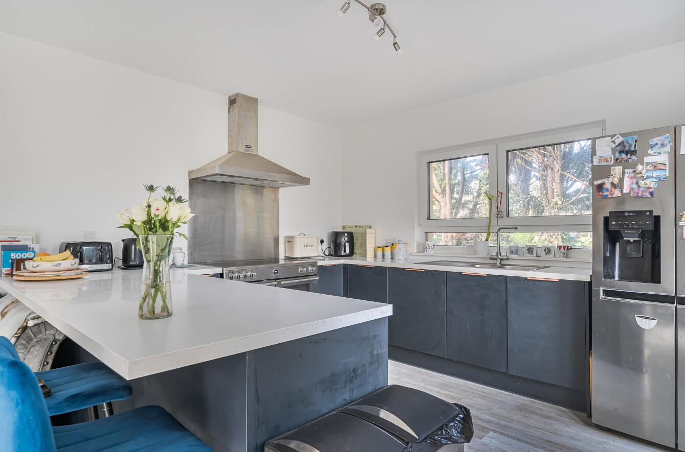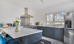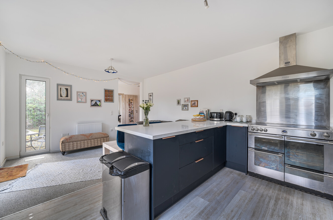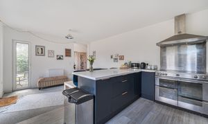 The triple aspect kitchen/breakfast room is a lovely bright space with double doors leading out to the garden. The kitchen has been fitted with modern units with stone worktops including a breakfast bar. Appliances include a range-style cooker with extractor over, integral dishwasher, and space for an American-style fridge/freezer.