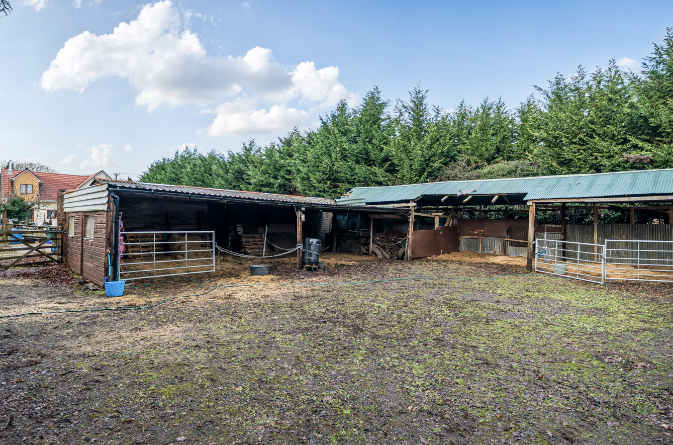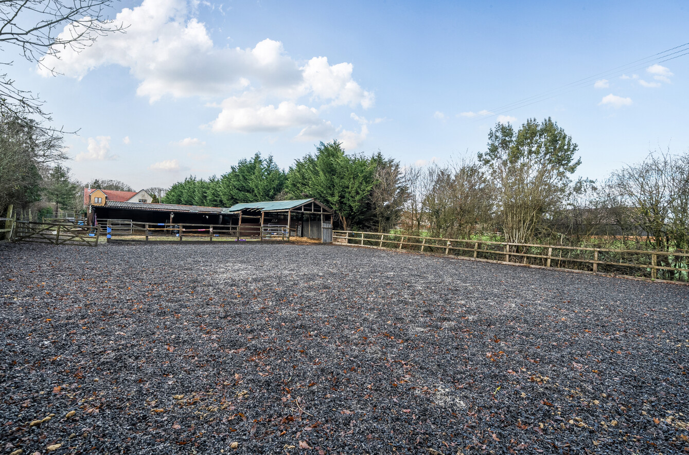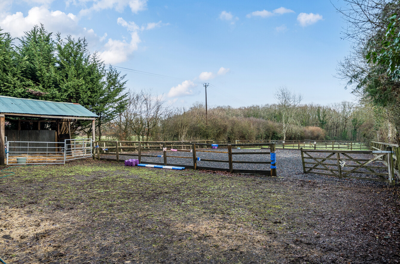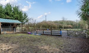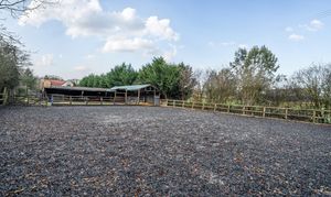 Set on a plot of around 1.5 acres, including stables, hay stores, sand school and paddocks.