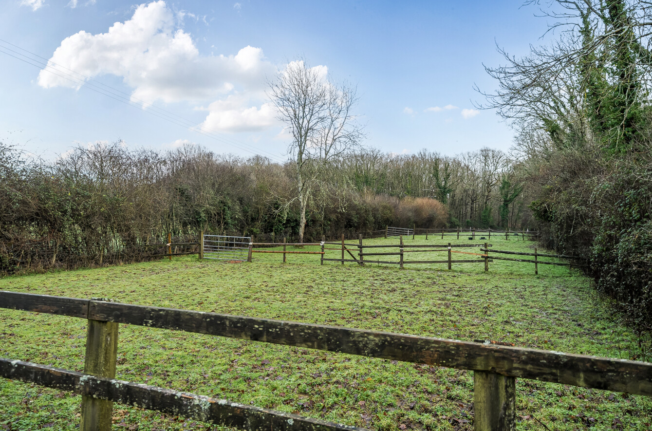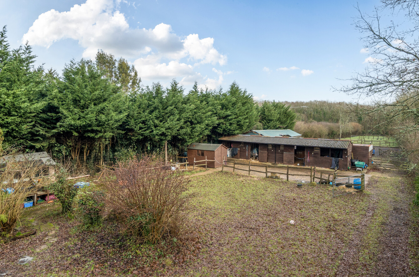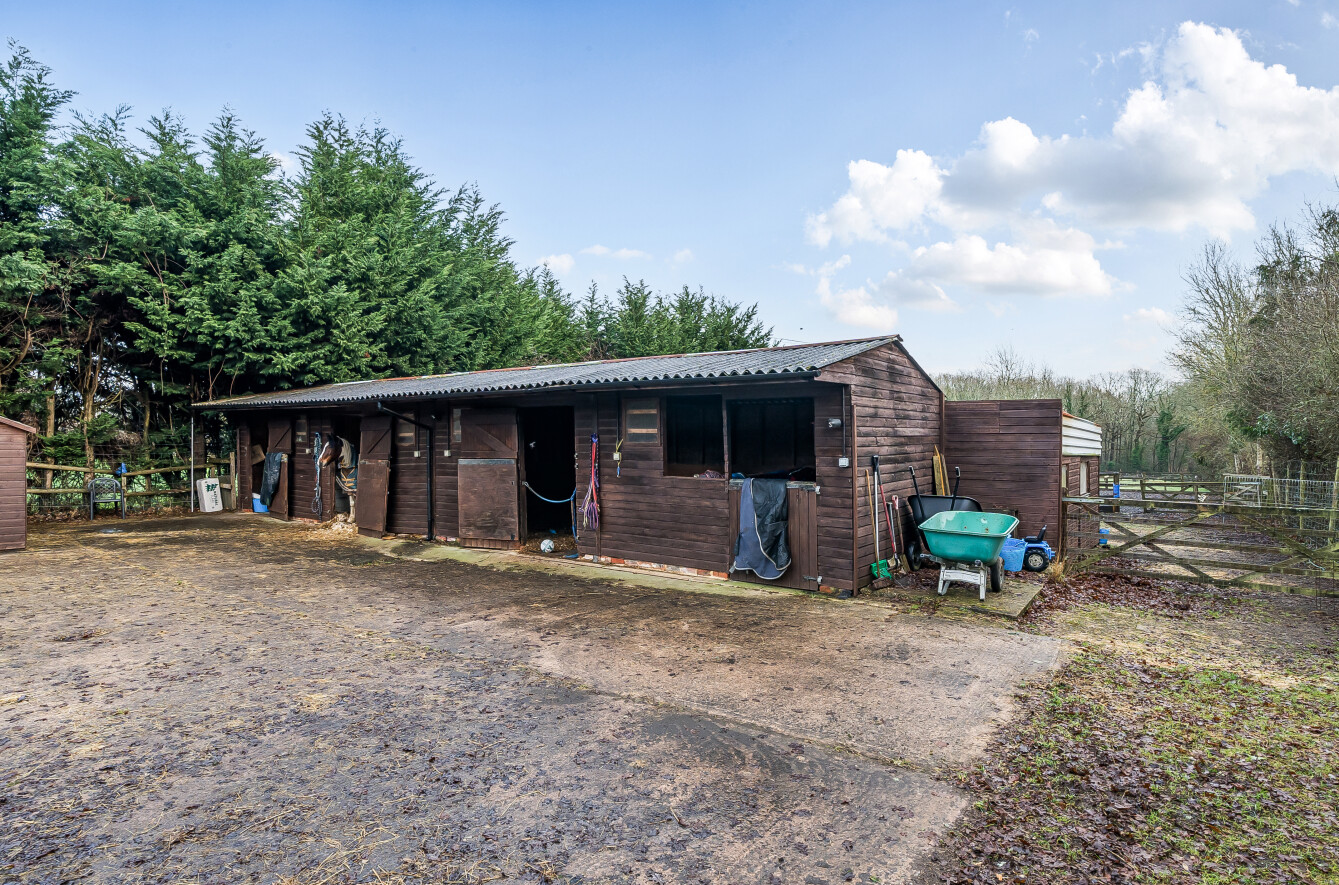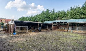 Set on a plot of around 1.5 acres, including stables, hay stores, sand school and paddocks.