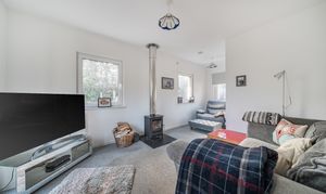 The triple aspect sitting room is a light and cosy space with a feature wood burner. The utility room, accessed via the dining hall, provides space with plumbing for a washing machine & dryer. The annexe offers a double bedroom, bathroom including a shower, and an open plan sitting room with a kitchen that includes a cooker and a dishwasher.