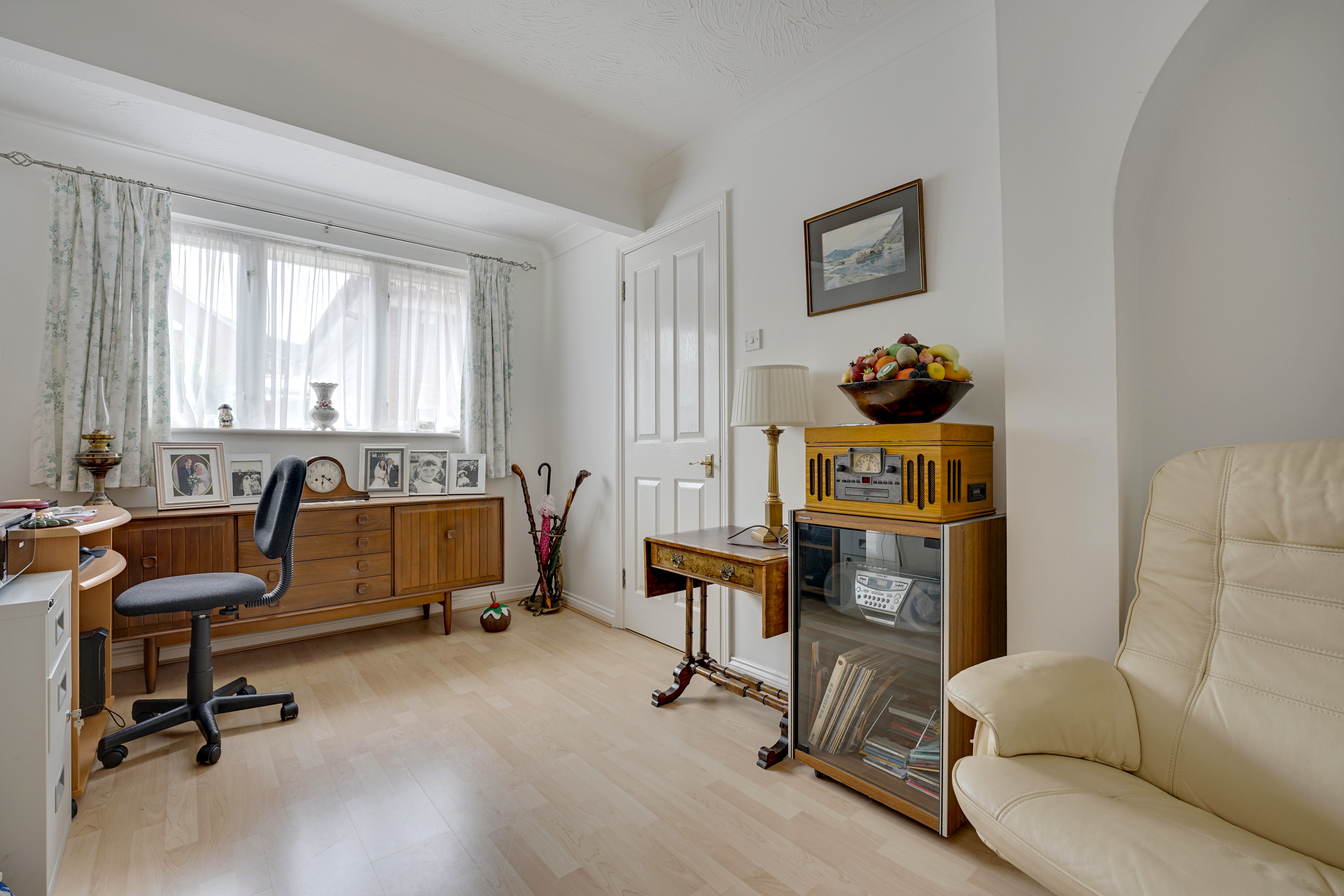 There are two reception rooms to the front of the property. Starting with the dining room, this is a good-size reception space with fitted carpet, a radiator and double glazed window to the front aspect. Moving back through the entrance hall and into the study, this features laminate wood effect flooring, a radiator and a double glazed window to the front aspect.