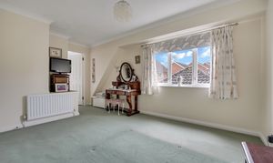 The principal bedroom is an excellent size, situated at the front of the property with a double-glazed window facing the front aspect. There are two sets of built-in wardrobes/storage cupboards, and this bedroom also boasts its own en-suite shower room which is fitted with a three-piece suite comprising a wash hand basin with chrome mixer tap, low-level flush WC and an enclosed shower cubicle with wall-mounted chrome mixer tap. Other benefits include spotlights, a radiator and extractor, plus an obscured double-glazed window to the front aspect.