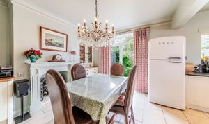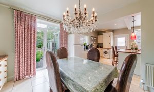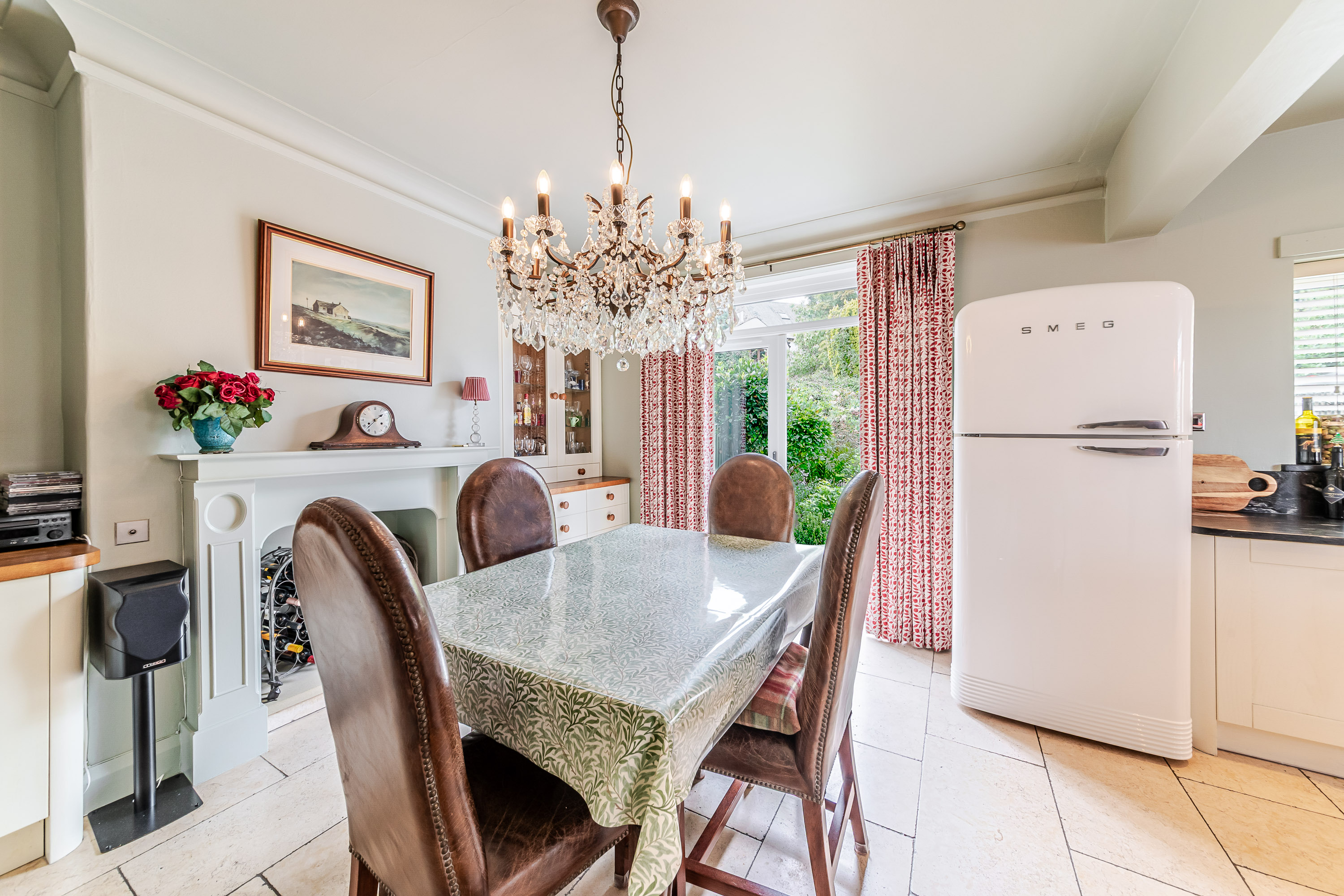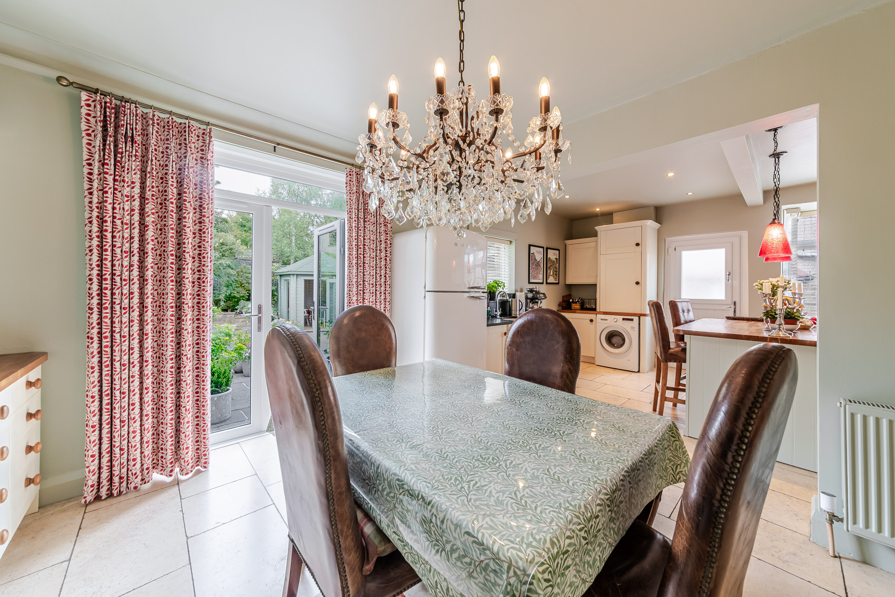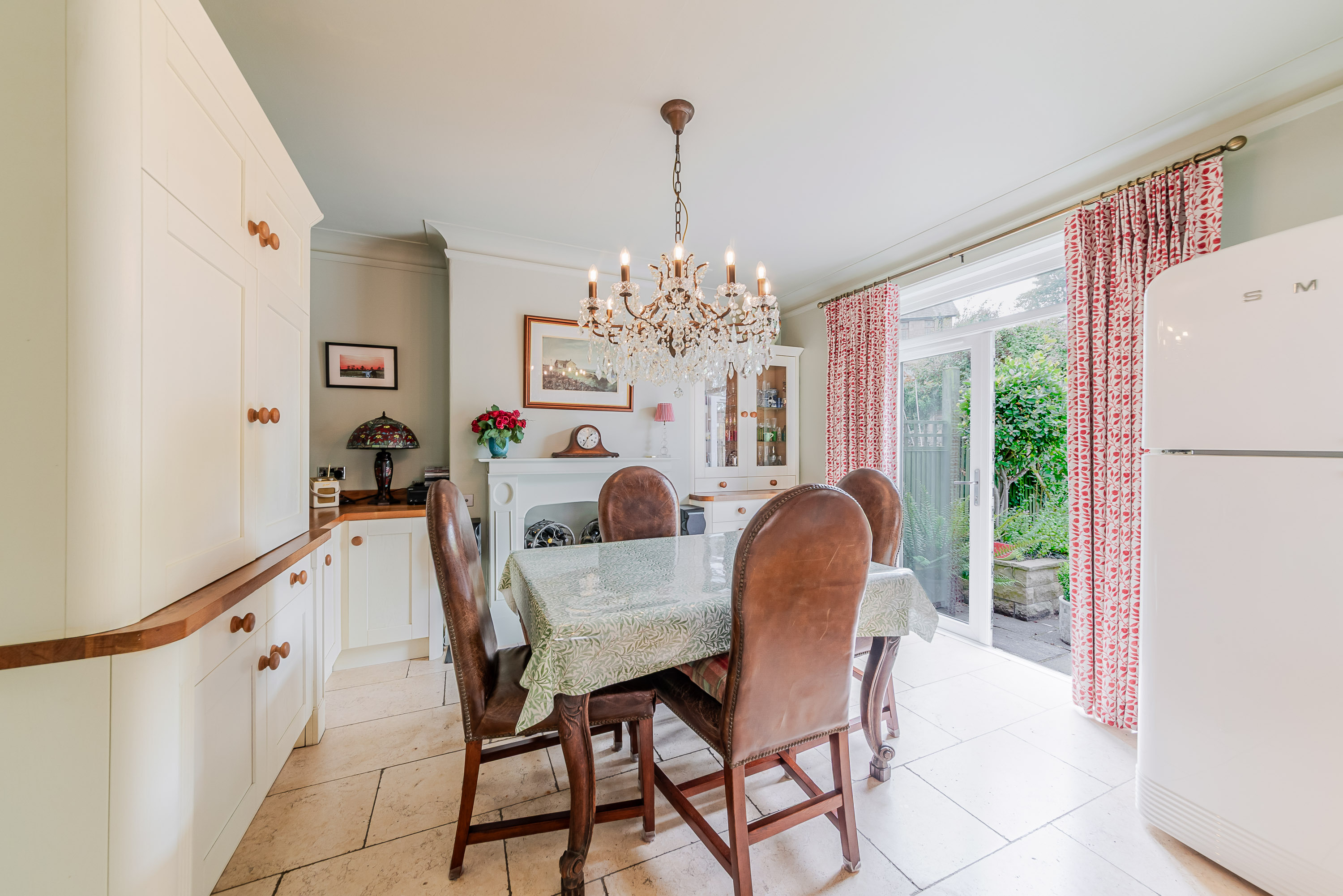 As the dimensions indicate this is a particularly spacious room ideal for those who wish to entertain and having a pVCU double glazed window with adjacent french doors providing access to the rear garden, there is additional natural light from a walk in bay to the side elevation which has pVCU double glazed windows with an adjacent pVCU and frosted double glazed stable style door giving access to the driveway. There are inset LED downlighters to the kitchen section with two ceiling light points above the island unit and a further ceiling light point to the dining section. The dining section has ceiling coving, central heating radiator, decorative fireplace with timber surround and stone hearth and having fitted units including cupboards, drawers, glazed display cupboard with glass shelving and downlighters and complimented by overlying Oak worktops with matching splashbacks.