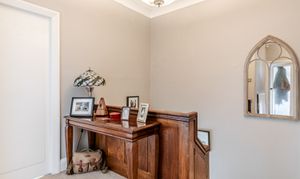 With pVCU double glazed window to the side elevation, ceiling light point and central heating radiator. This room is currently utilised as a dressing room and has some useful fitted storage together with double height cloaks hanging rails.