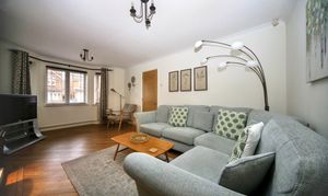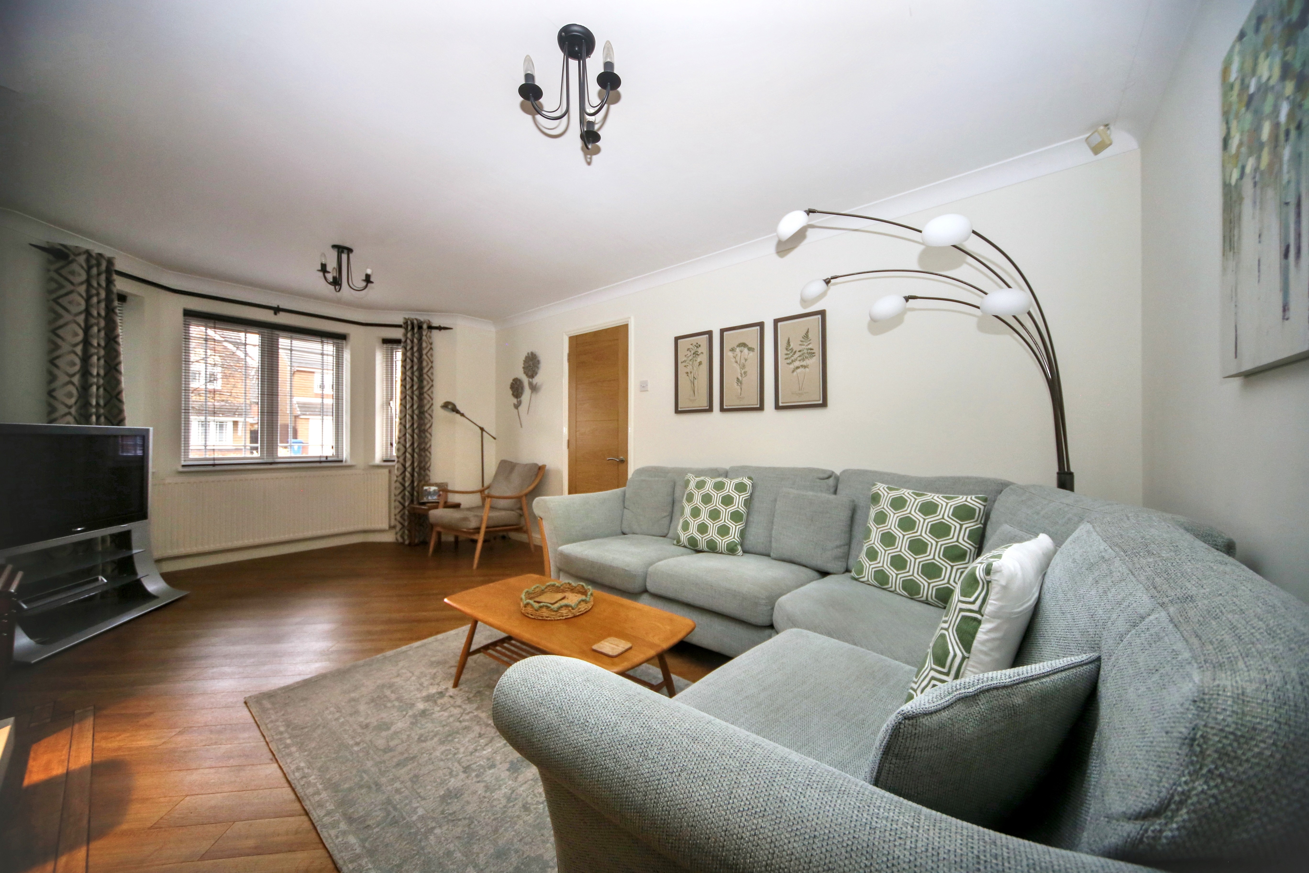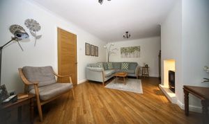 - Large bright lounge with bay window and gas fire with log burner effect