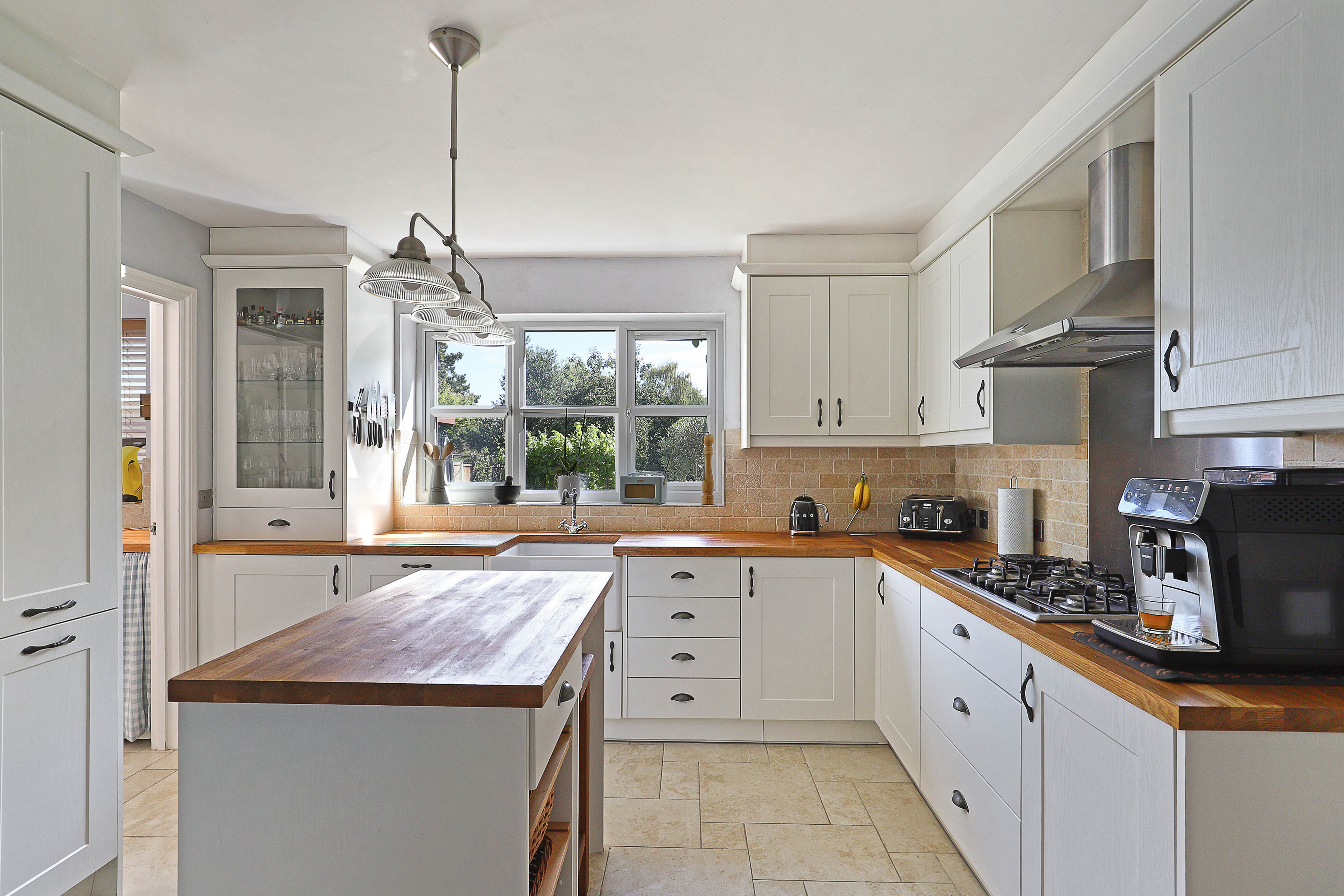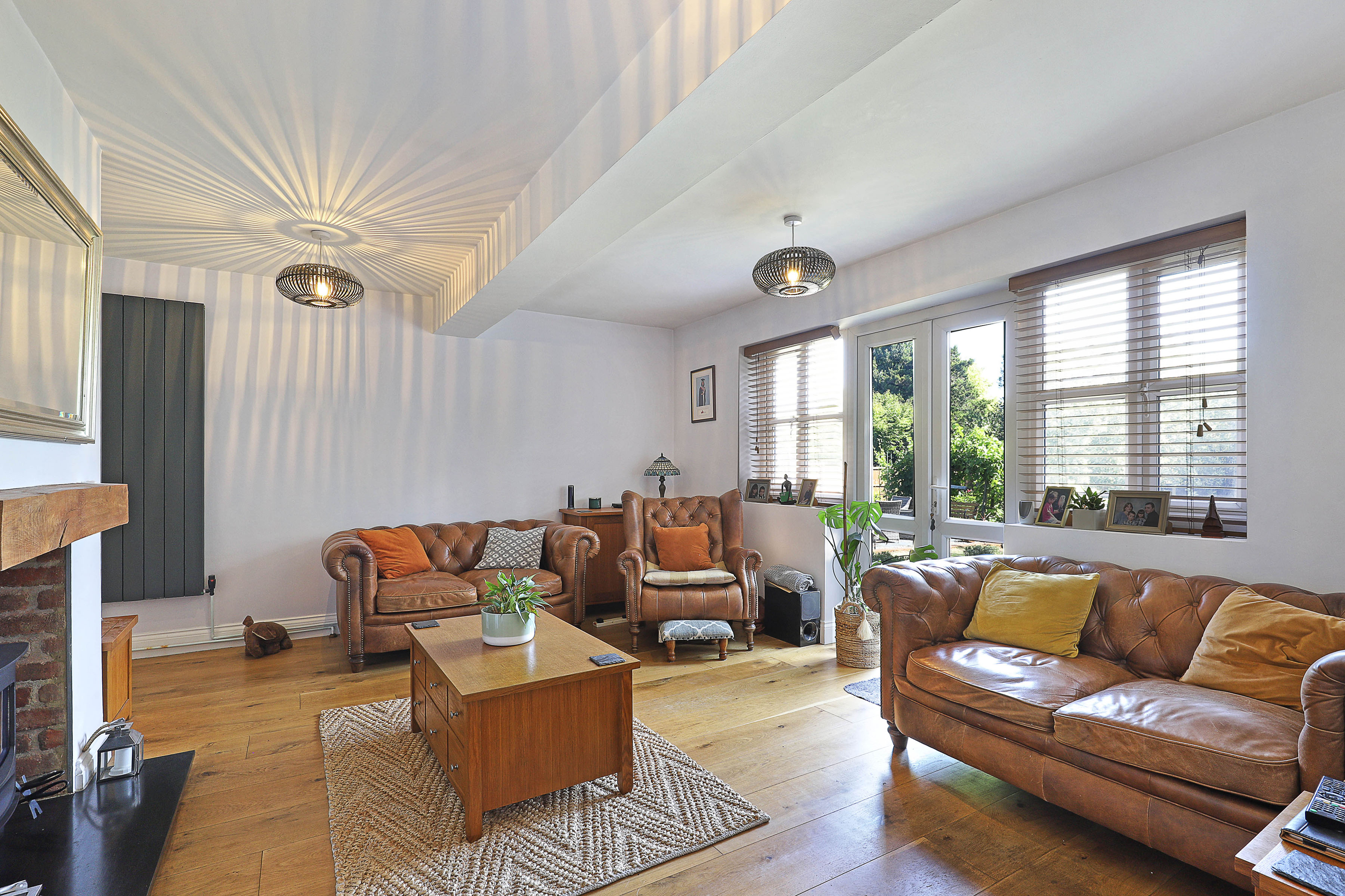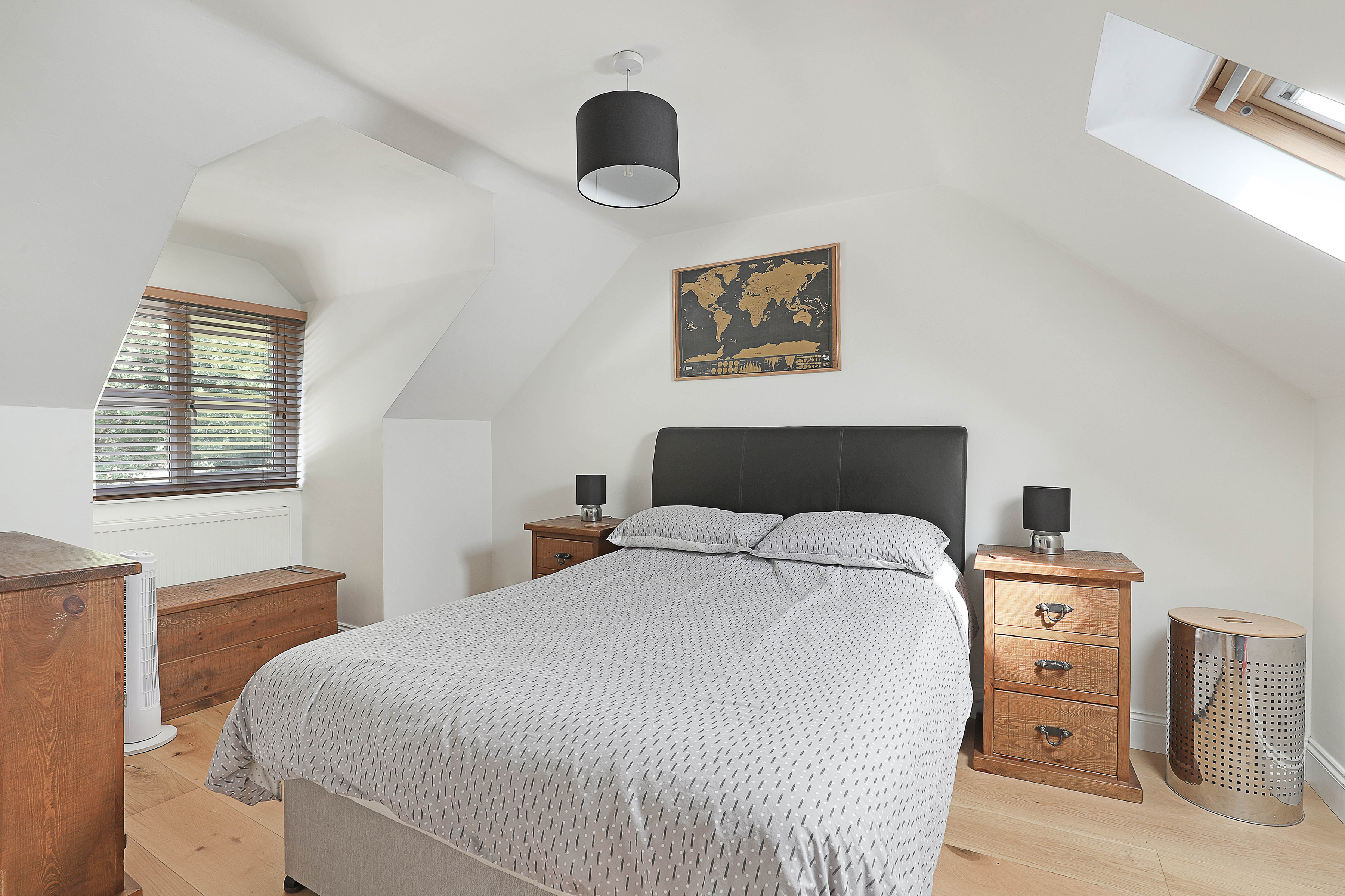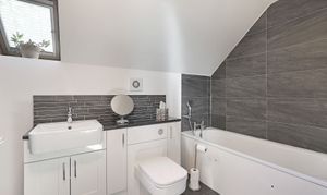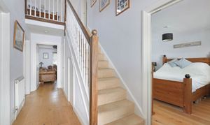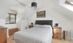 Upstairs sit two additional double bedrooms, both awash with light from their vaulted skylights above. Full of space and classic style, the family bathroom is a haven to relax within, comprising both a bath and walk-in shower. The upstairs also offers heaps of storage with a spacious landing and handy eaves space to fill.