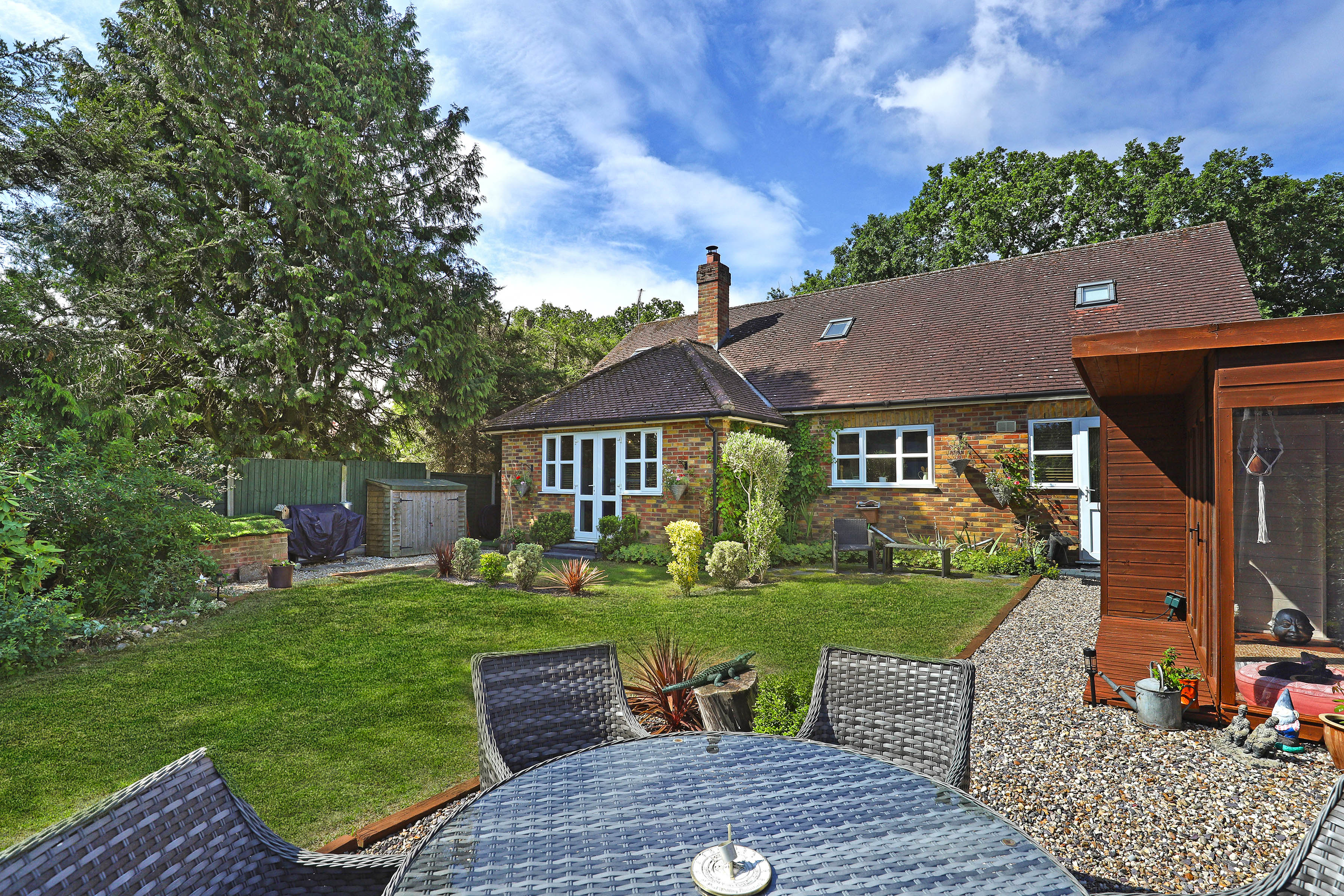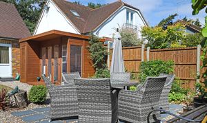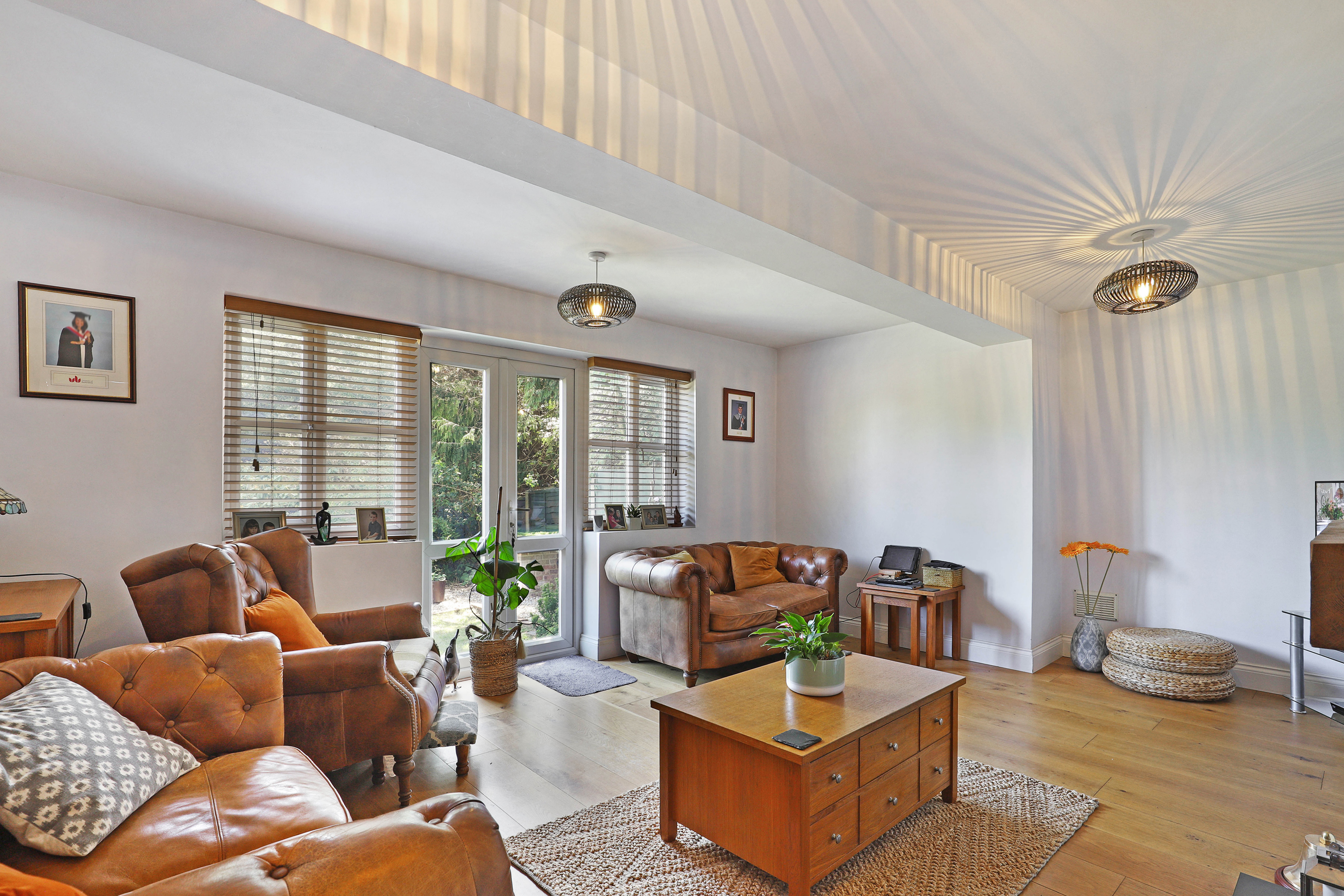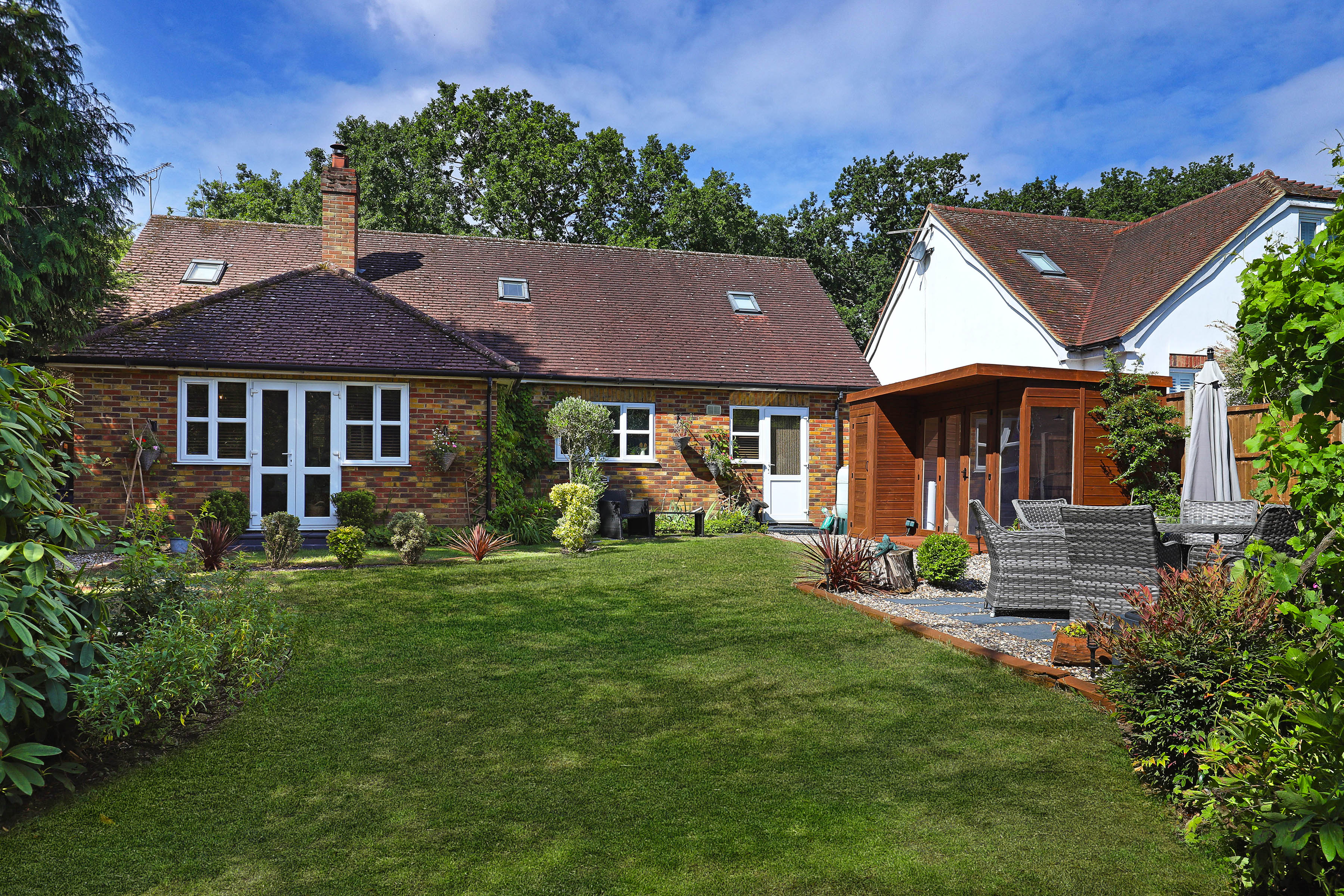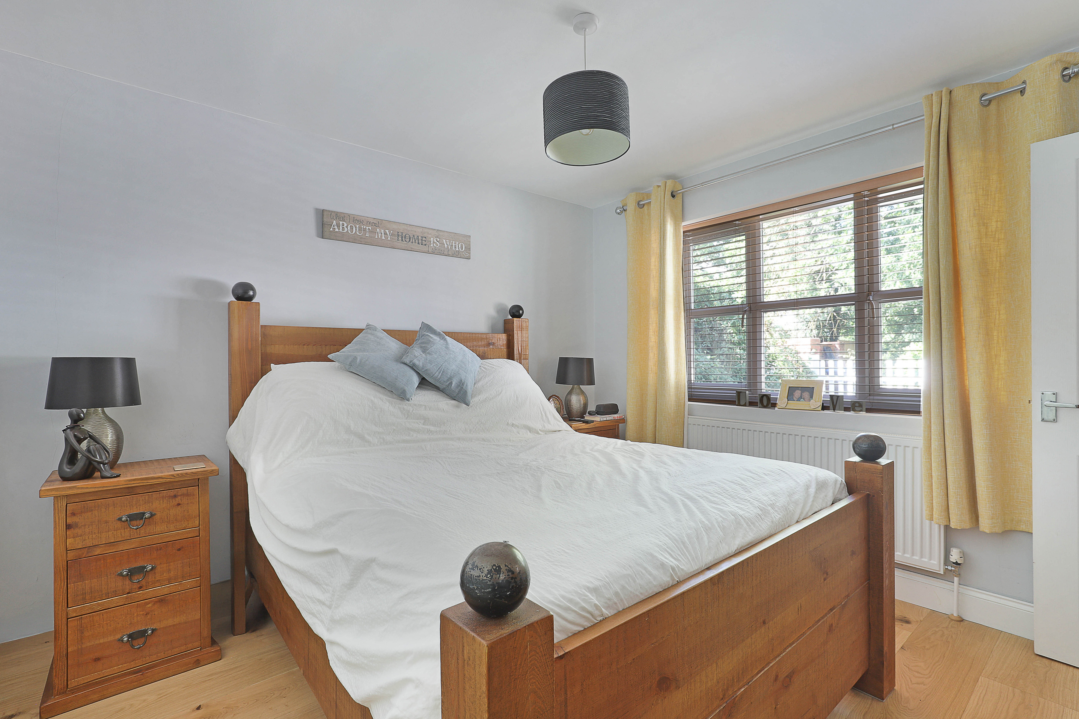 Outside, soak up the sunshine in the rear garden - the best place to enjoy summer dining and drinks with family and friends. Private and peaceful with large lawn, mature planting and a super handy garden room, it's a fab spot to be.