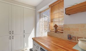 With its white picket fence, spacious driveway and gabled front porch, there’s plenty of kerb appeal on offer. A home that's been loved and cared for, step inside to find a collection of rooms offering function, versatility and warmth. With a layout that offers heaps of flexibility, across the ground floor find both a bedroom - with walk-in wardrobe- and shower room, a combination ideal for visiting guests, a growing teen or those requiring ground floor living. Filled with timeless shaker cabinetry the kitchen is full of country style, complete with butler sink and adjoining utility with handy rear access. There’s also a separate dining room that’s perfect for big family dinners. When it’s time to unwind, the living room is wonderfully spacious yet cosy with its toasty log burner and warm oak flooring underfoot. What’s more, with french doors on to the garden beyond this is a lovely spot to enjoy all the year through. An internal garage completes the ground floor.
