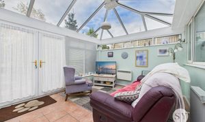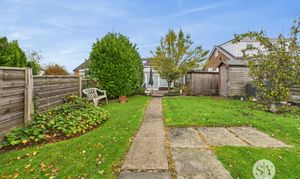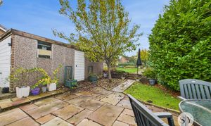 To the rear of the property, a large South-West facing garden bathes the interior in natural light, providing a serene outdoor oasis. A single detached garage and driveway parking for four vehicles ensure convenience and security for homeowners.