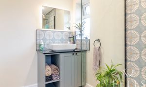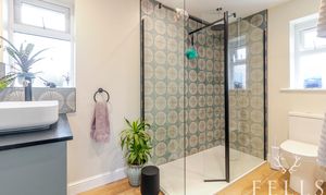 Upstairs, there are two generous double bedrooms, both light and airy, served by a contemporary shower room. This features a walk-in shower with remotely controlled Mira system, vanity unit with raised basin and a heated LED mirror designed to prevent steam.