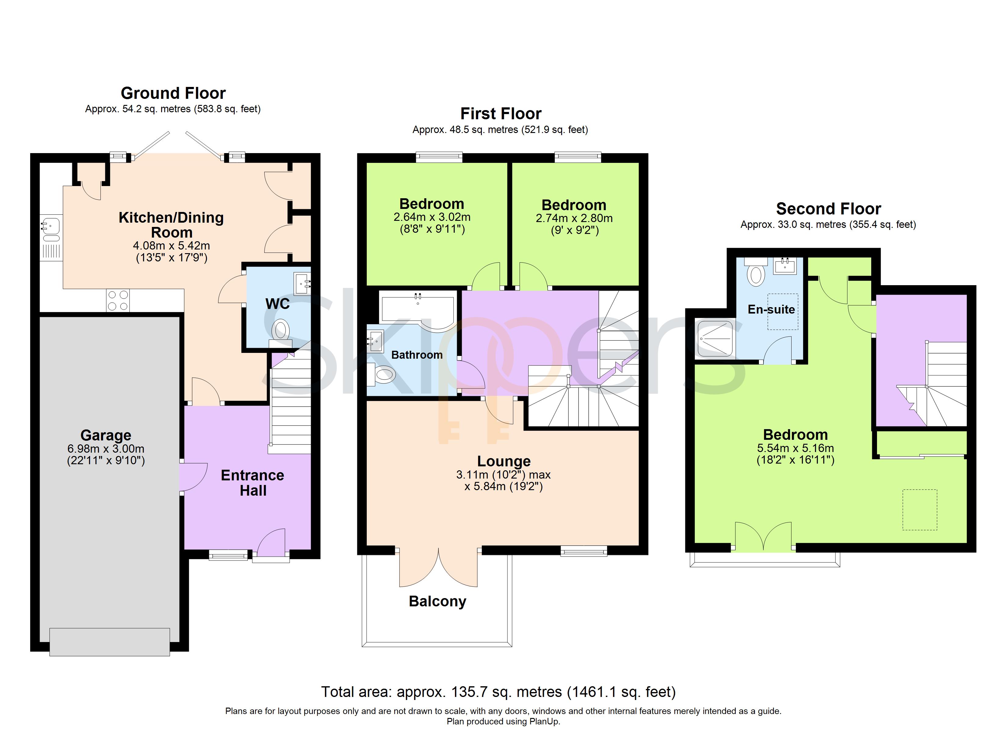 The ground floor boasts a spacious entrance hallway, modern/kitchen diner which opens to the garden and access into the garage. The first floor features the two smaller bedrooms, family bathroom and main living room, whilst the top floor offers a secluded master bedroom with dressing area/fitted wardrobes, en-suite shower room and a Juliet balcony enjoying the open outlook to the front.