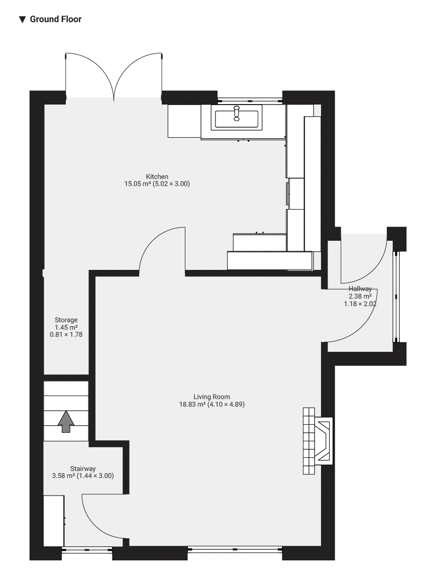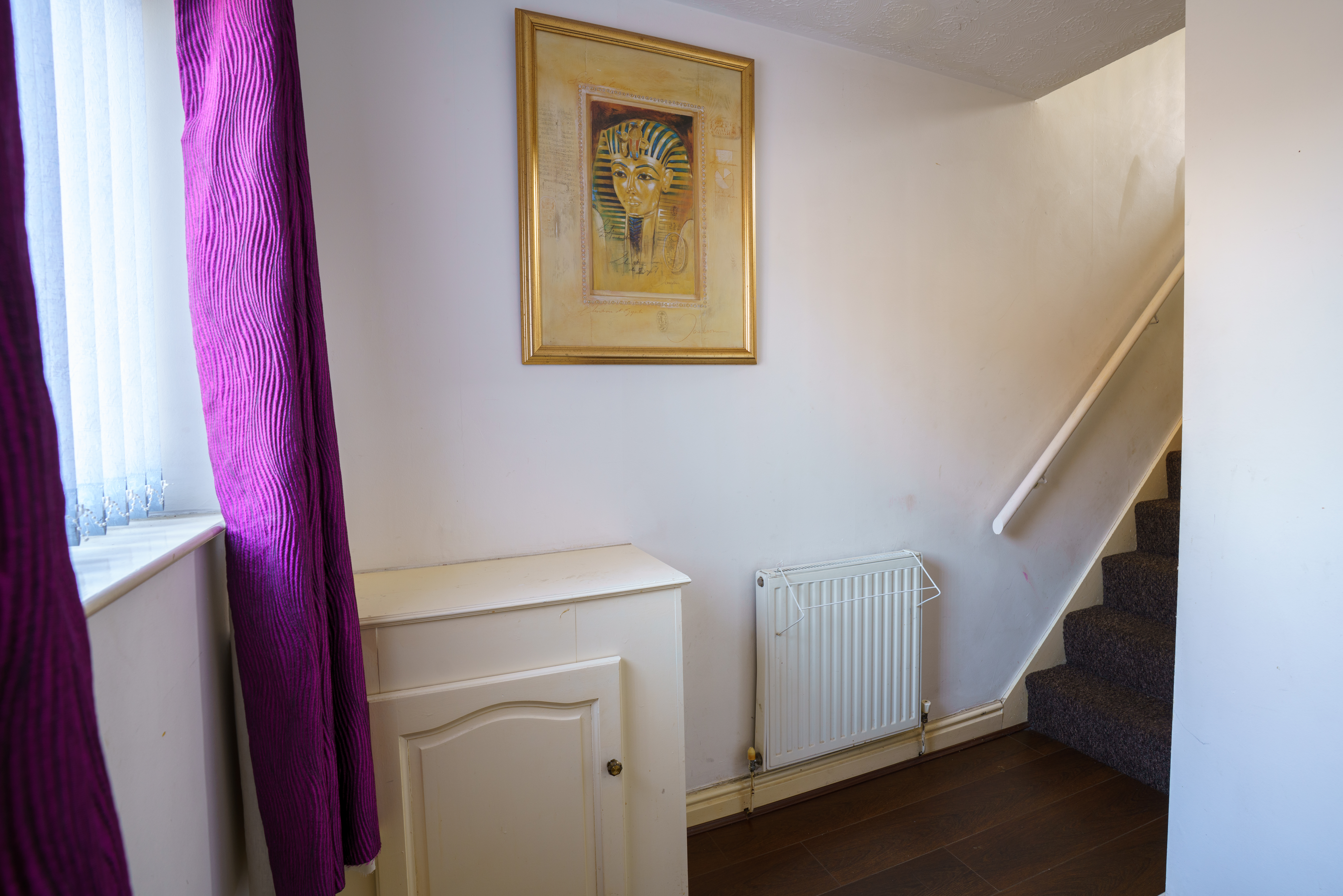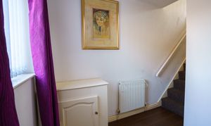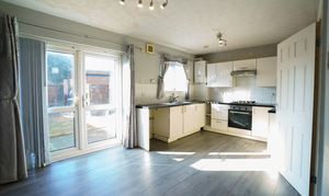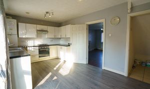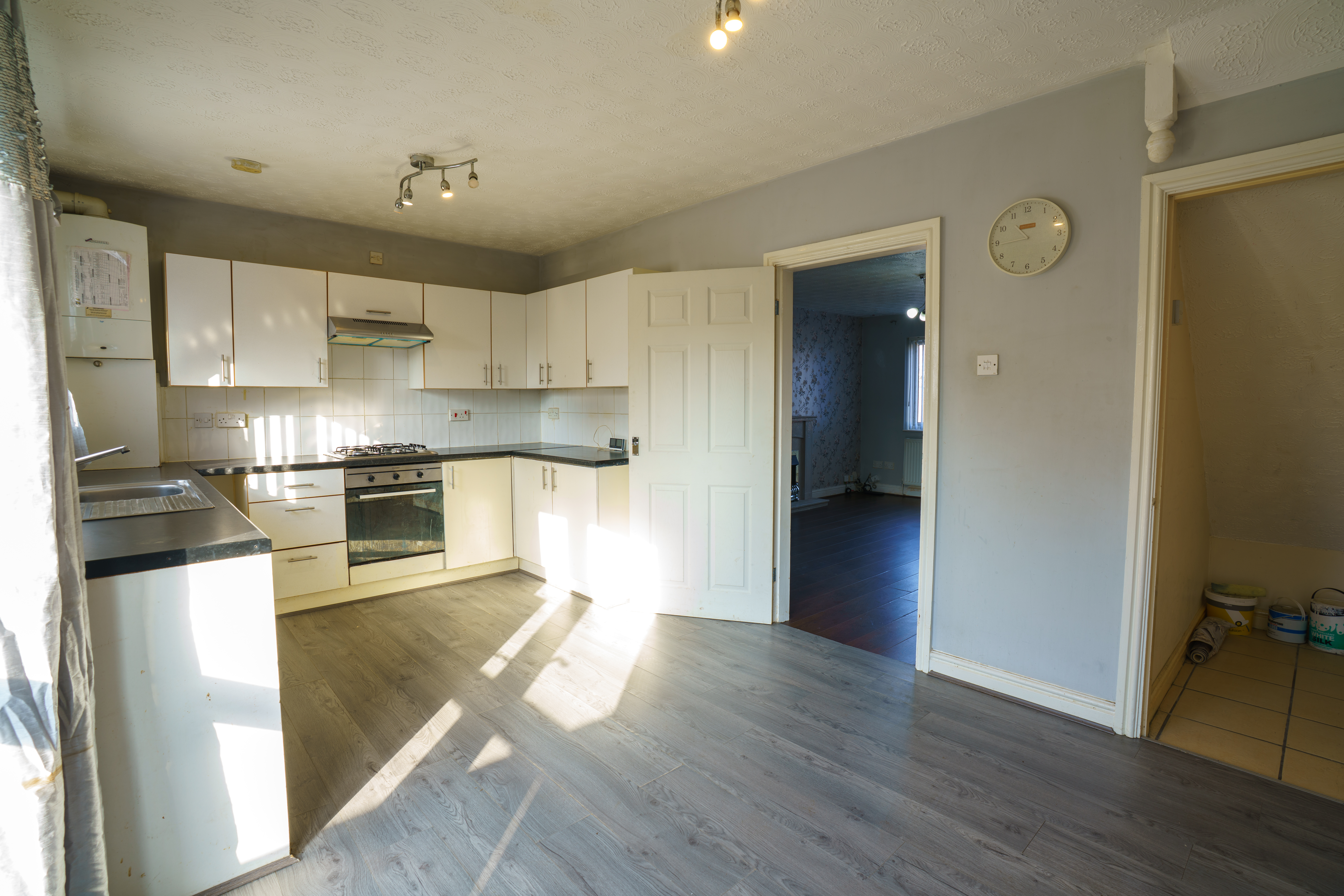 Open plan kitchen, build in cooker, laminate flooring, UPVc double glazed windows and doors leading to rear garden. Gas central heating with under the stairs storage.