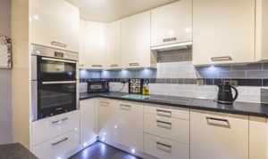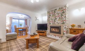 The ground floor offers a warm and welcoming layout beginning with a lovely lounge featuring an attractive gas fireplace, creating a cosy focal point. A modern fitted kitchen provides excellent workspace and storage with contemporary units throughout. To the rear, the spacious dining room benefits from sliding patio doors that open directly onto the garden, allowing plenty of natural light to flow in and offering a perfect space for family meals and entertaining.