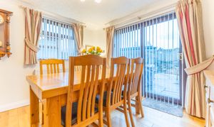 - Spacious dining room with sliding patio doors opening to the rear garden