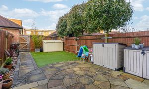 Outside to rear, is the garden which has been landscaped with artificial grass and a patio area abutting the home. A path leads to the rear gate, which gives access to two parking spaces, the first directly behind the house and the other in the neighbouring sheltered carport.