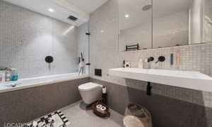 - Modern bathroom with built in speaker system