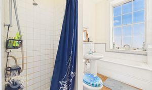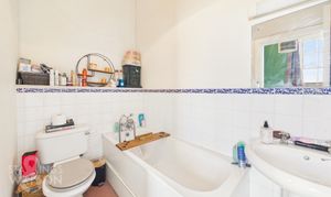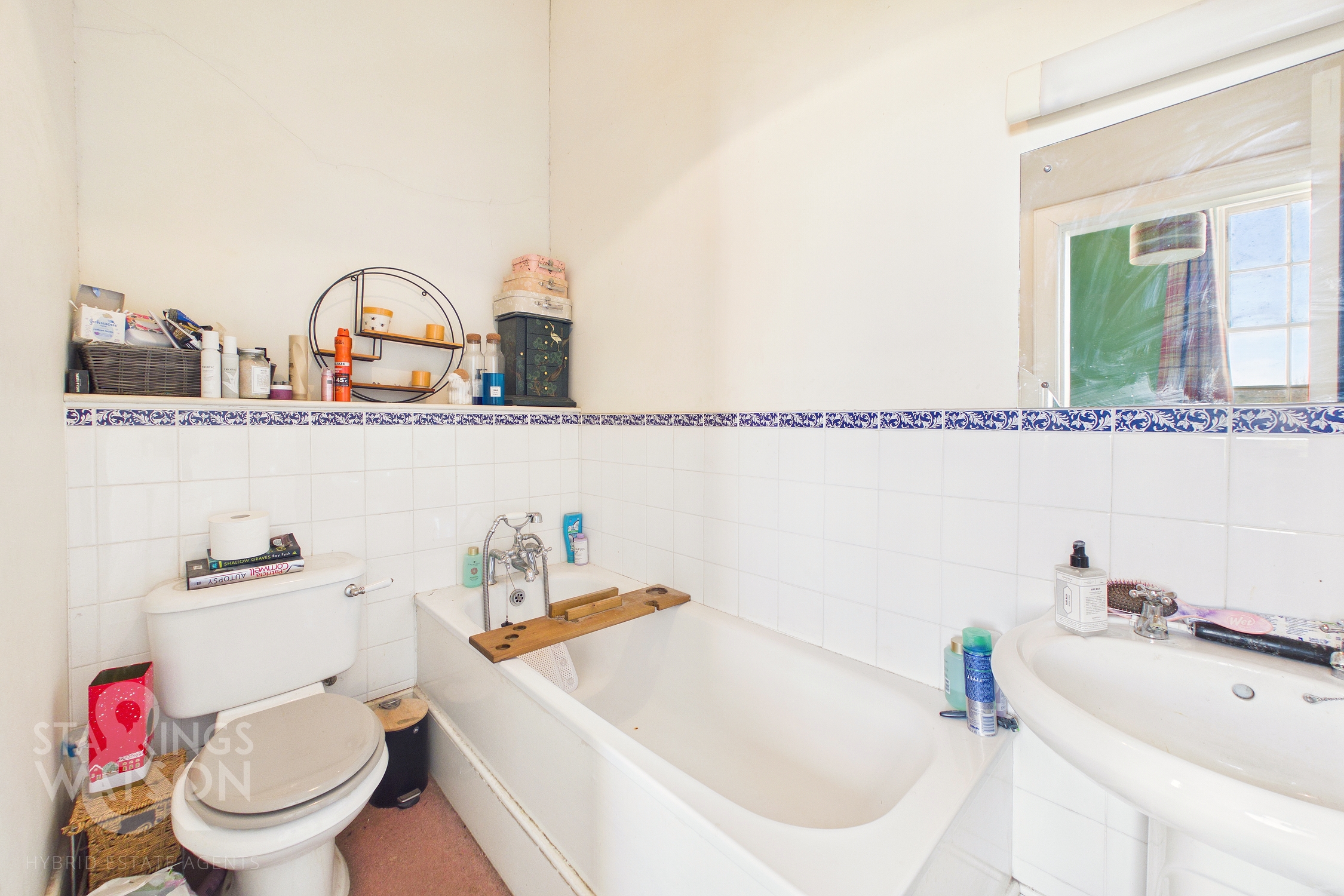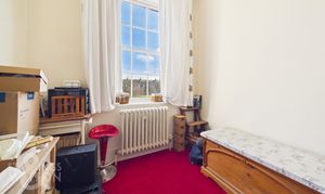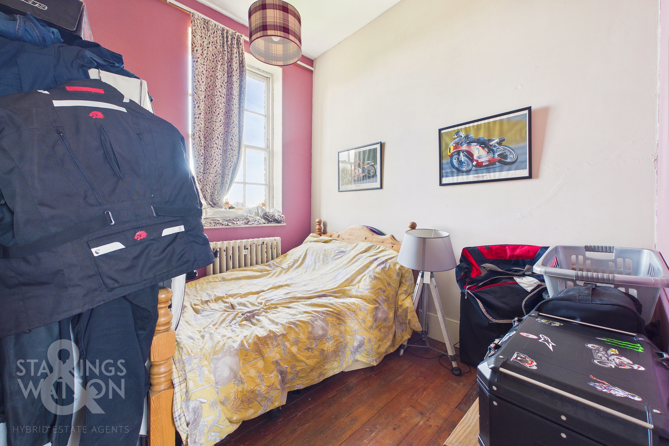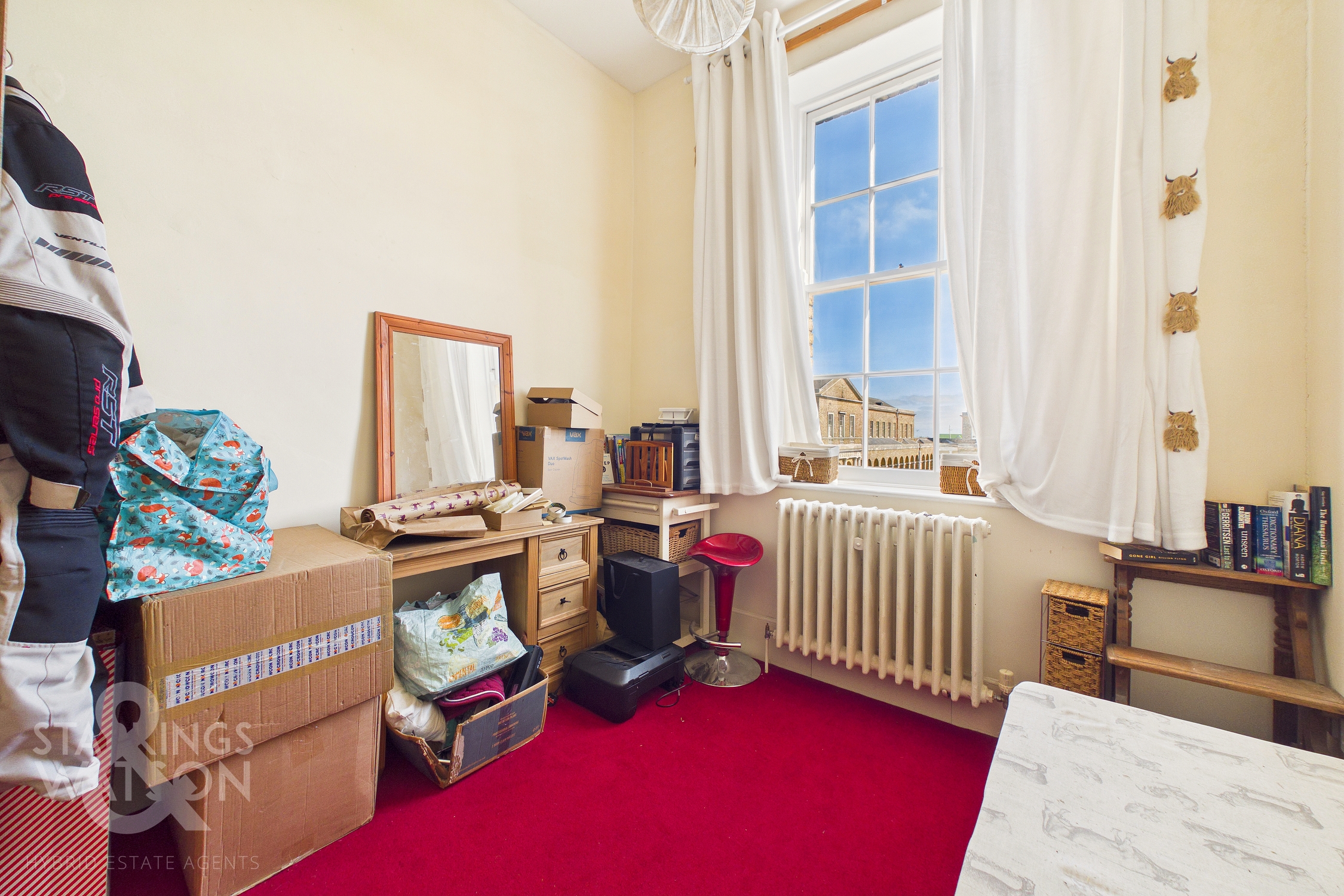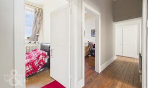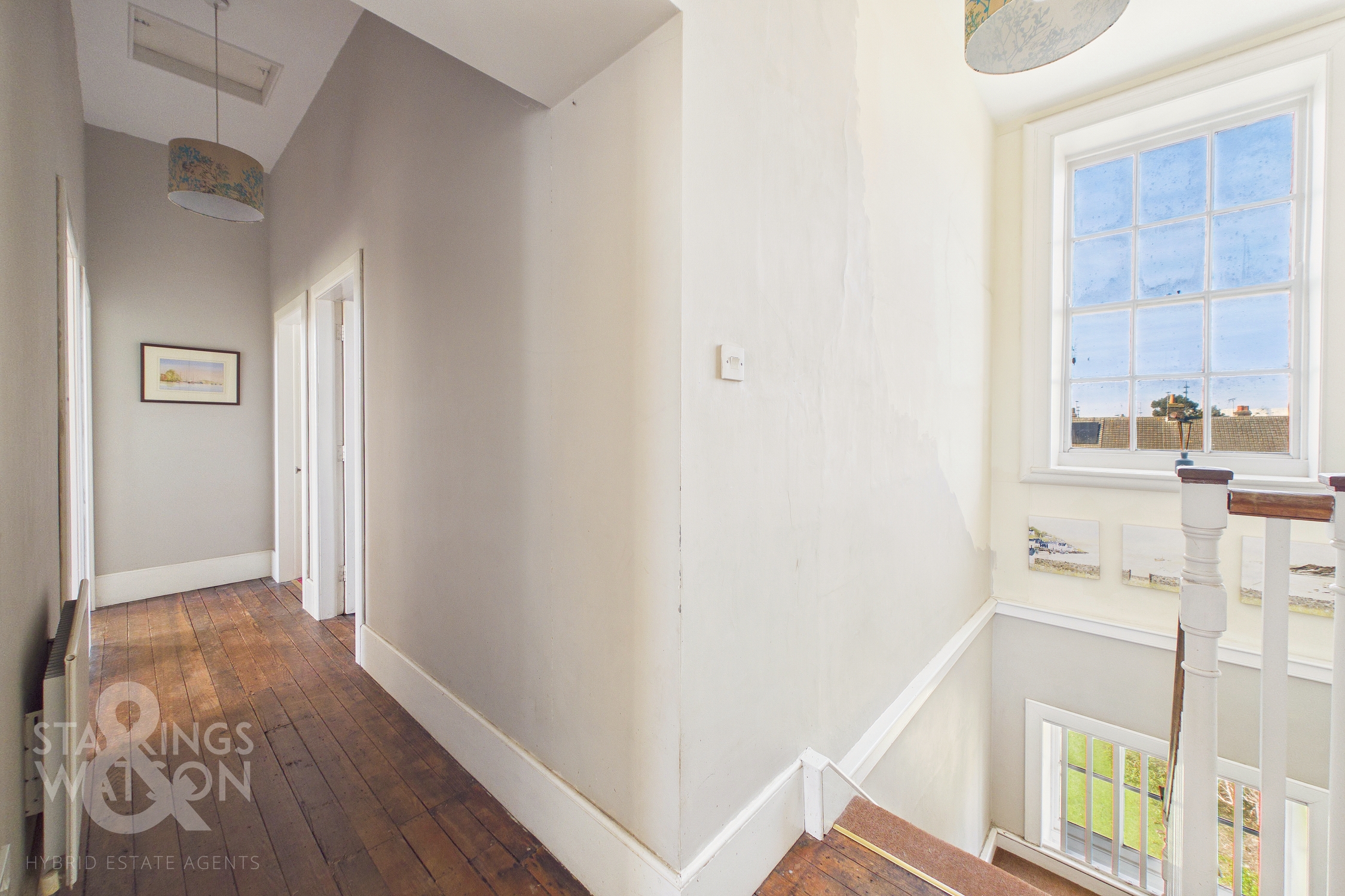 Ascending the stairs to the first floor landing, loft access can be found overhead while double opening doors provide airing cupboard storage. From here, doors lead to four well proportioned bedrooms. The first room offers space for a double bed with wood flooring, while the similarly sized opposite room features carpeted flooring and is currently used as a dressing room, though it would make an ideal home office/study. The second double room is currently used as a guest suite and includes twin radiators, wood flooring, and ample space for storage furniture. The main bedroom provides twin front facing windows overlooking the communal courtyard, with further room for a large double bed and wardrobe space. Completing the accommodation is a four piece family bathroom at the end of the landing, offering a fitted bath, a white two piece suite, and an inset shower cubicle with tiled splashbacks.