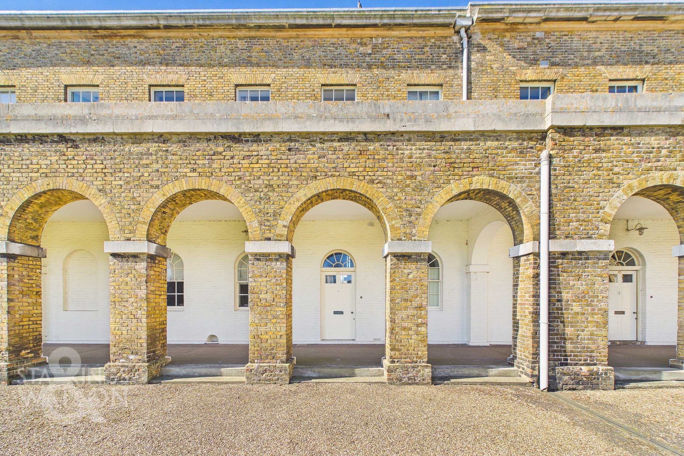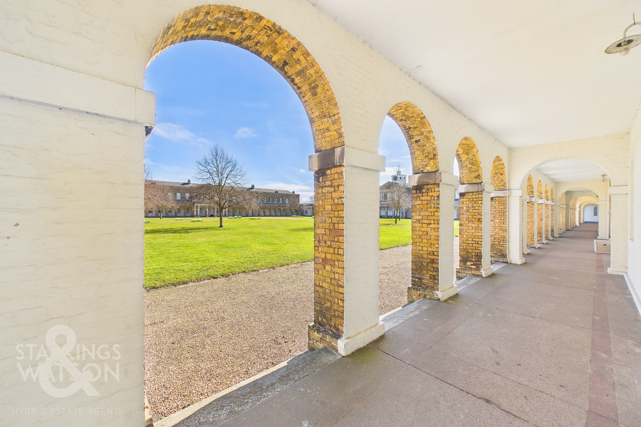 INCOMPARABLY SITUATED in an EXCLUSIVE GATED DEVELOPMENT, this GRADE II LISTED MID-TERRACE HOME offers in excess of 1,200 Sq. Ft (stms) of light filled and spacious living accommodation, steeped in history. Previously part of the Royal Naval Hospital and converted to residential dwellings in 1993, the building dates back all the way back to 1811. The development offers over 11 ACRES of meticulously maintained COMMUNAL GARDENS to enjoy, in addition to a substantial PRIVATE and ENCLOSED GARDEN with DRIVEWAY PARKING adjacent. Internally, the accommodation includes an inviting HALLWAY ENTRANCE, the perfect meet and greet space, with stairs rising to the first floor and a conveniently positioned two piece W.C. From here you are welcomed to the fully fitted KITCHEN, boasting INTEGRATED APPLIANCES and complimented by the bright DINING ROOM adjacent, enjoying views of the impressive courtyard. The heart of the home is the 23’ SITTING ROOM, perfect for relaxing or those who love to entertain. The space is flooded with natural light from generous DUAL ASPECT six-over-six bespoke SASH WINDOWS. Heading upstairs, doors open to FOUR BEDROOMS, all rooms are well proportioned and are serviced by a four piece FAMILY BATHROOM. The MAIN BEDROOM includes a private ENSUITE BATHROOM.