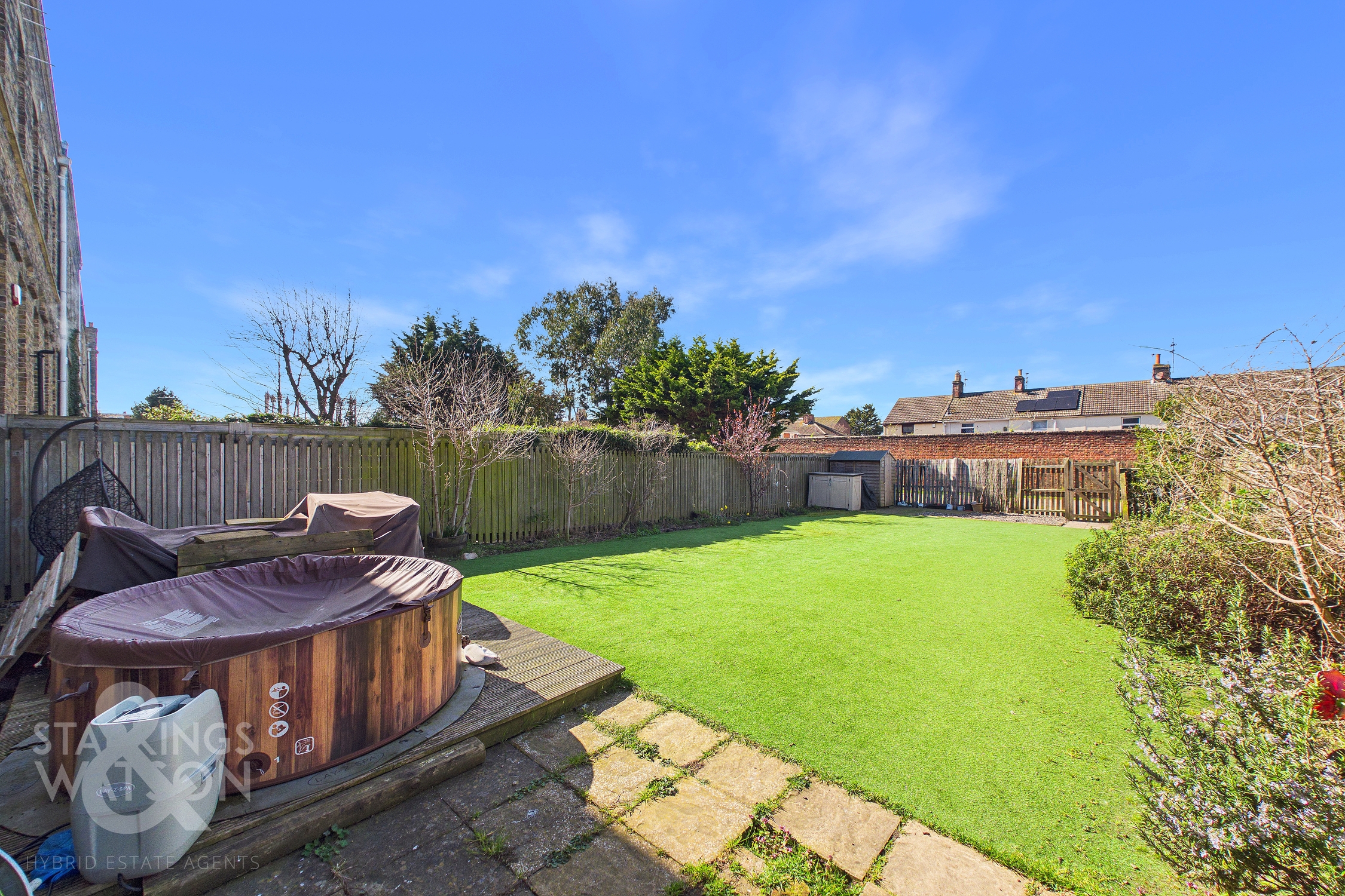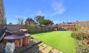 THE GREAT OUTDOORS Stepping outside, the private and enclosed garden is surrounded by timber panel fencing. It initially offers a flagstone patio and raised wooden decking, providing an ideal space for outdoor furniture; it is currently home to a hot tub, perfect for enjoying the summer months. The remainder of the garden is predominantly laid to artificial grass, designed with a low maintenance in mind, featuring flower beds on either border with a range of shrubs and plantings. This leads to the foot of the garden, where a low maintenance shingle area and hardstanding provide space for a timber storage shed and further outside storage. A wooden latch and brace gate leads out to the driveway parking located at the rear.