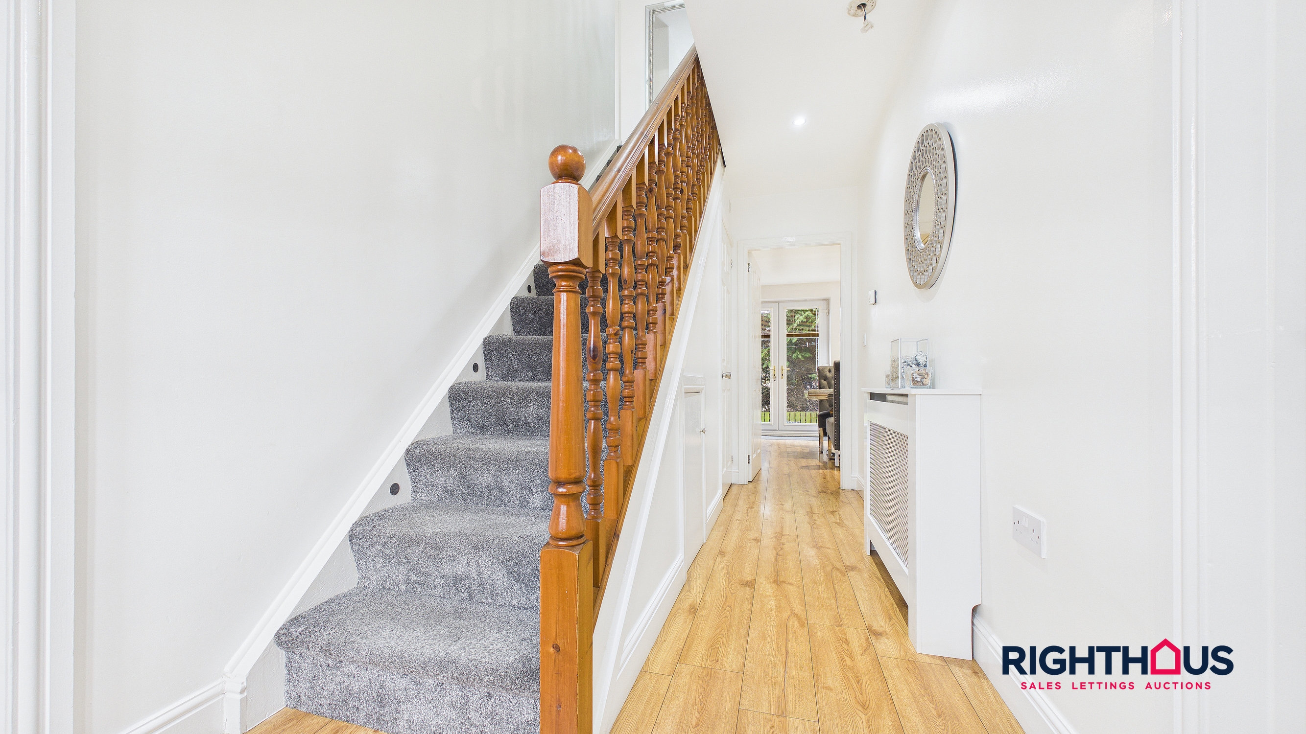 Giving access to reception rooms , W.C. and dining kitchen. Staircase rising to first floor level.