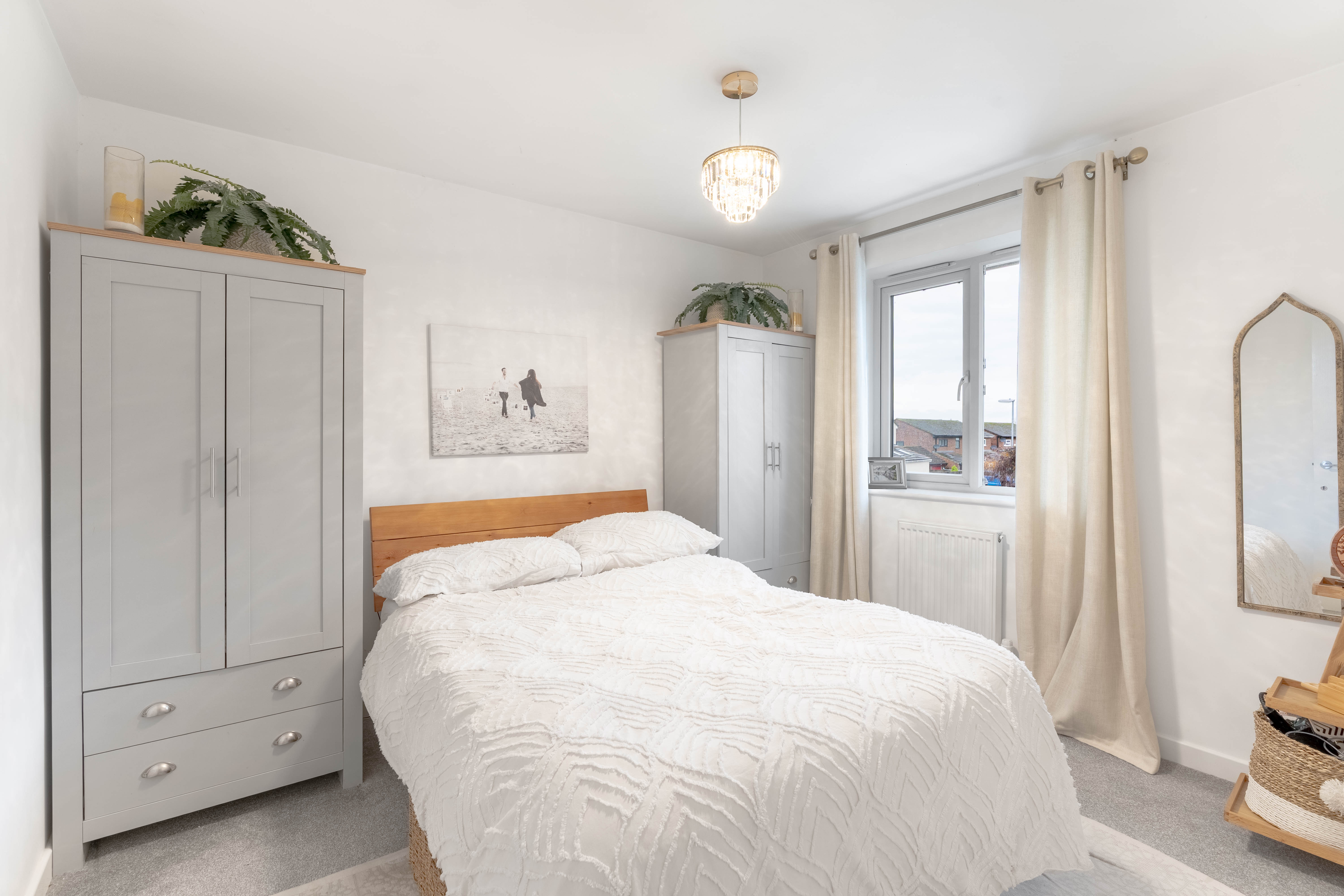 The living room is a bright and spacious reception area, benefiting from double-glazed bi-fold doors to the rear garden and an additional window to the side. There are two double panelled radiators, an under-stairs storage cupboard and a TV point, making it a versatile and comfortable living space. The landing provides access to the loft space. The remainder of the accommodation comprises 3 bedrooms and a bathroom. Bedroom one overlooks the rear aspect and includes a double panelled radiator and TV point. Bedroom two features a front aspect window, also with a double panelled radiator and TV point. Bedroom three enjoys a rear aspect window and includes a double panelled radiator and TV point. The bathroom is fitted with an obscure double-glazed window to the front aspect, a heated towel rail, side-panelled bath with shower over, wall-mounted wash hand basin with storage cupboard beneath, low-level WC and tiled flooring.