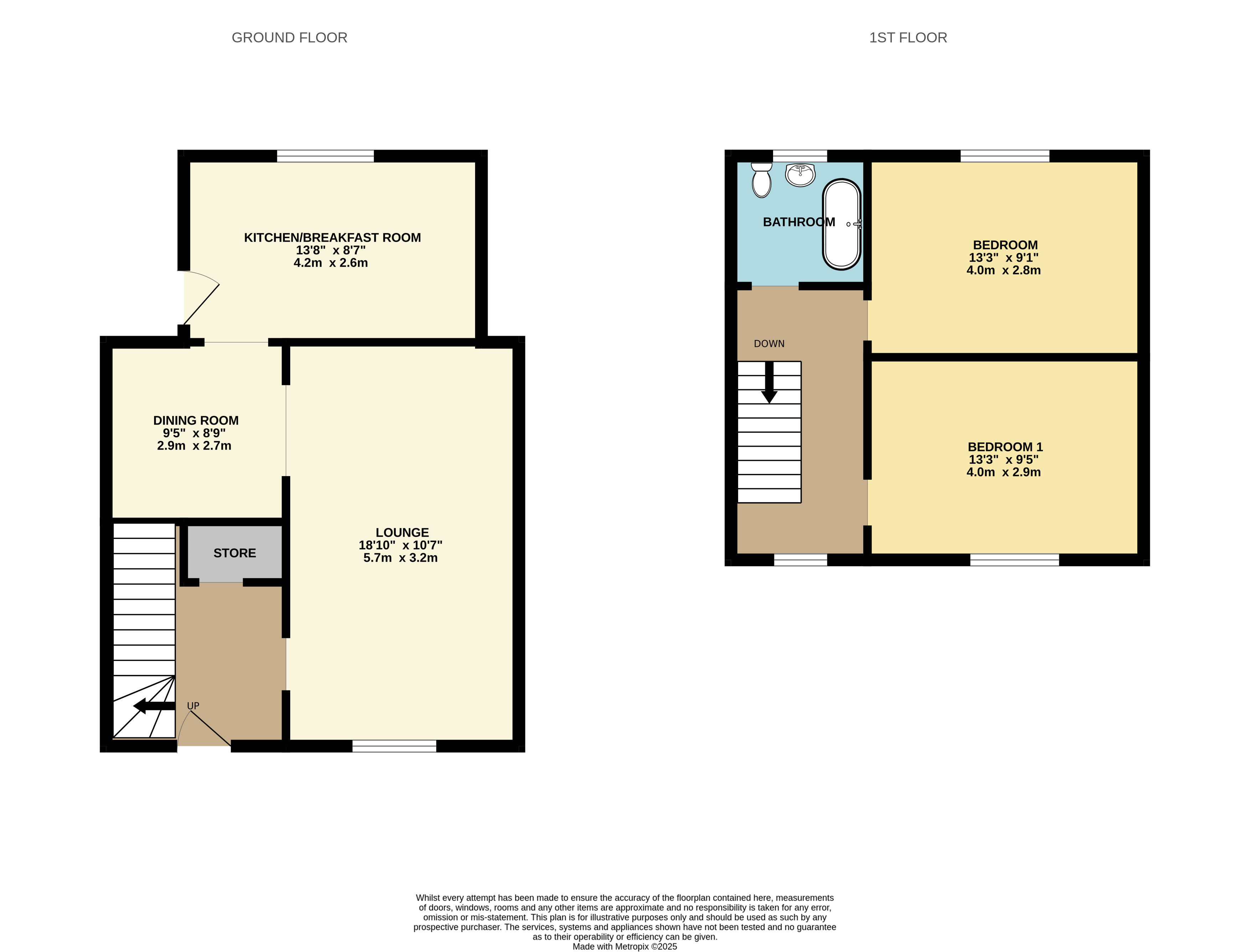 Upstairs, the first floor features two generously sized double bedrooms, both capable of comfortably accommodating king-size beds. Bedroom one, positioned to the rear, benefits from a triple aspect window that floods the room with natural light. This room offers excellent floor space for a large wardrobe, bedside cabinets and additional furniture. Bedroom two, located at the front of the home, also accommodates a king-size bed with ease and provides ample space for storage, making it ideal as a principal bedroom, guest room, or children’s room.