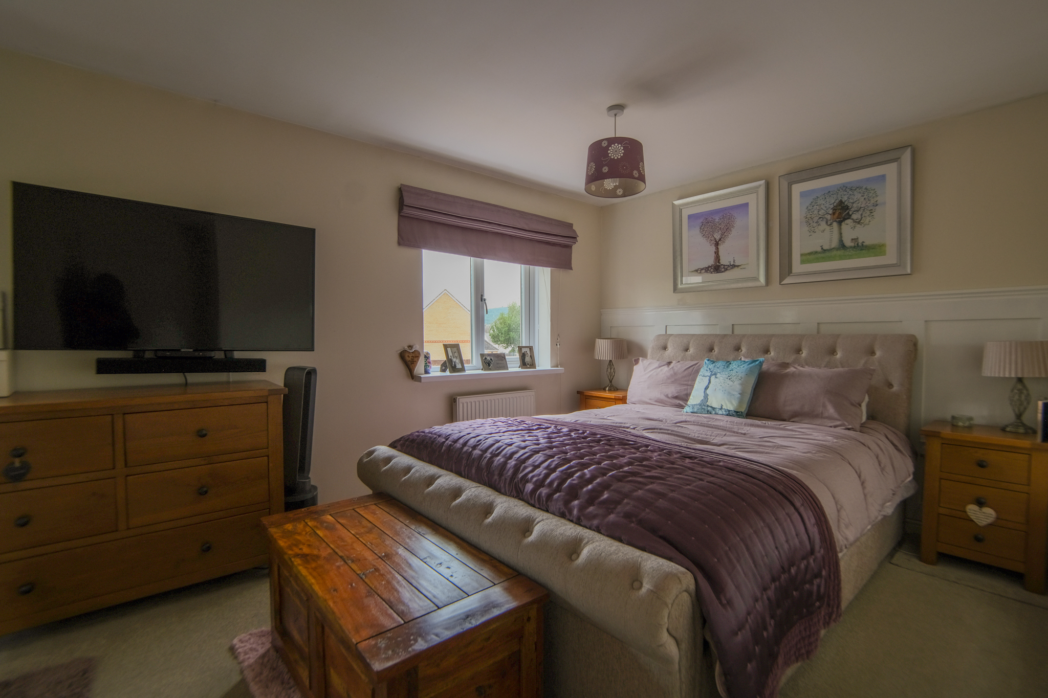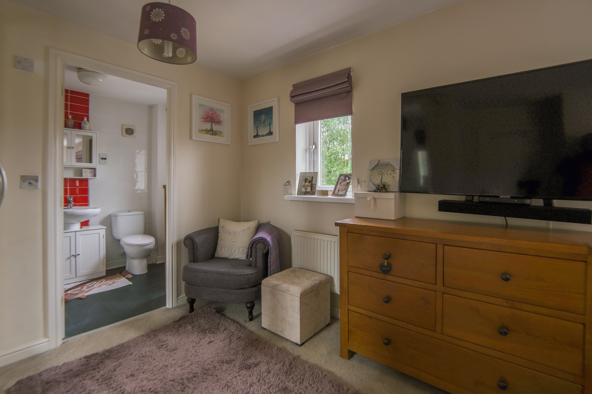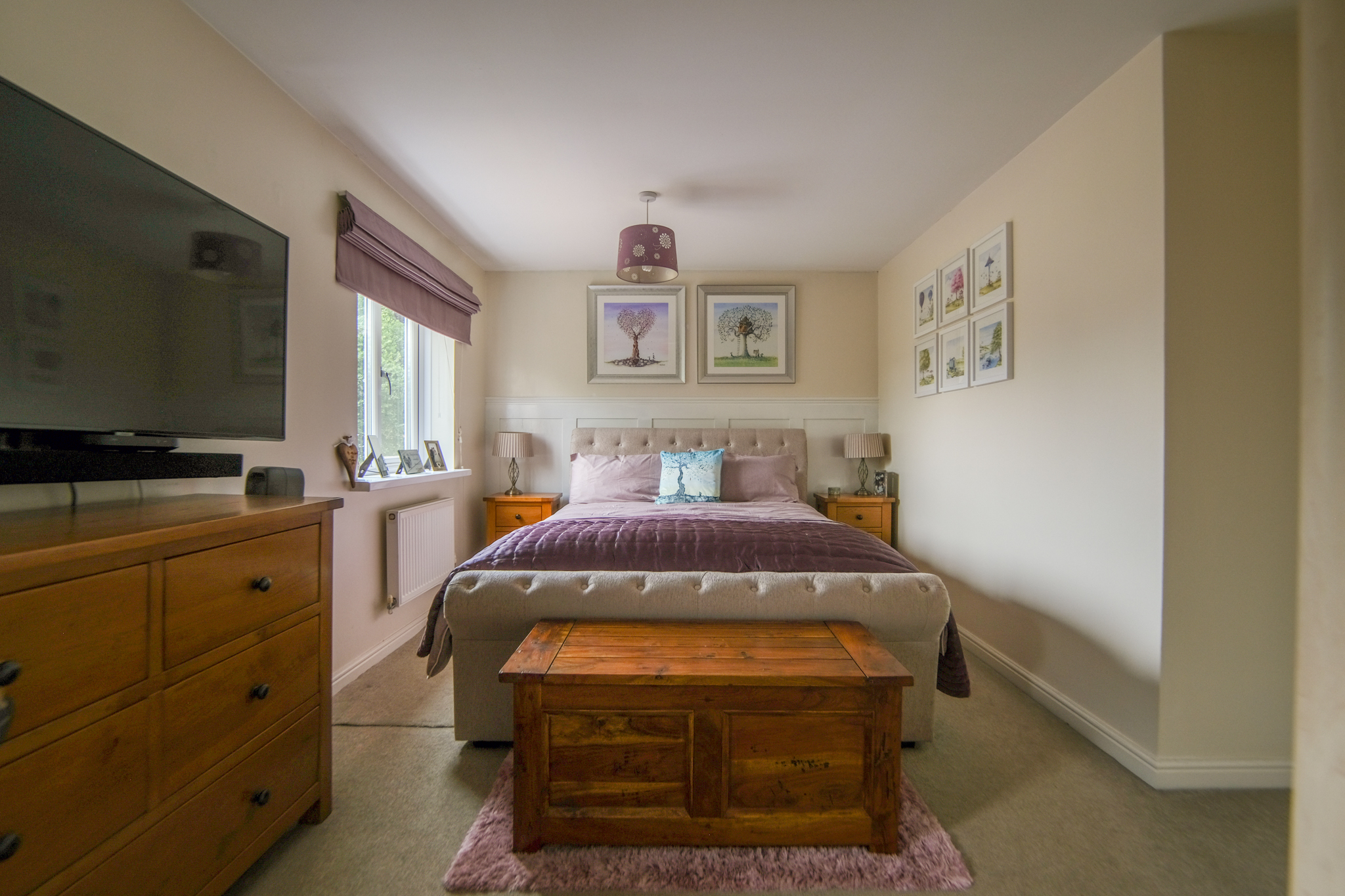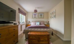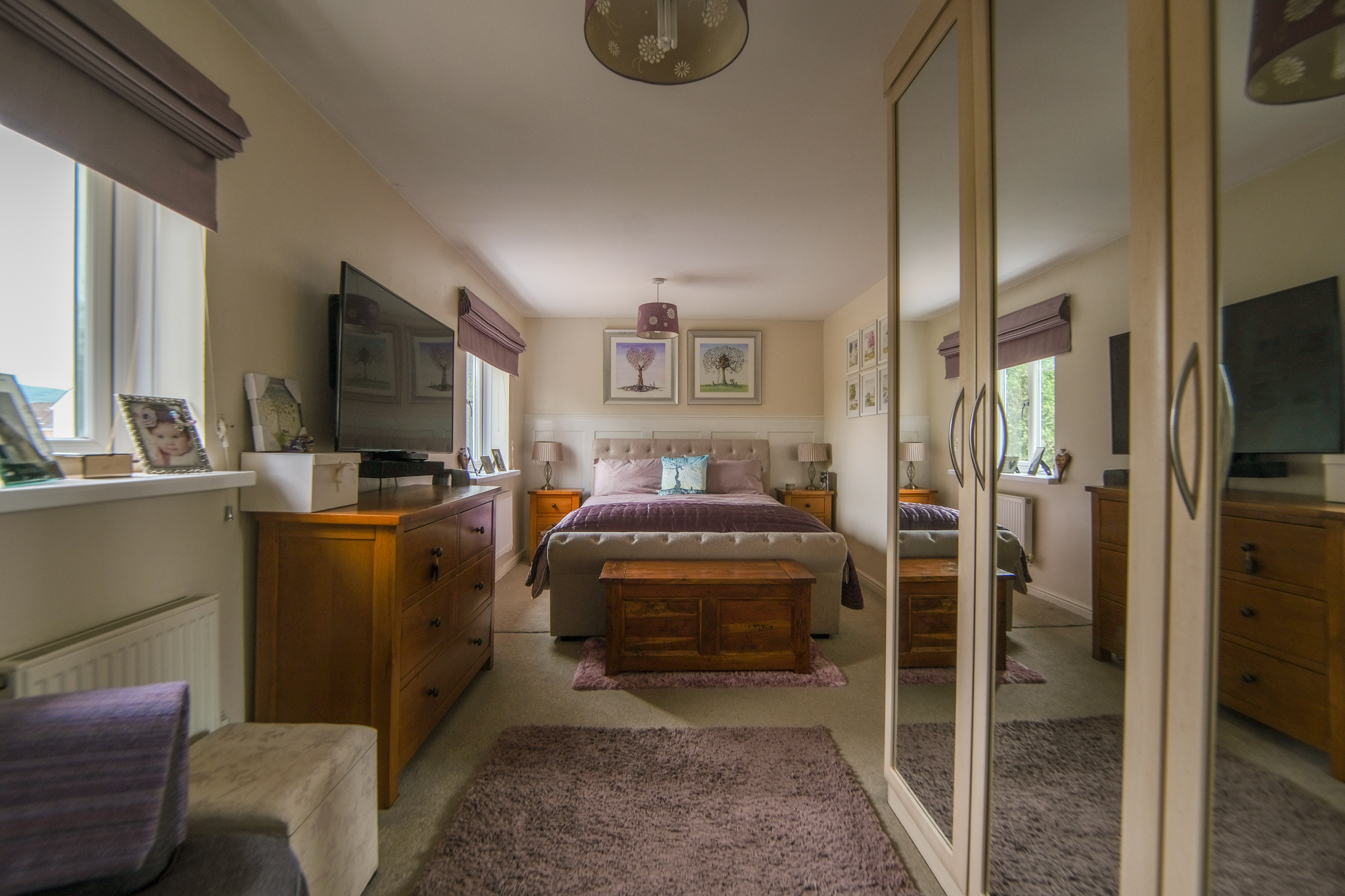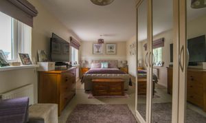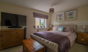 Two windows to front, two radiators, fitted carpet, fitted wardrobes and access to en-suite;