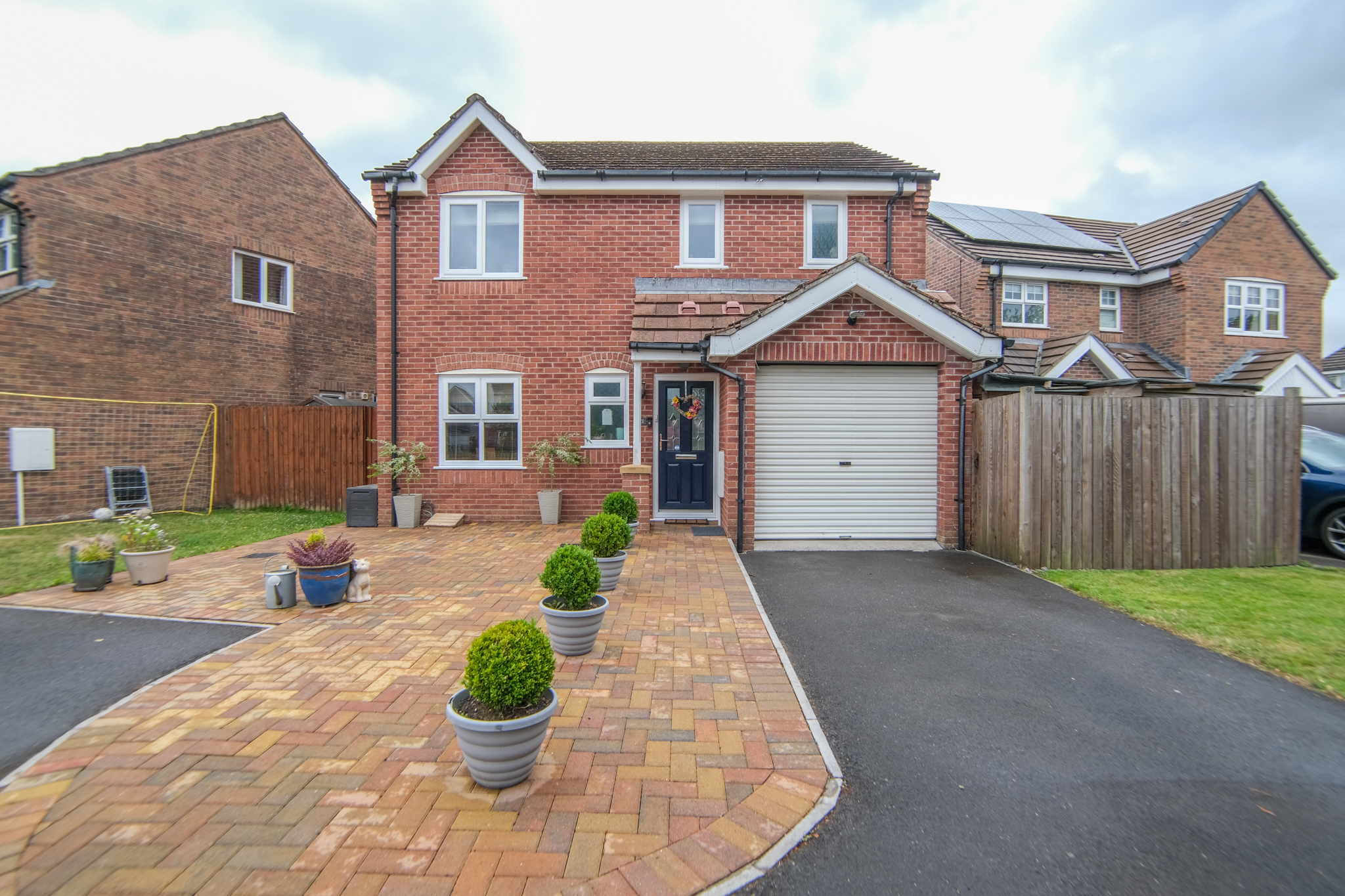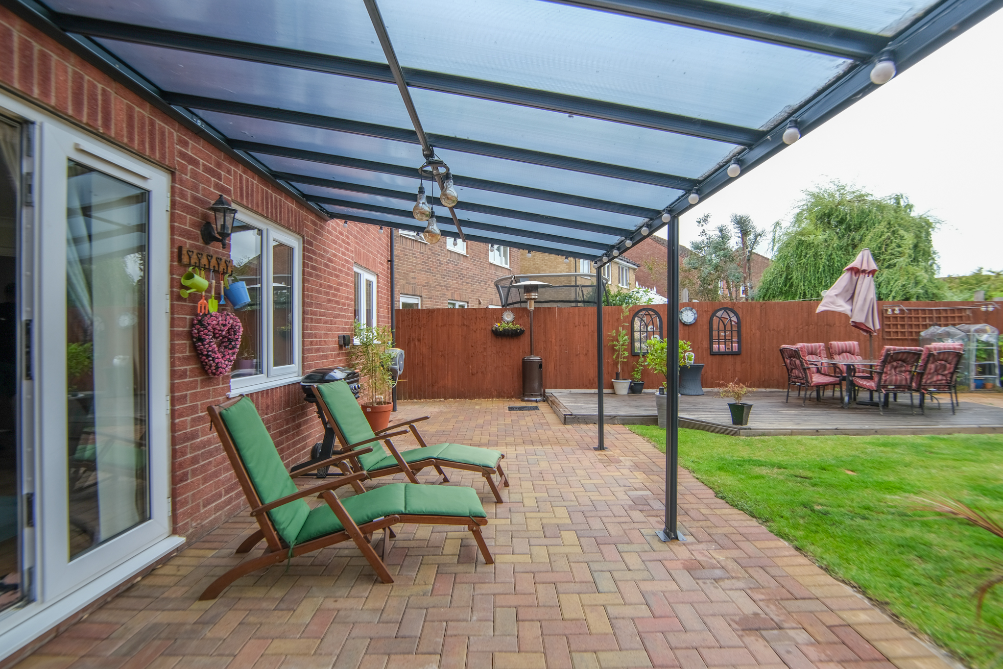 Driveway to front providing off-road parking and access to garage. To the rear is a beautiful enclosed garden with 2 patio seating areas, lawned area, aluminium canopy, wooden pergola, storage shed, side access gate and external power outlet.
