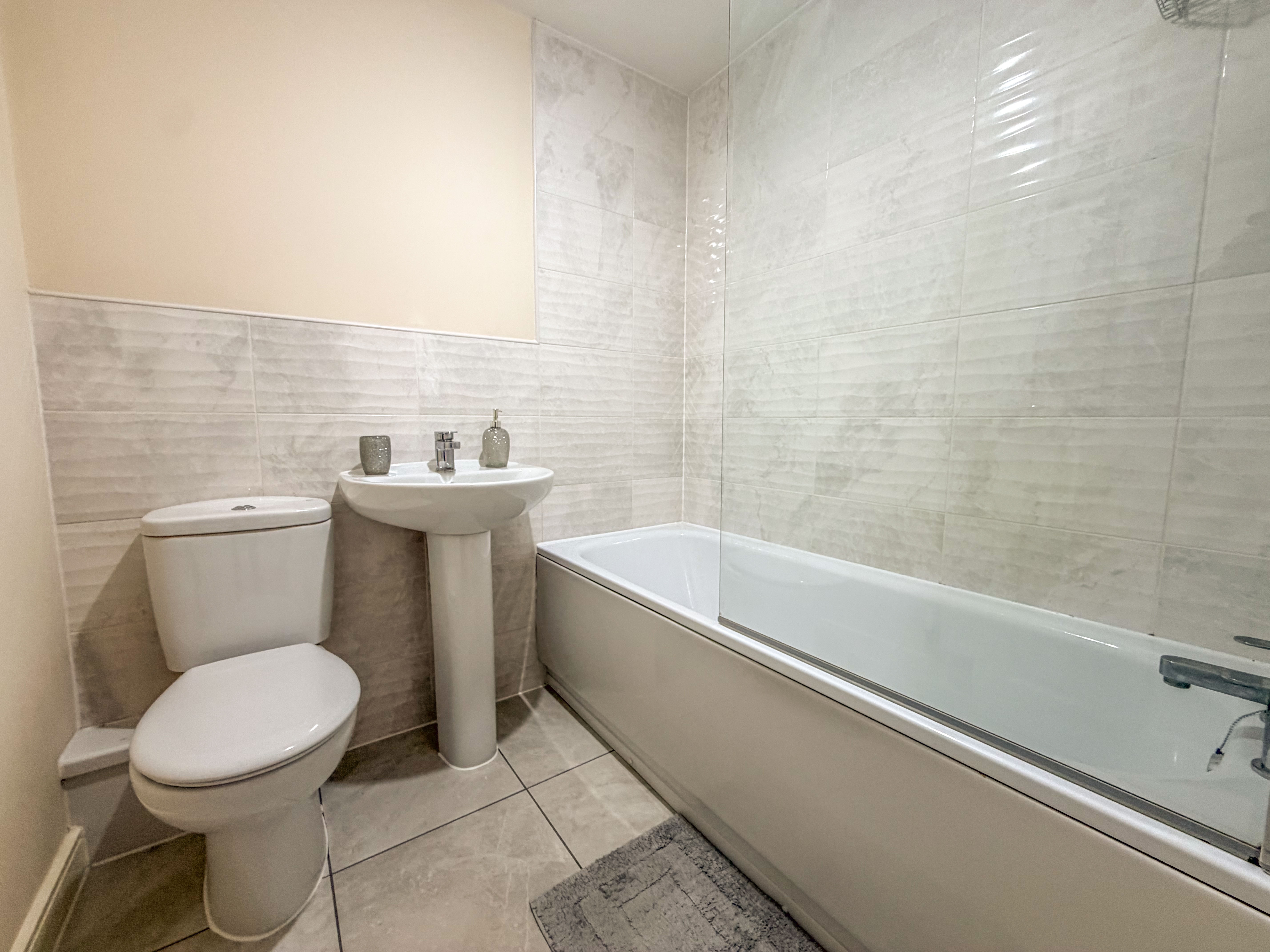 Upstairs, the main bedroom is complemented by a modern en-suite shower room, offering a private luxury retreat. Two further well proportioned bedrooms and a contemporary family bathroom complete the first floor, delivering comfort and flexibility for families.