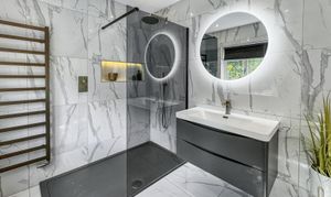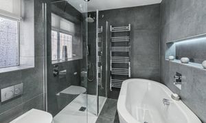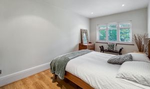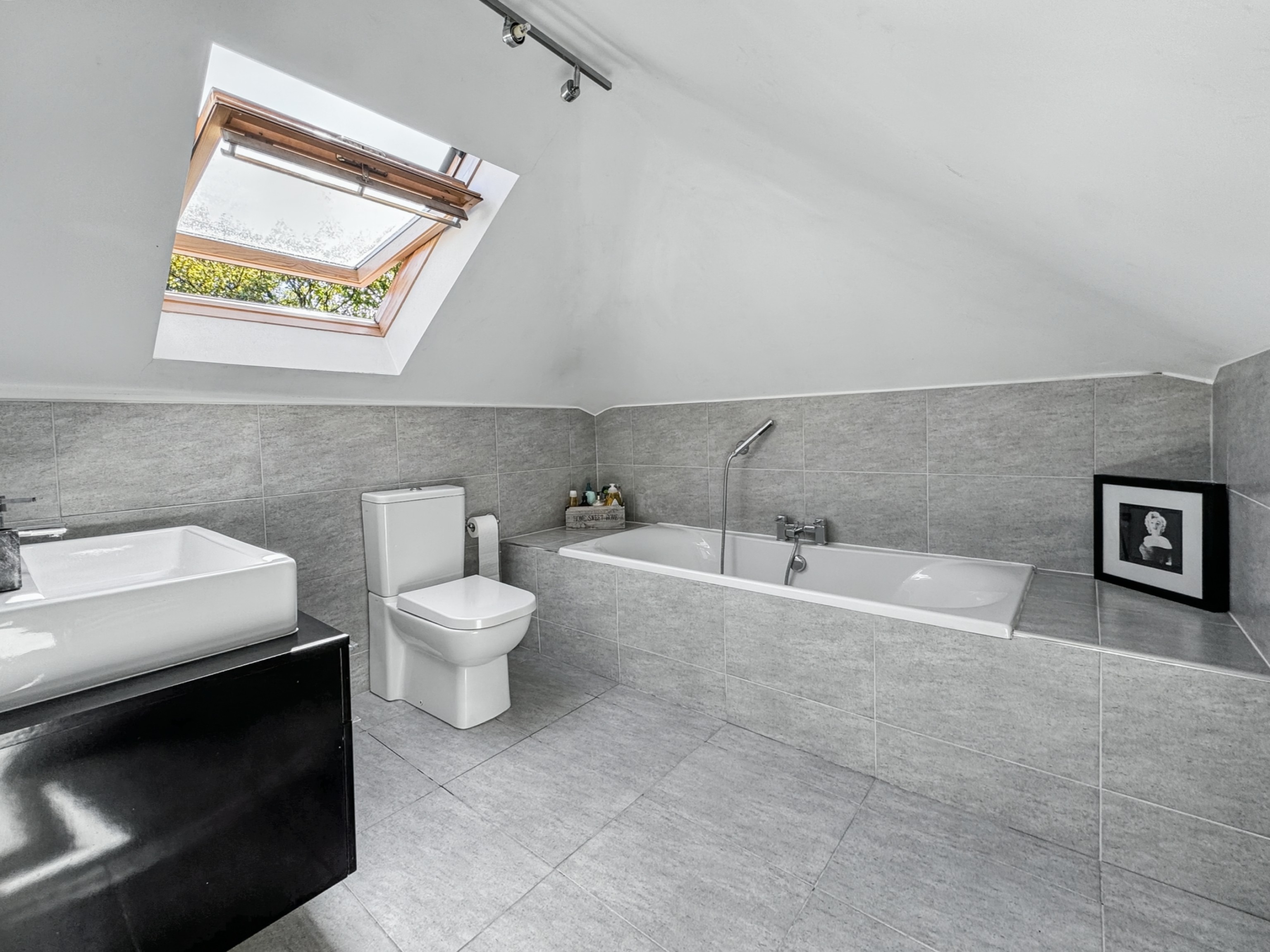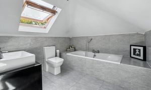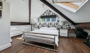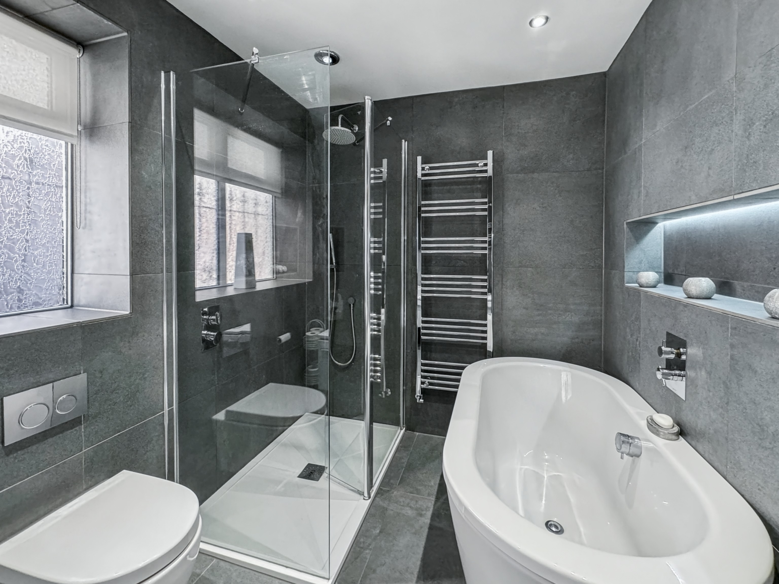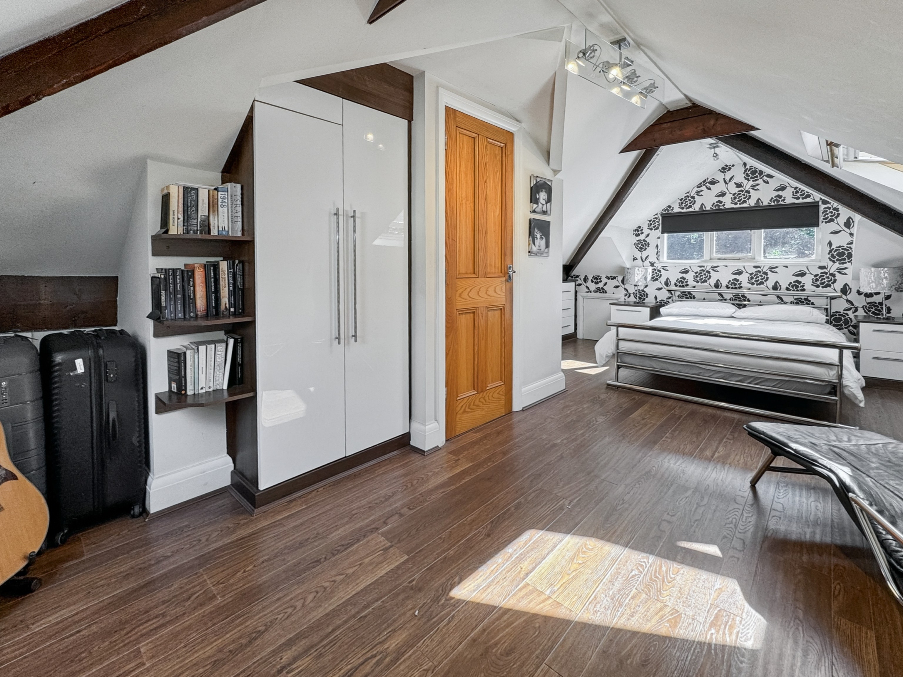On the first floor are five generously sized bedrooms, two of which feature en-suites, including the principal suite with its own walk-in wardrobe. The remaining bedrooms are served by a beautifully appointed family bathroom, complete with both a bath and separate shower. The top floor hosts a sixth bedroom with its own en-suite, providing excellent privacy for guests, older children, or even as a dedicated home office.