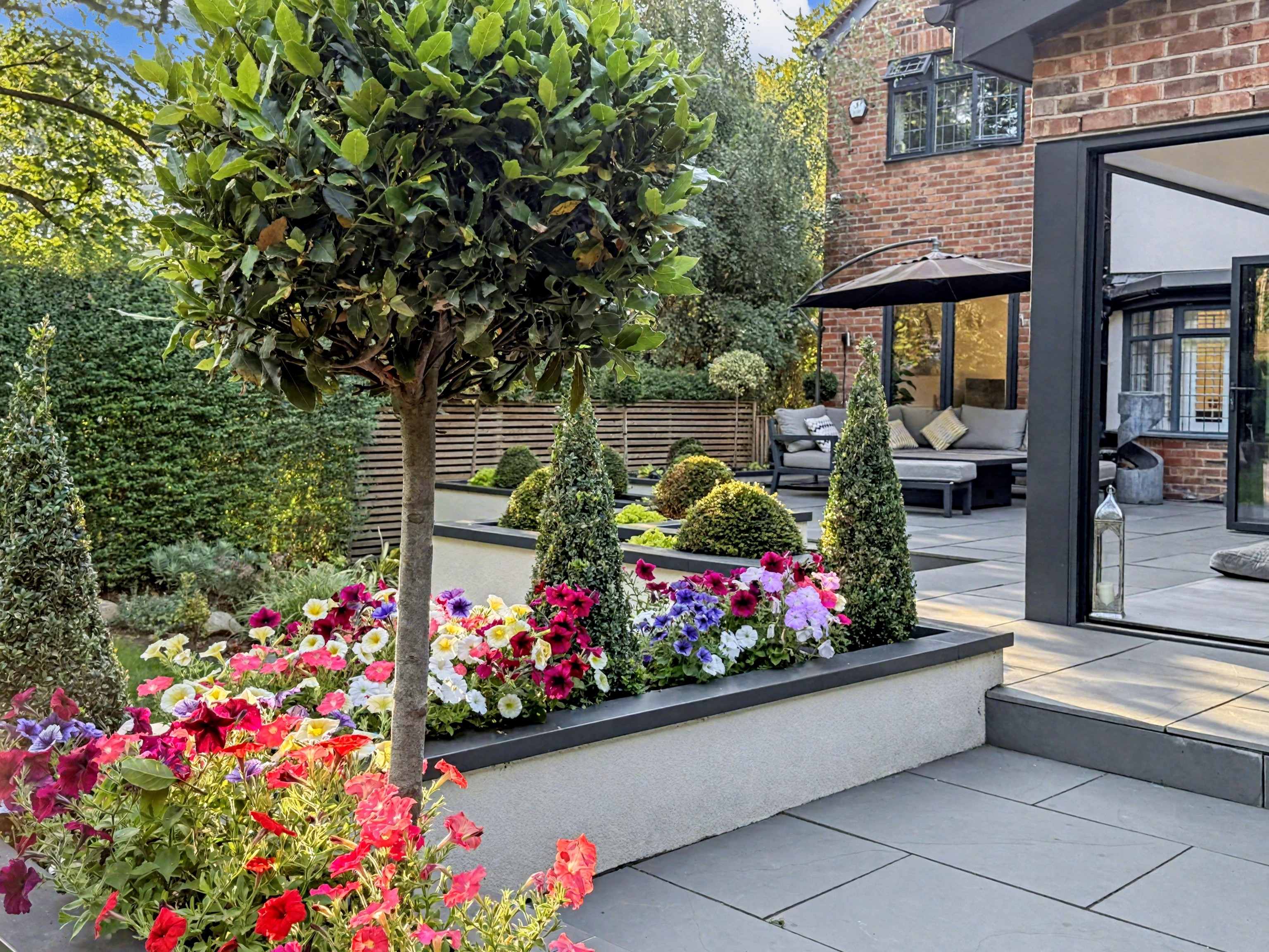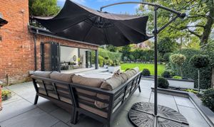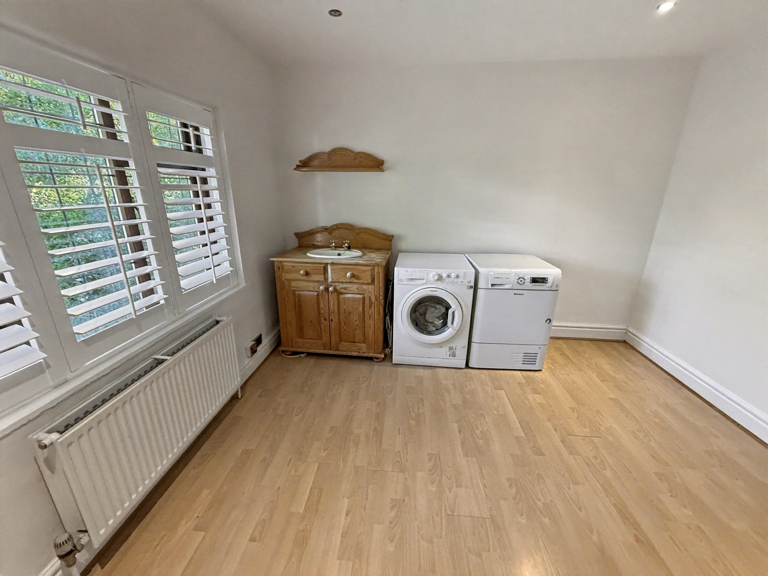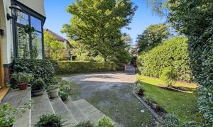 The rear garden is an entertainer’s paradise, with a generous patio perfect for al fresco dining and a large, private lawn ideal for summer gatherings. To the front, a substantial gated driveway offers secure parking for up to four vehicles, while a basement provides excellent additional storage.