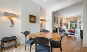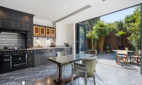 Having been under the same ownership for 20 years, the home has been well maintained and cared for. Offering excellent potential as a family home, the property combines charming period character with sleek contemporary design and high-quality finishes throughout. Accommodation includes four generous double bedrooms, two luxurious bathrooms, a classically elegant grand double reception, and a fully extended kitchen-diner with floor-to-ceiling bi-fold doors opening directly onto the leafy rear garden. With its east/west aspect, the house enjoys an abundance of natural light from sunrise to sunset, plus attractive views throughout.