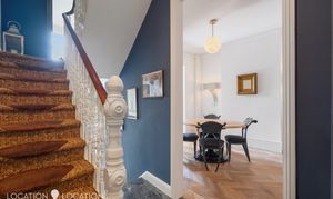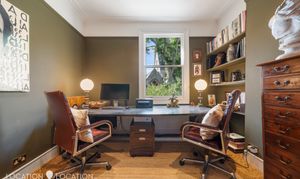At just under 2,400 sq. ft this elegant mid-terraced home enjoys one of Stoke Newington’s most sought-after locations - moments from award-winning Clissold Park, the vibrant independent shops, bars, and eateries of Church Street, and within the catchment area for outstanding local schools. The extremely private and serene landscaped rear garden is a mature, secluded sun trap, perfectly framed by trees with a picturesque view of St Mary’s Church (an important church designed by the internationally renowned and highly honoured George Gilbert Scott, the architect responsible for Kings Cross St Pancras and other highly important London buildings).