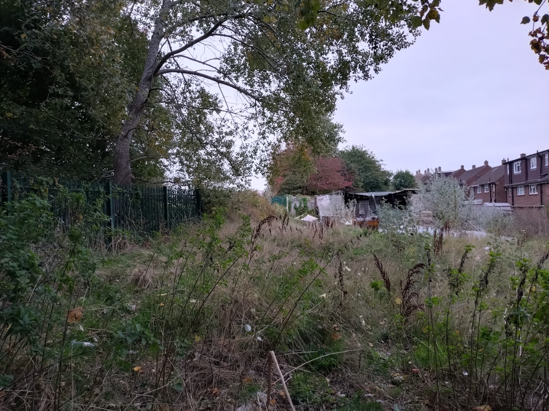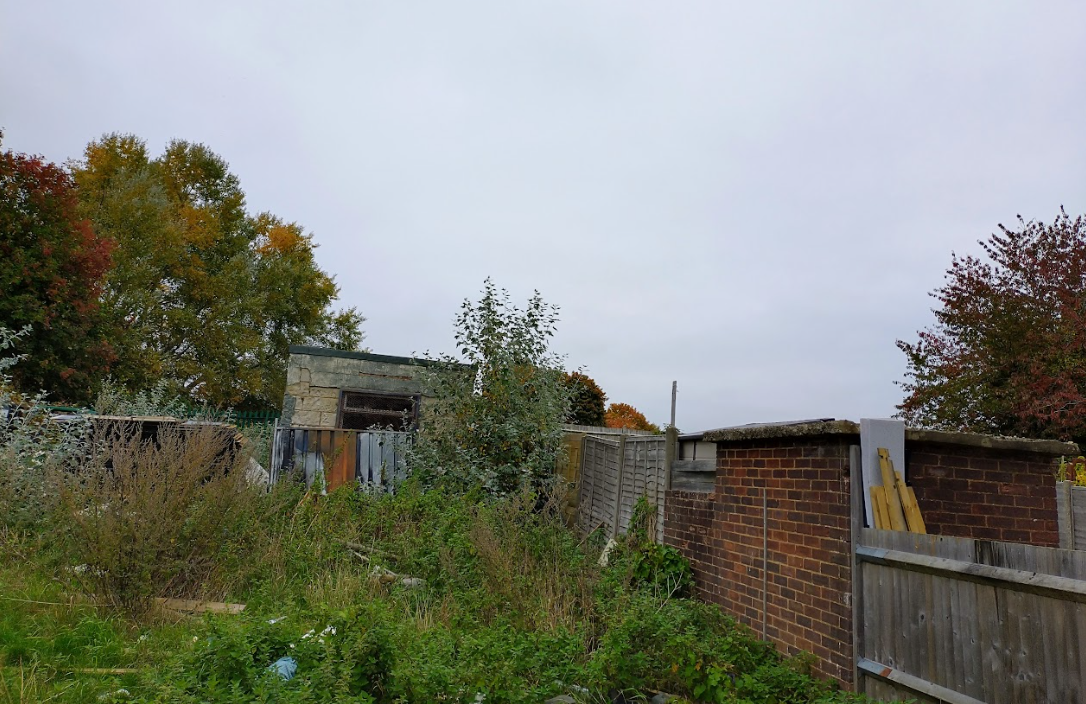 The site is currently overgrown with shrubs and bushes. The ex-Scout hall is in a dilapidated condition