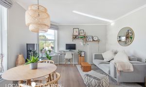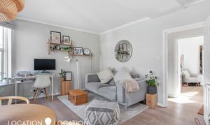 Boasting light and bright interiors throughout, this apartment boasts a generous master bedroom with built-in wardrobes and a cleverly designed study space. There is a neatly tiled family bathroom suite, plus an inter-connecting kitchen/living space, with wooden flooring, a stylish fitted kitchen, large windows and ample space for cooking and entertaining.