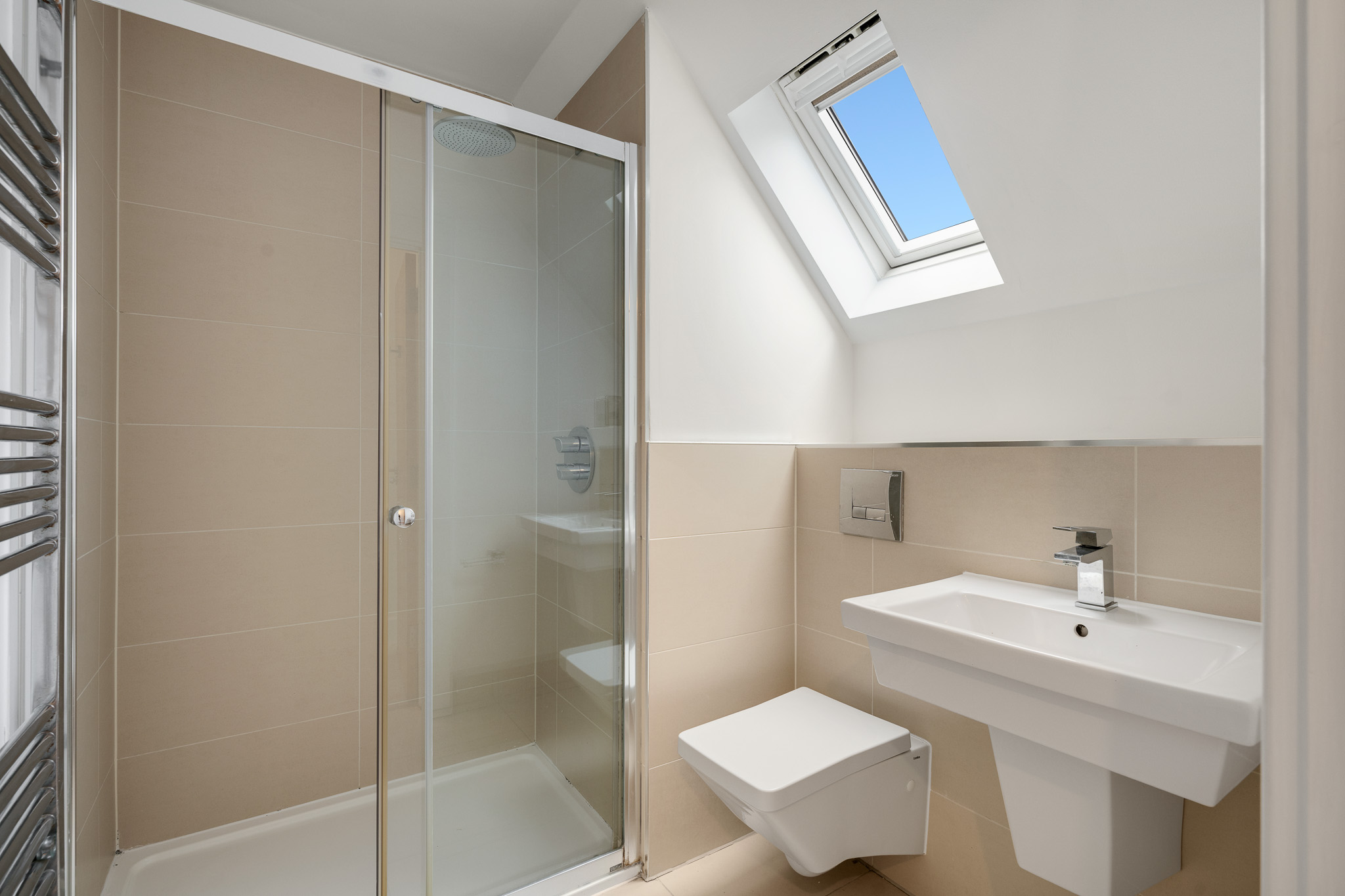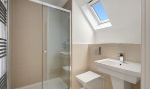 The entire top floor is dedicated to an impressive principal suite. This elegant retreat includes built in wardrobes, additional storage, a sleek en suite shower room and access to a private front facing balcony with far reaching views across the area.
