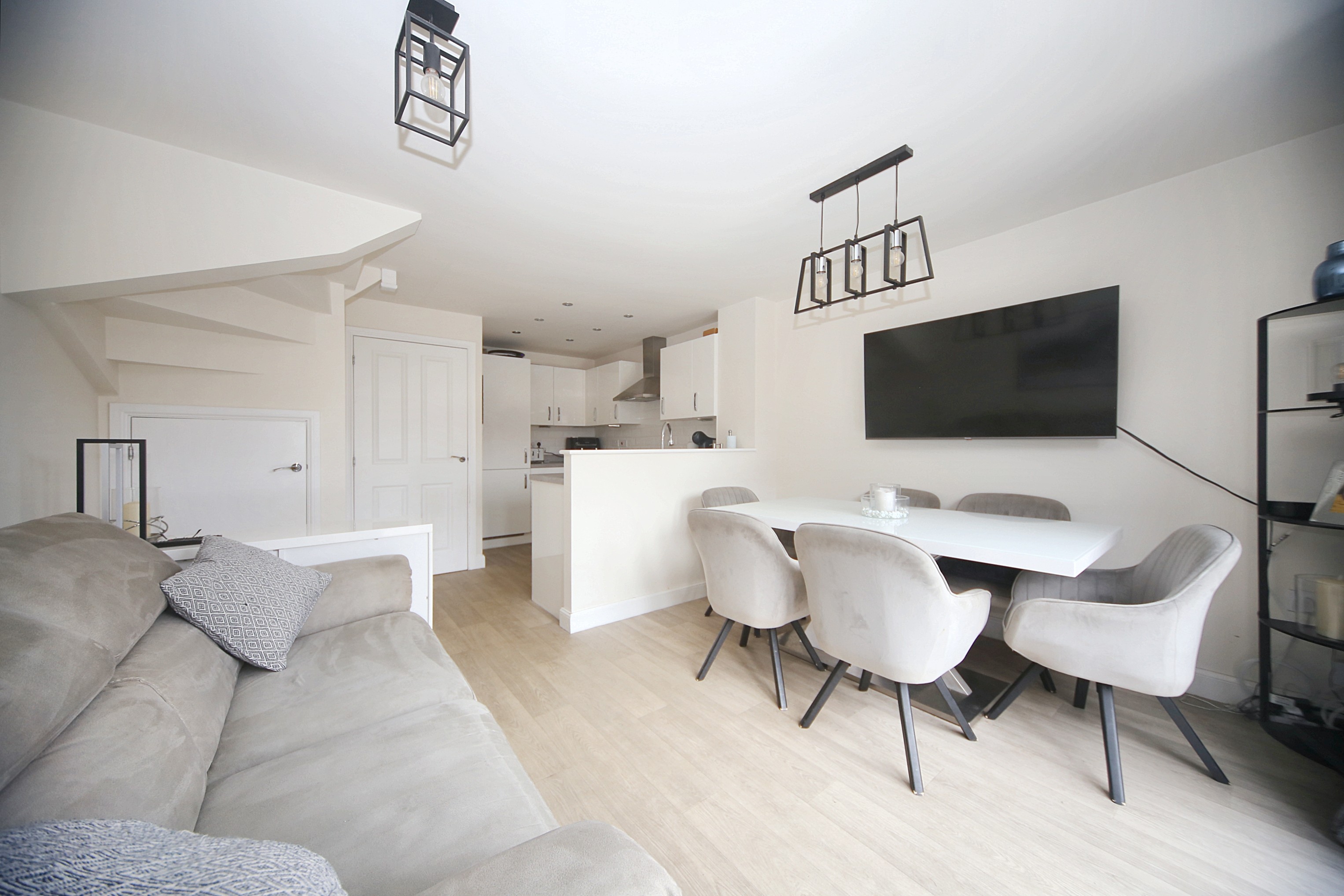 The first floor features a bright lounge and a spacious master bedroom complete with ensuite, while the second floor offers two further double bedrooms and a contemporary family bathroom. Only three years old, this beautifully presented home has a modern, neutral décor throughout and is situated on a lovely estate with a play area across the street.