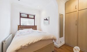 Double bedroom with laminate flooring, fitted wardrobes, ceiling spot lights, double glazed wooden framed window, panel radiator.